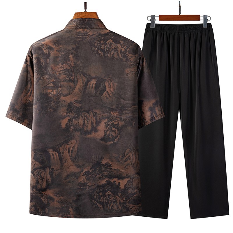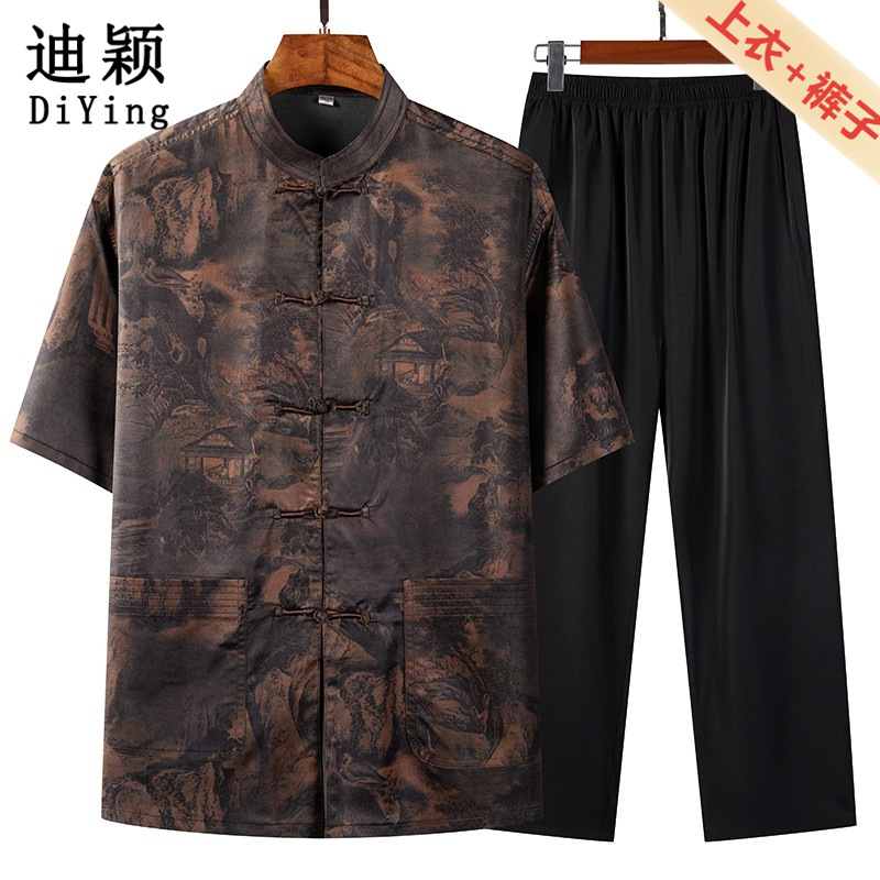Новая одежда для пап, повседневные мужские костюмы среднего и пожилого возраста, костюмы Zhongshan, костюмы Тан, модные двухсекционные костюмы с принтом, большие размеры