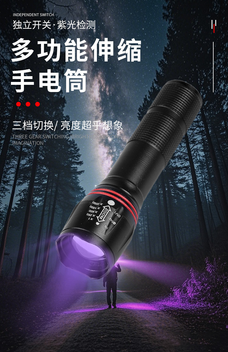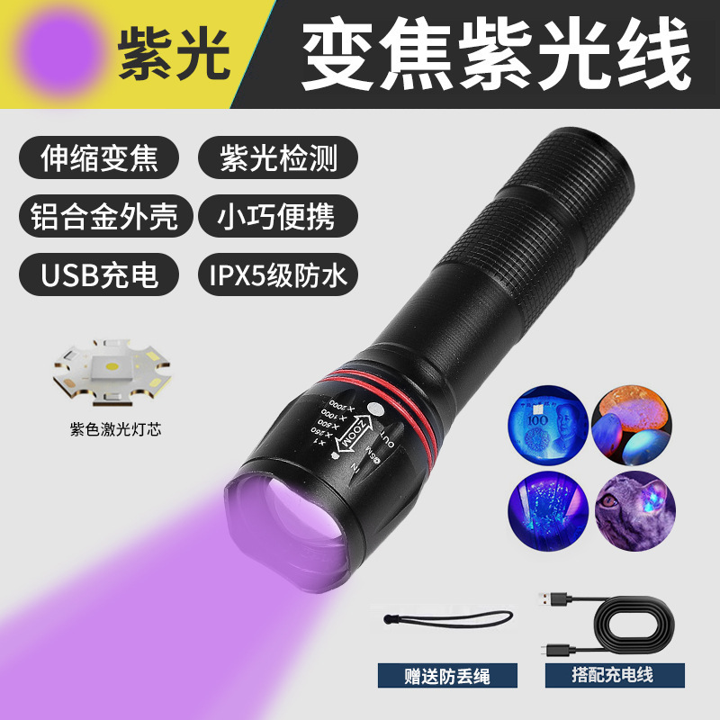 X05 фиолетовый фонарик с зумом; X05 фонарик с белым светом и зумом; X02 красный круг фиолетовый свет зум фонарик