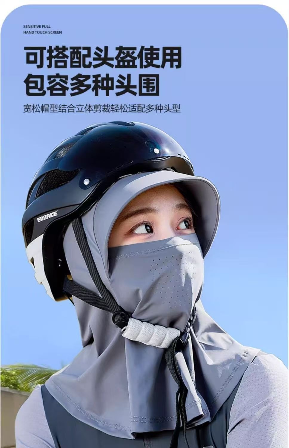 Защитная маска от солнца, полное лицо, капюшон с полыми полями, дышащая защита шеи с отверстиями, встроенная маска из ледяного шелка, летняя уличная защита от ультрафиолета, велосипедная защитная маска с капюшоном