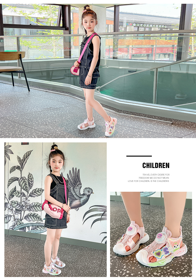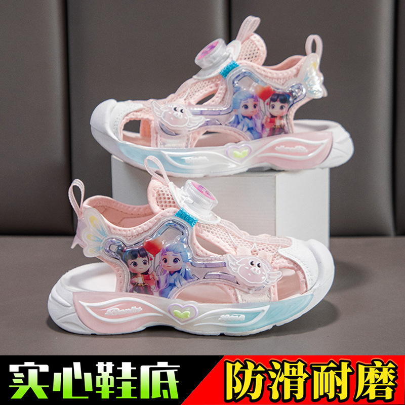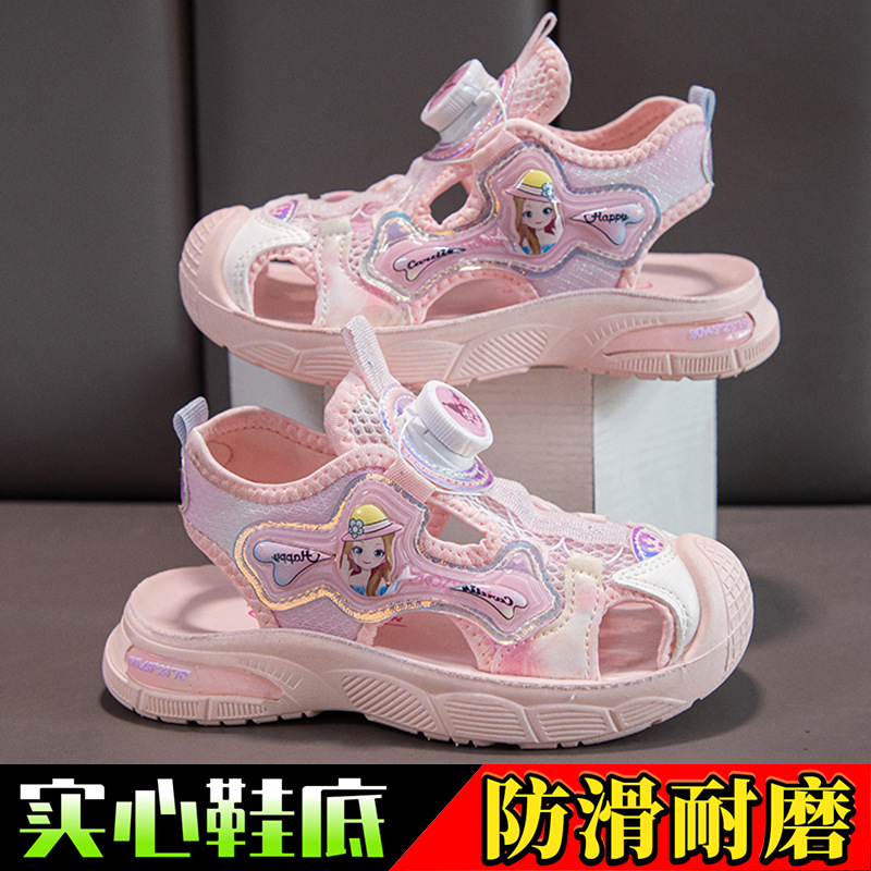Детские сандалии Baotou, пляжная обувь для девочек, новые летние туфли принцессы для девочек, нескользящие сандалии на мягкой подошве для маленьких девочек