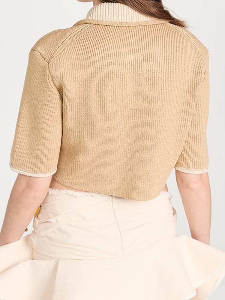 Вязаный свитер с узором, производство свитеров на фабрике Dalang Woolen, обработка на заказ, женский короткий модный элегантный свитер с лацканами и короткими рукавами