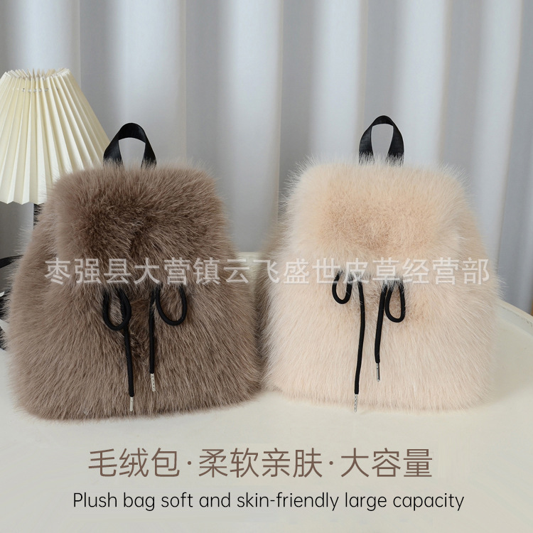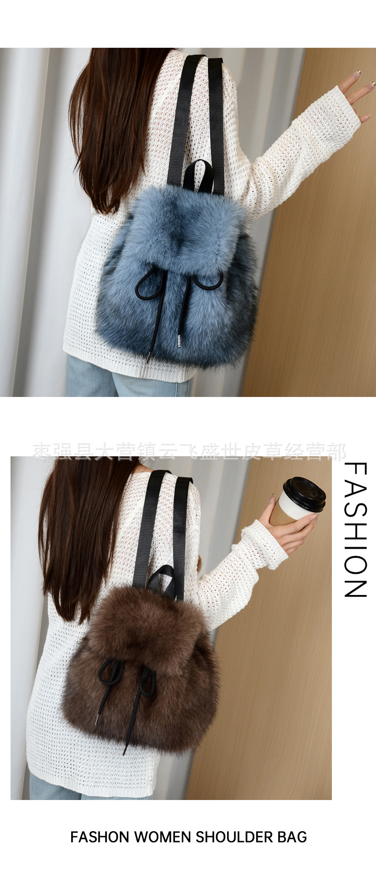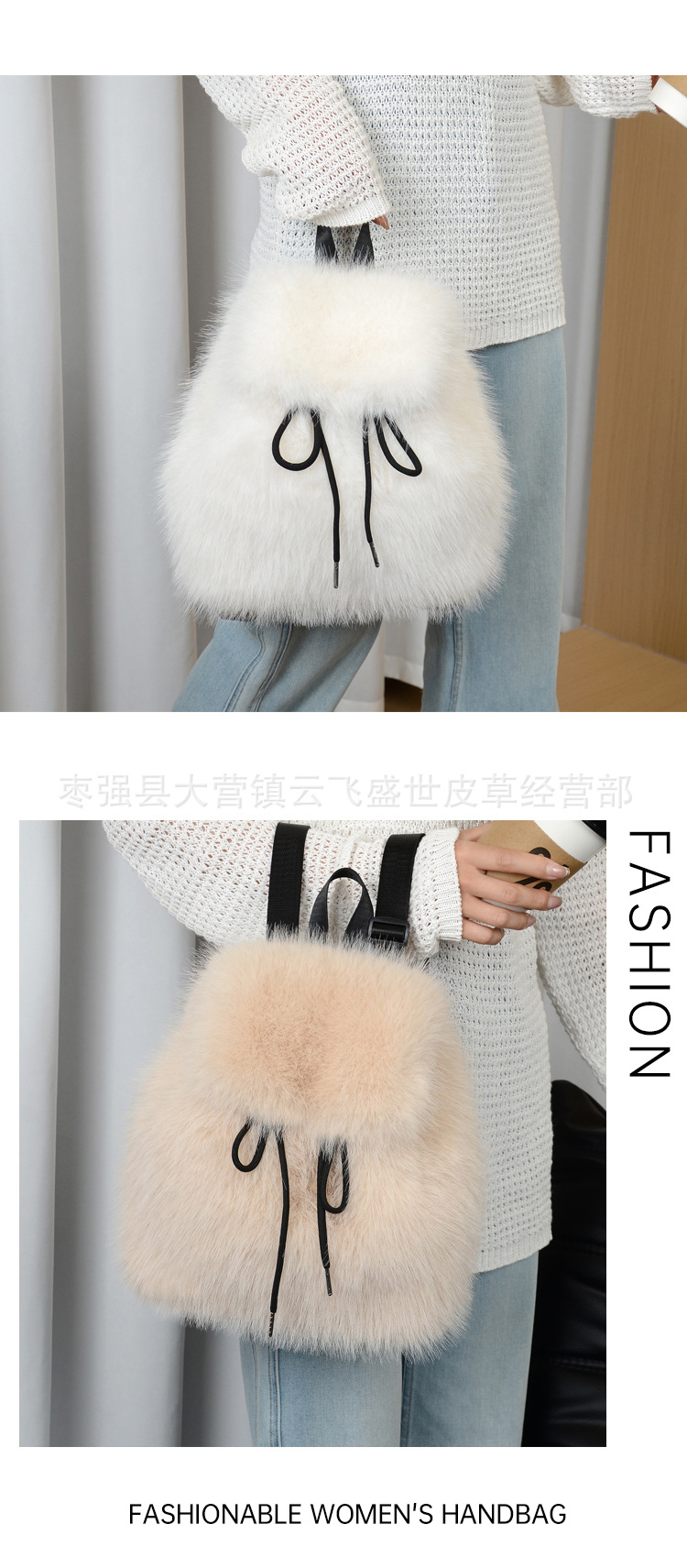 2025 новая имитация лисьего волоса сумки на плечо студентка колледжа повседневная шнурка и откидная пряжка магнитная пряжка большая емкость сумки для женщин