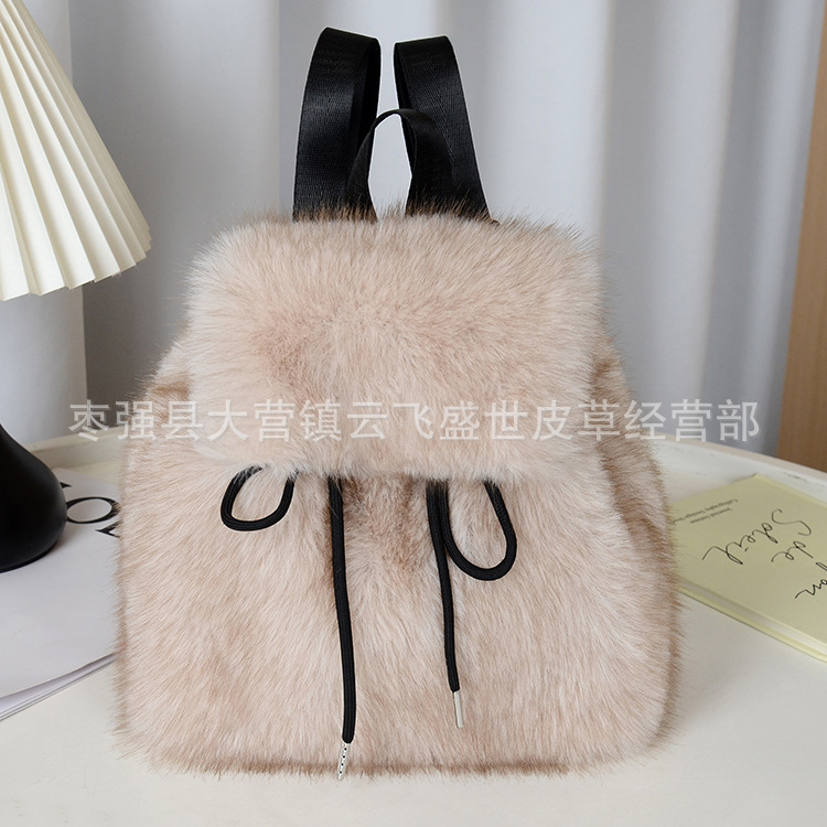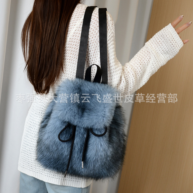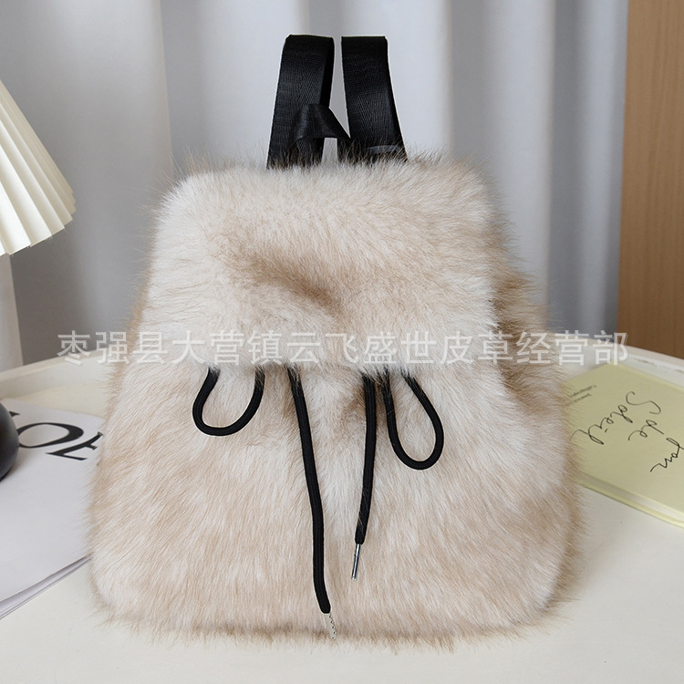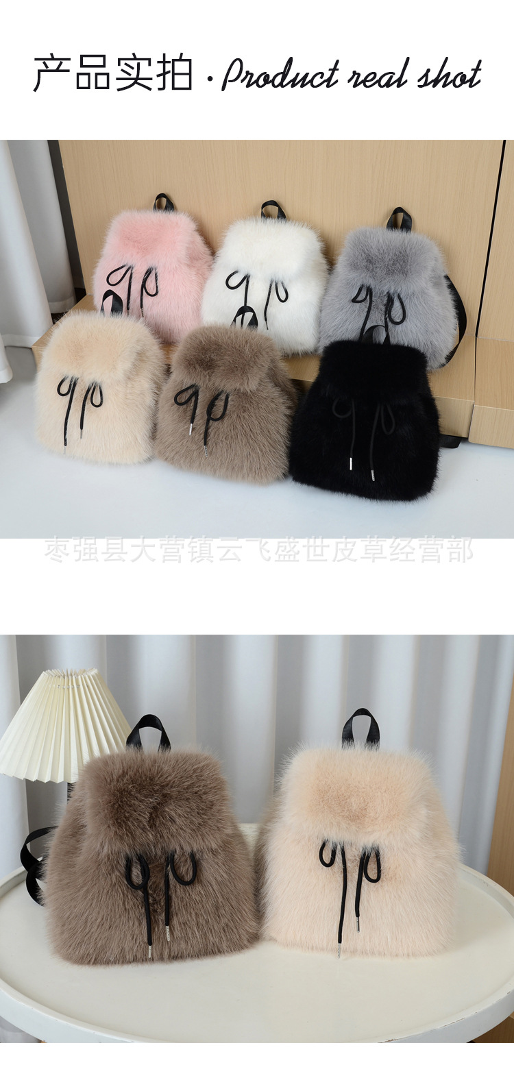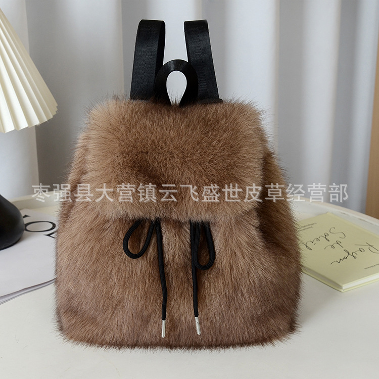 2025 новая имитация лисьего волоса сумки на плечо студентка колледжа повседневная шнурка и откидная пряжка магнитная пряжка большая емкость сумки для женщин