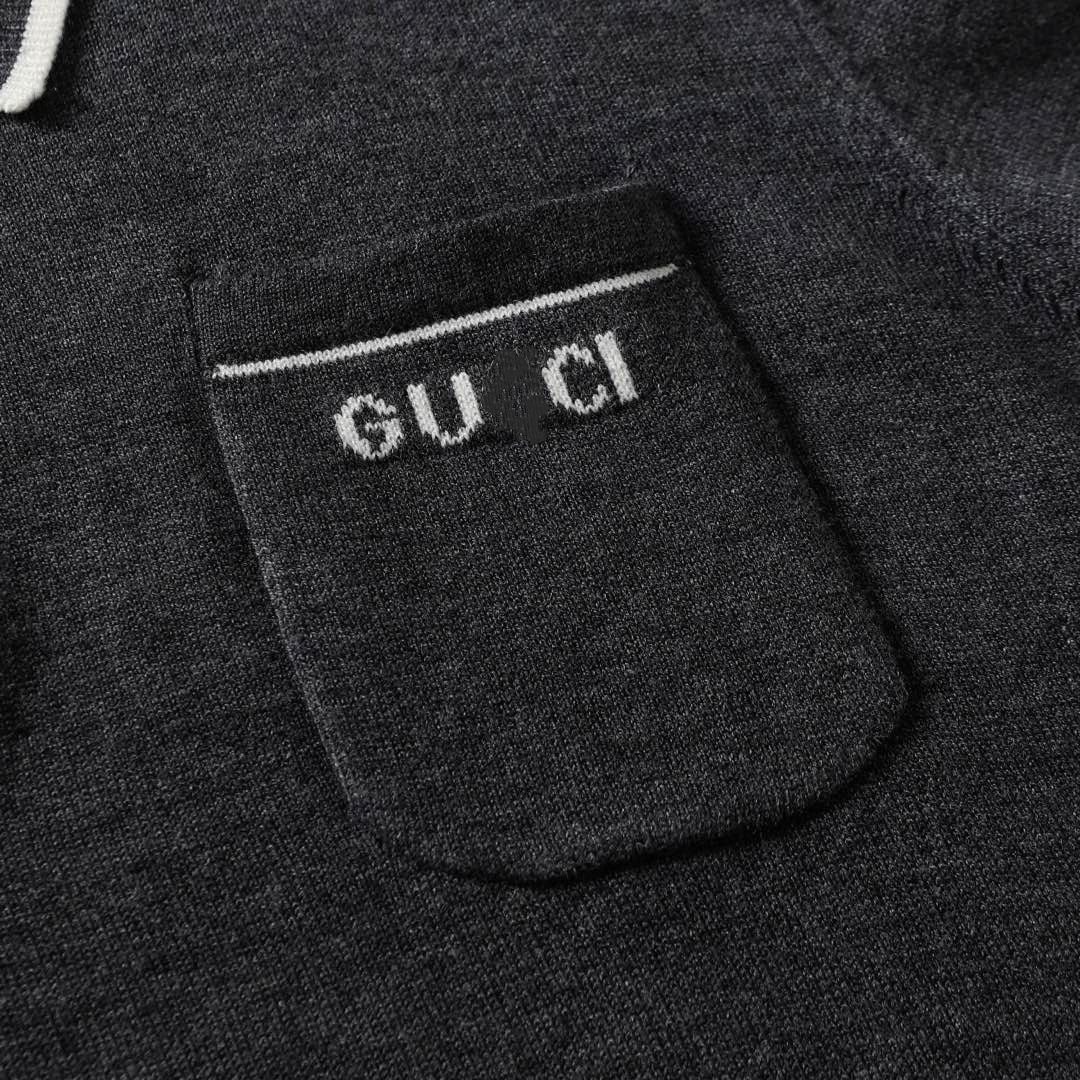 Правильная версия ранней весны новый GU дома алфавит карман свитер с отворотом свитер поло рубашка маленький жаккардовый свитер с короткими рукавами для мужчин и женщин