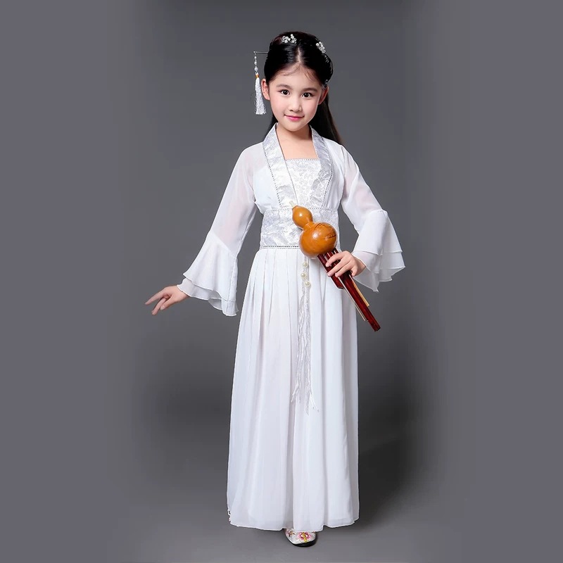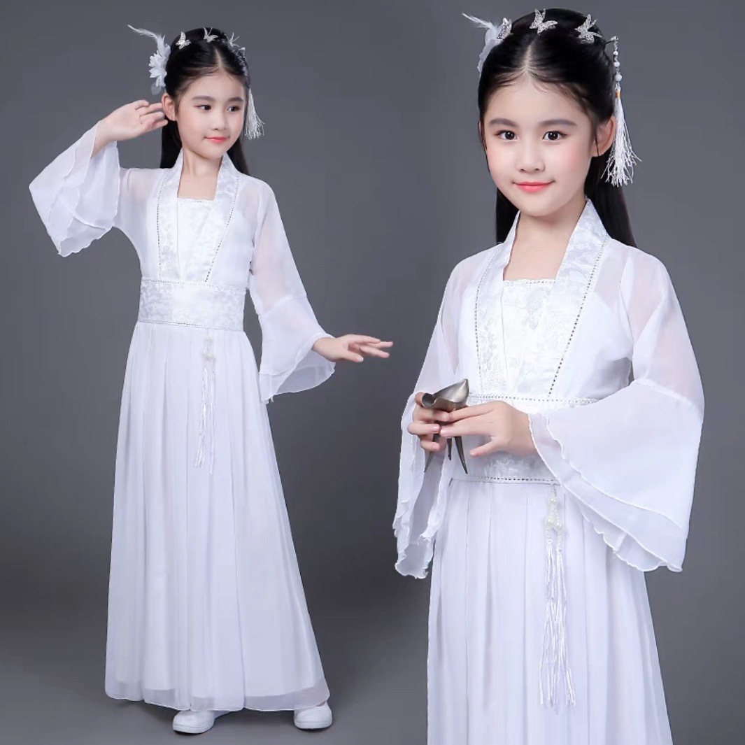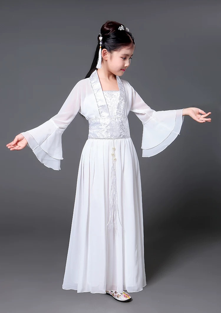 Традиционная китайская одежда для девочек, детский костюм Тан в древнем стиле, древний костюм в национальном стиле, одежда супер феи Бай Нувзи, ищущая руководство, наряд для классического танцевального выступления.
