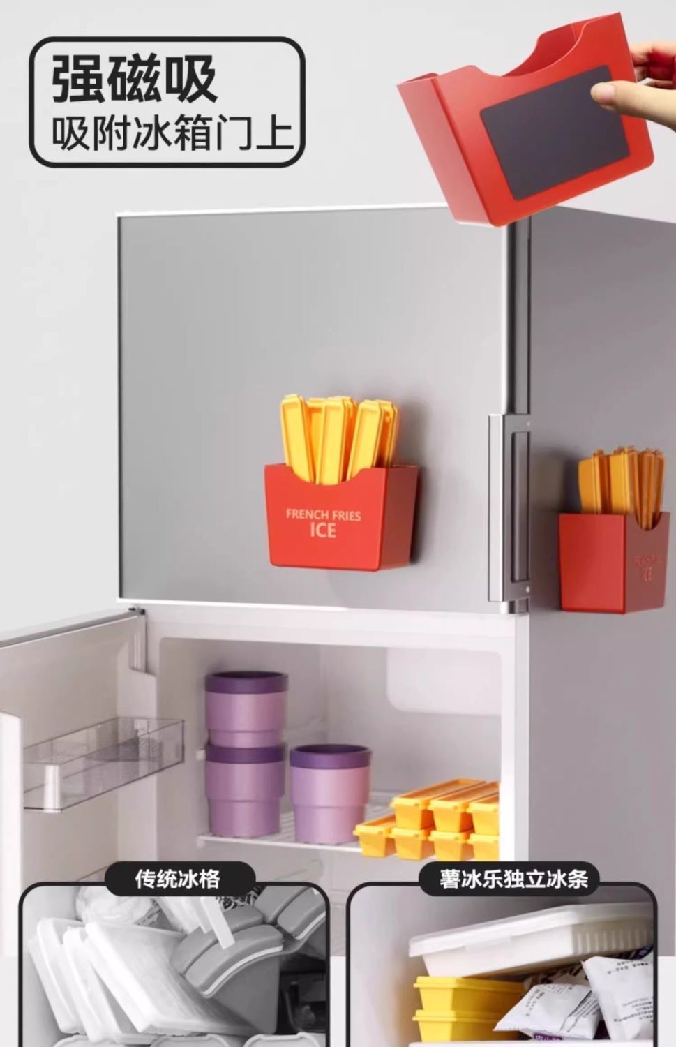 Форма для картофеля фри, длинная полоска, форма для лотка для льда, креативная магнитная наклейка на холодильник, ящик для хранения, домашний ледяной артефакт, домашний