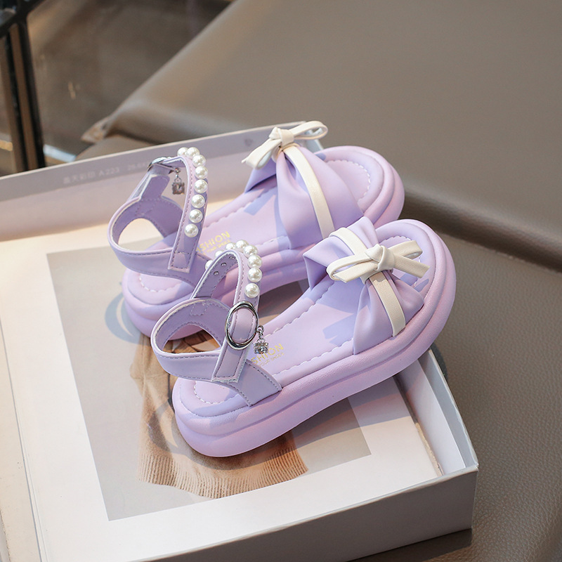 Детские летние босоножки для девочек, стиль принцессы, 2025 года, мягкая подошва, популярный дизайн с бантиком