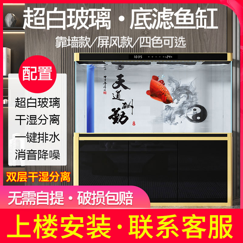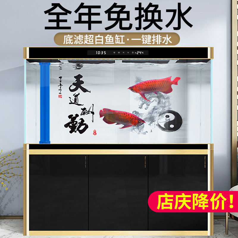 Аквариум типа аквариума без замены воды гостиная дома фэн-шуй удача супер белый фильтр под стеклом