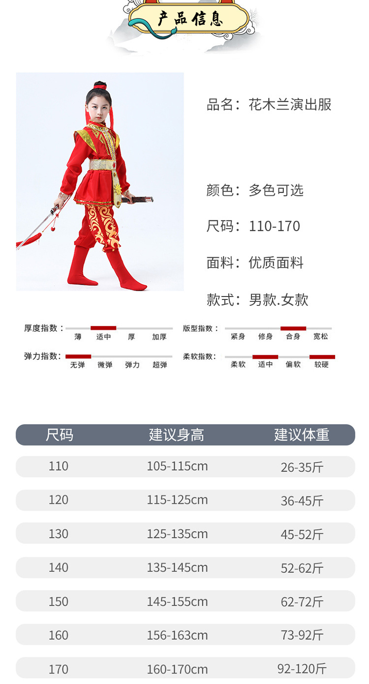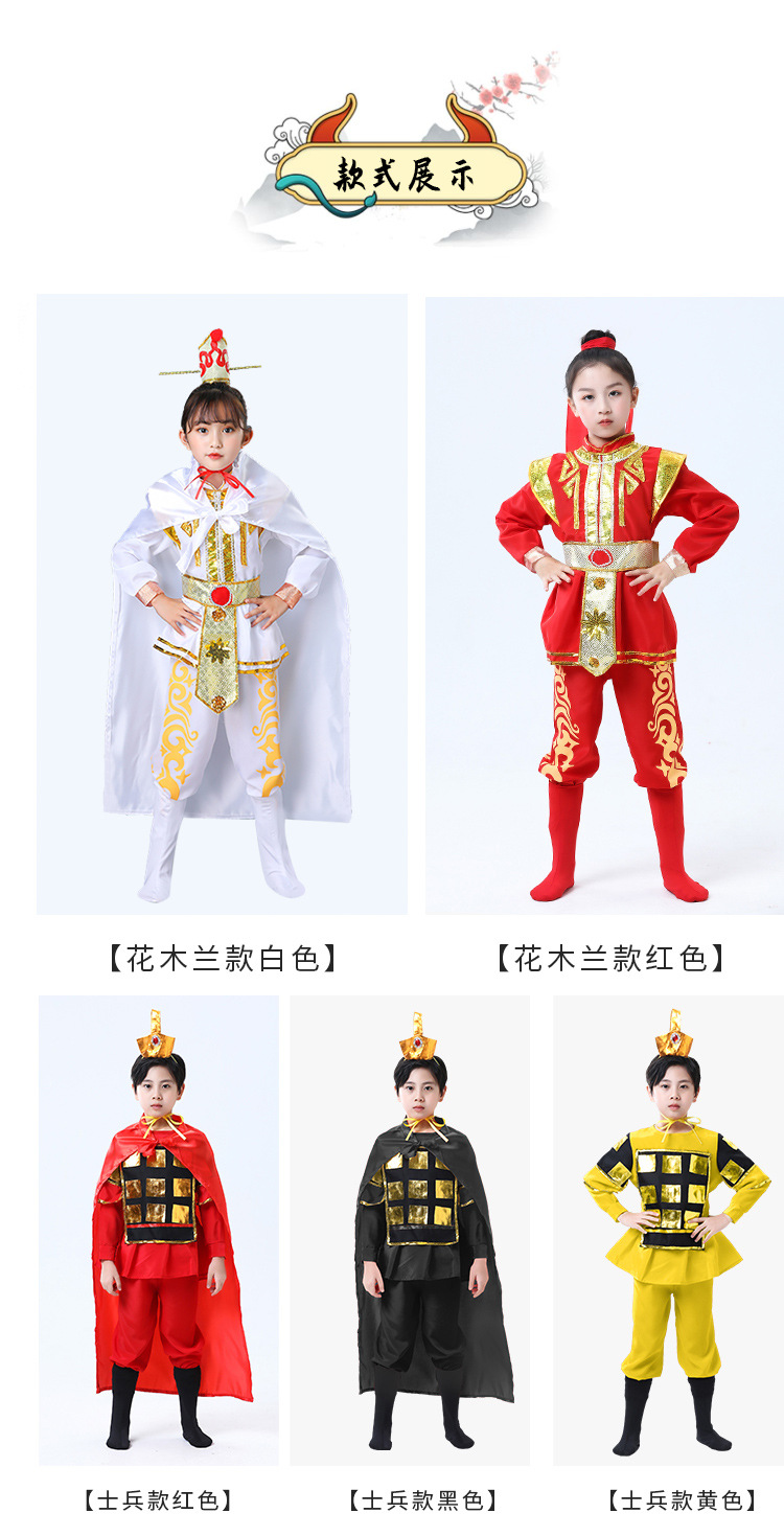 Костюм Мулан, детский танцевальный костюм, оперный костюм Мулан, детский костюм древнего солдата, генерал, доспехи.