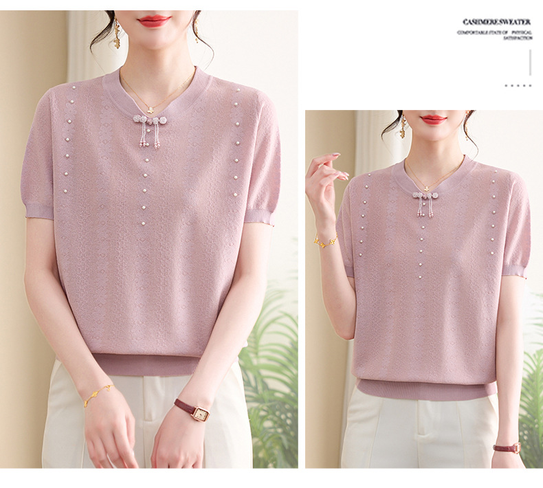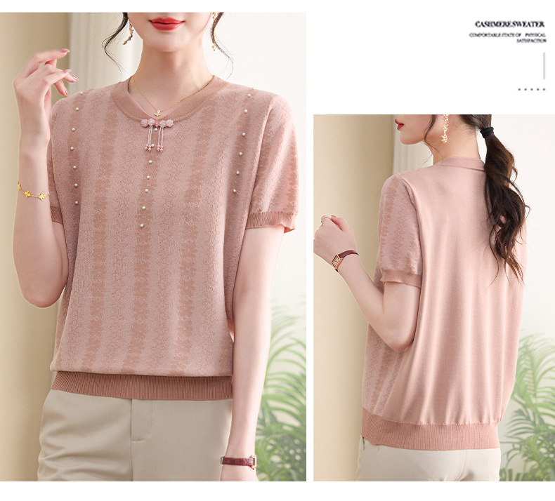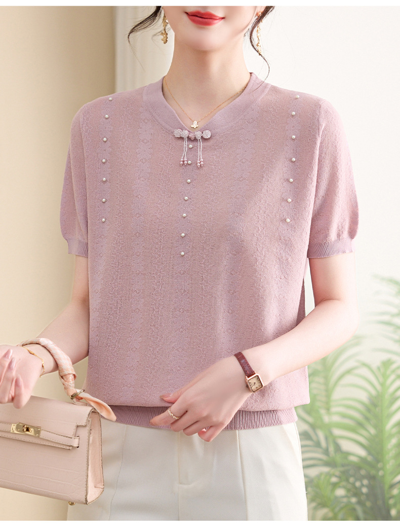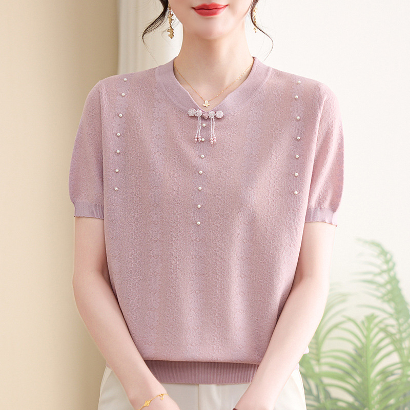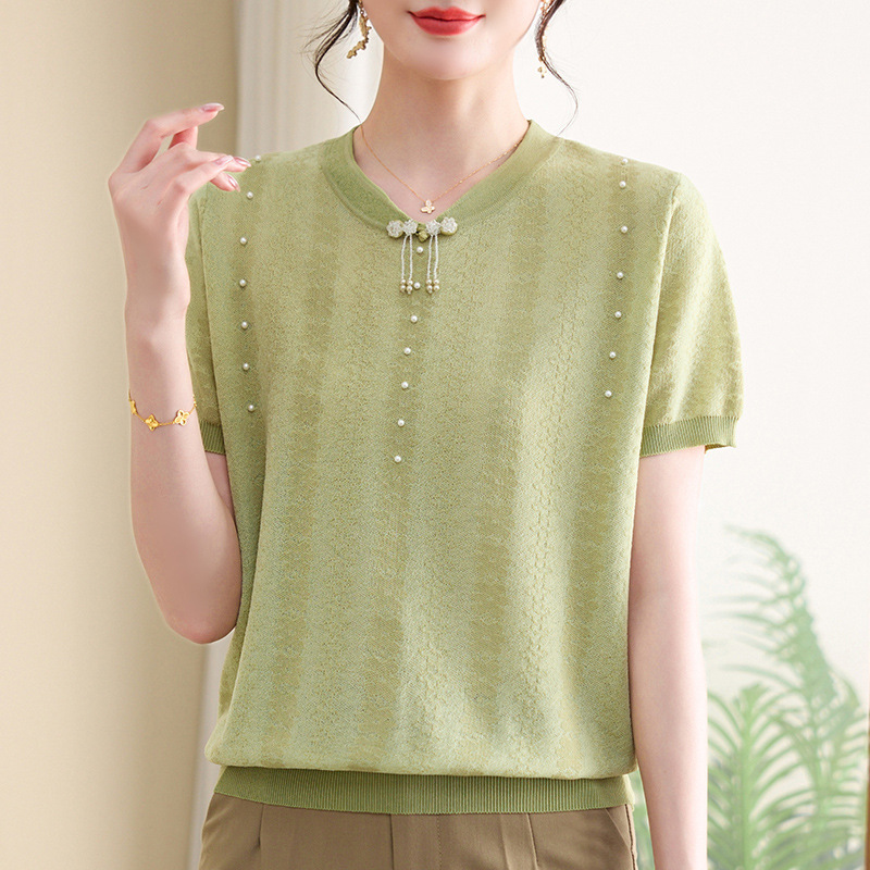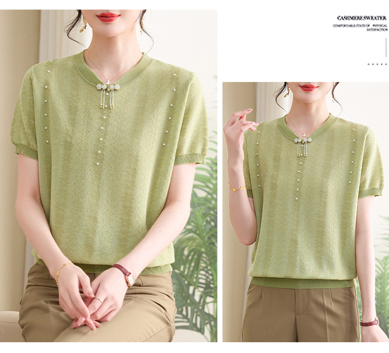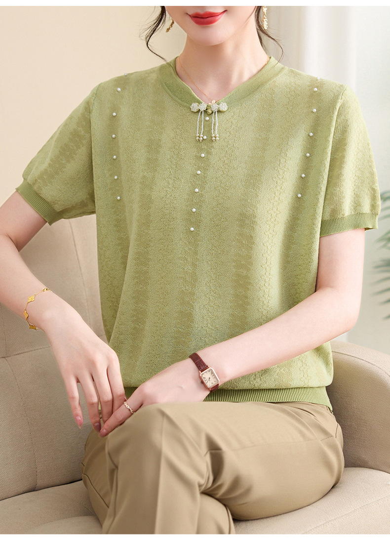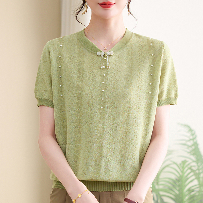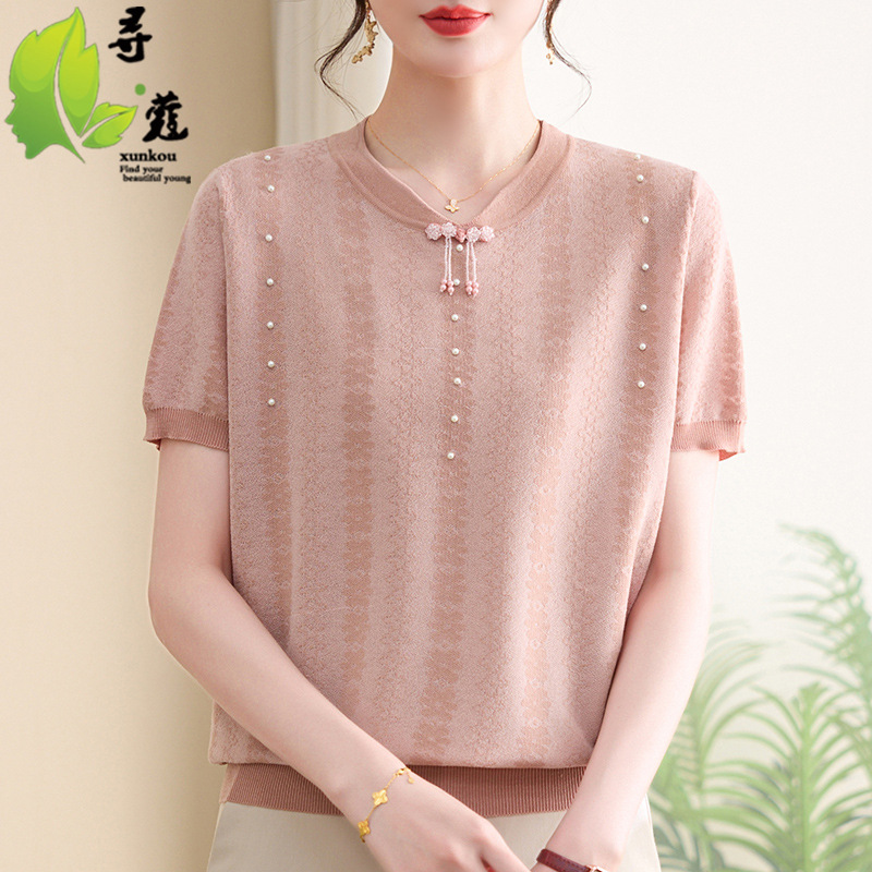2025 женский средний и пожилой летний топ модная мама с короткими рукавами маленькая рубашка