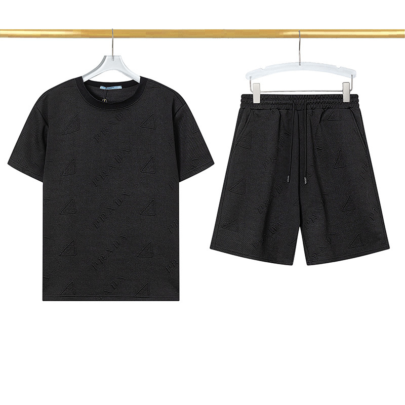 Высокое качество с короткими рукавами костюм с круглым вырезом классический жаккардовый набор букв полный печатный хлопковый набор для мужчин и женщин