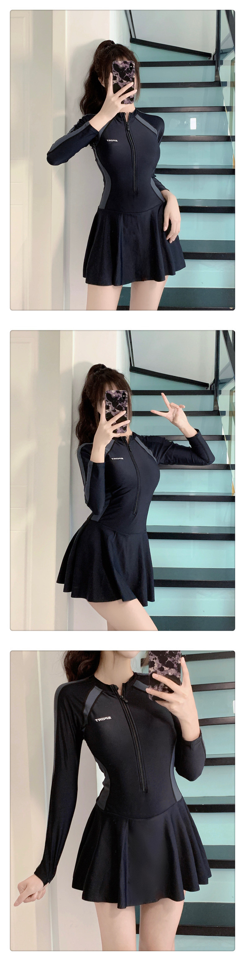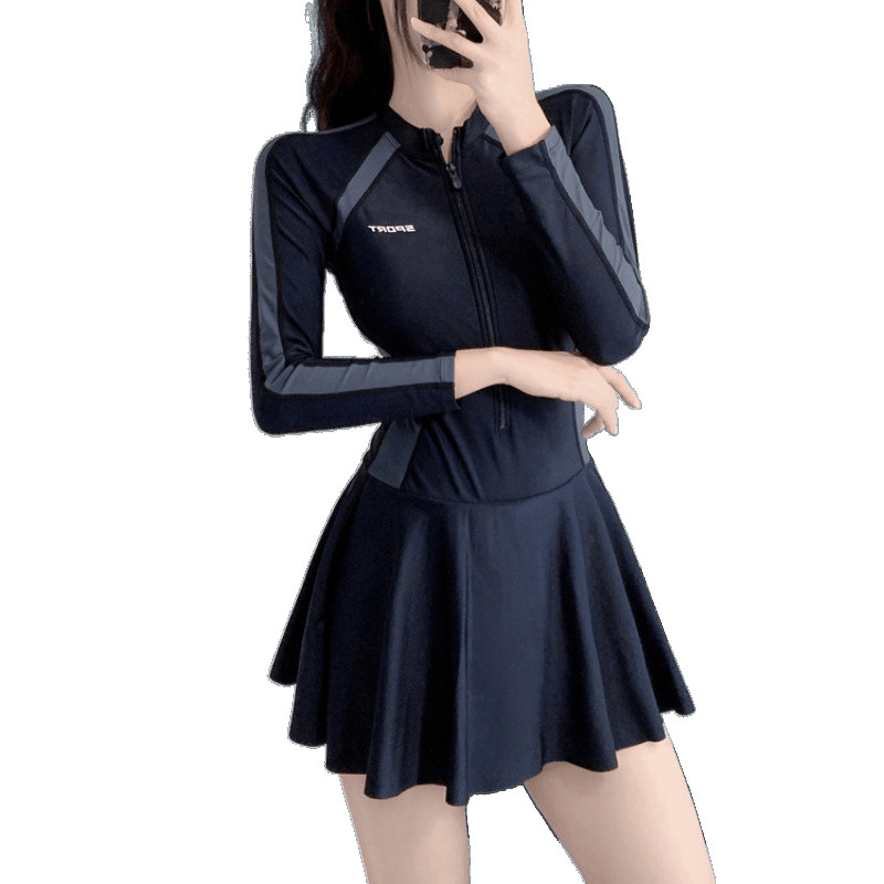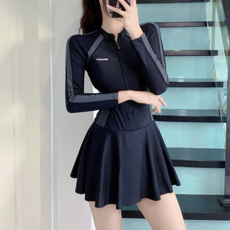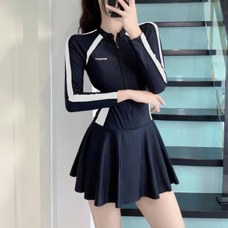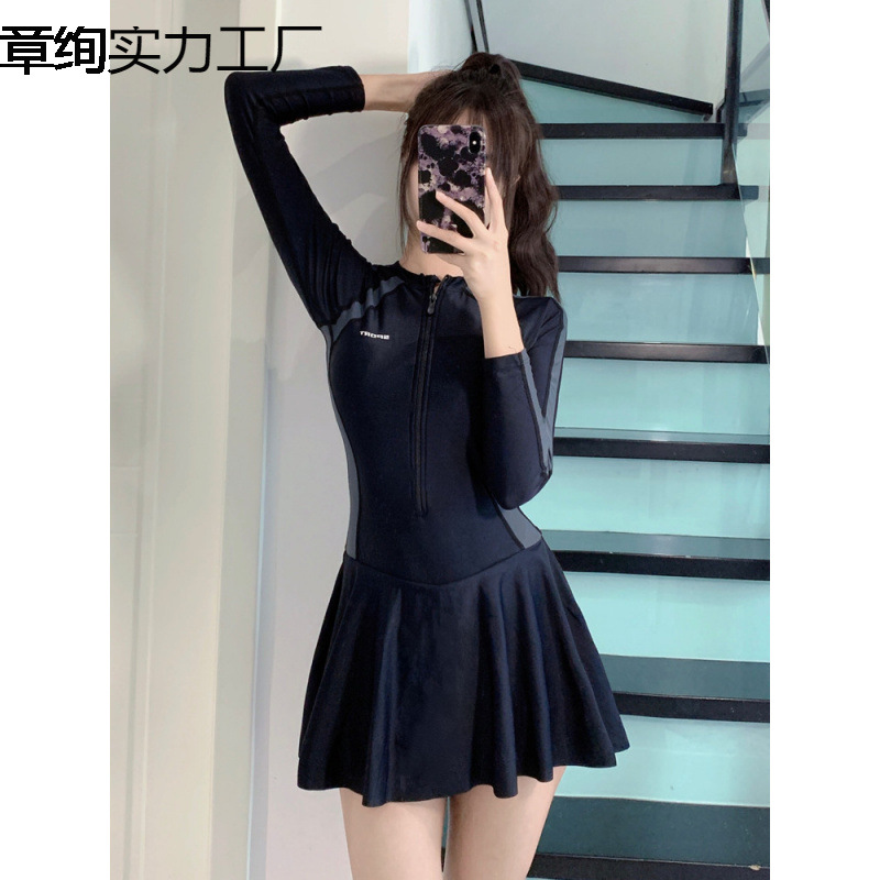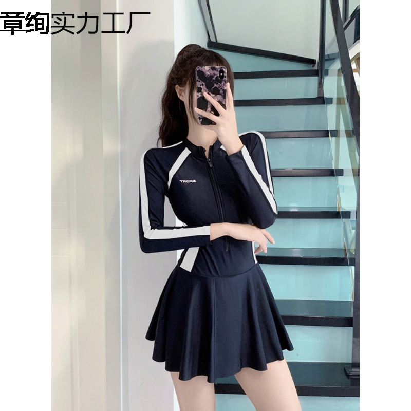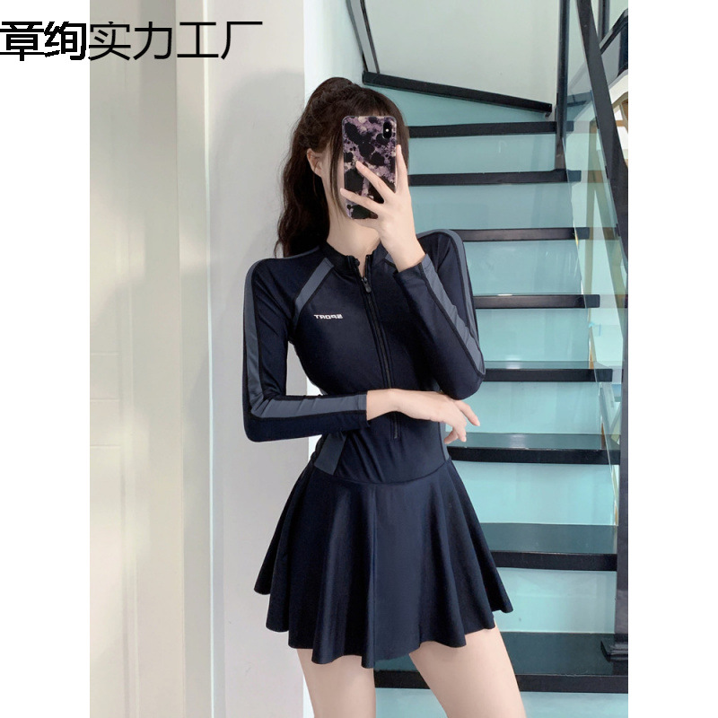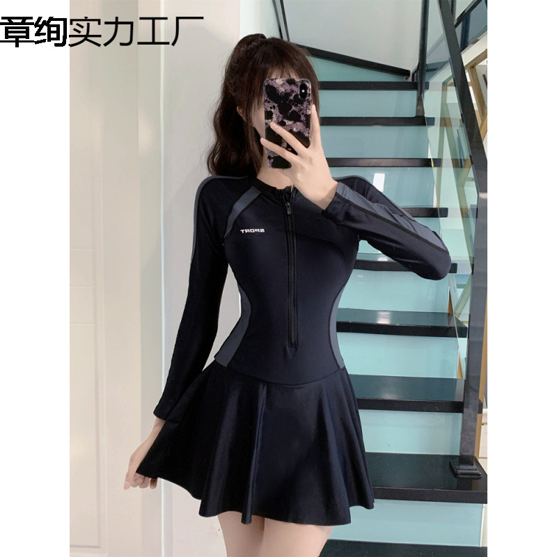 2025 новый цельный купальник с длинными рукавами и защитой от солнца для женщин, закрывающий живот и стройнящий, консервативный спортивный супер-фея в стиле ins, горячий источник