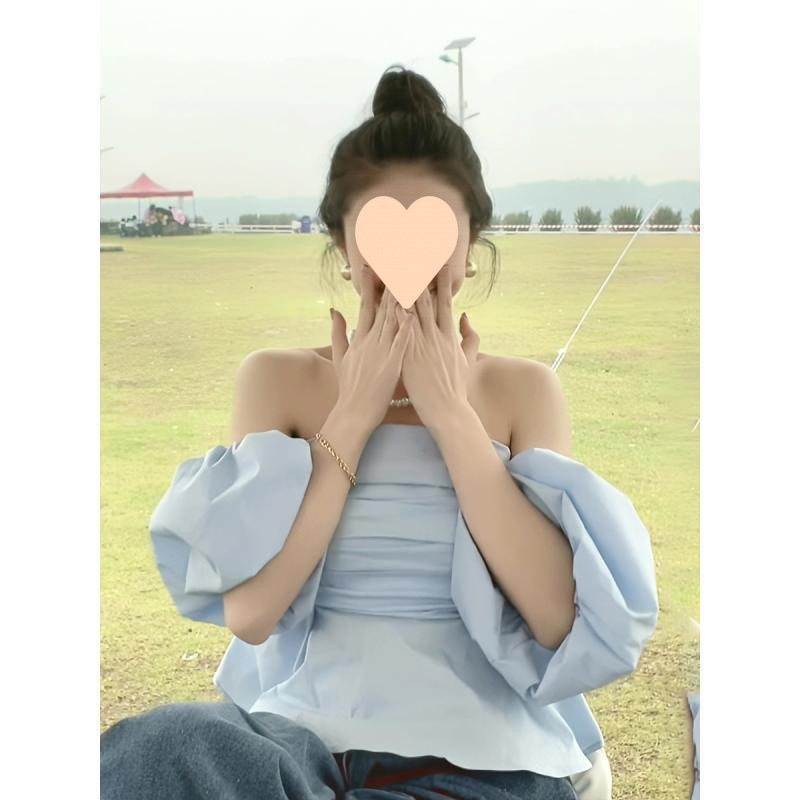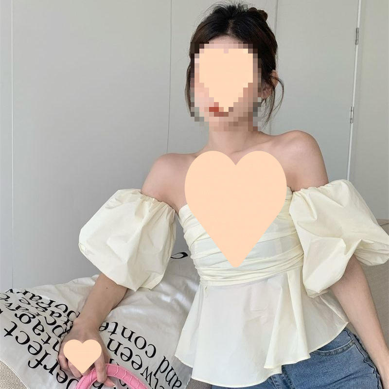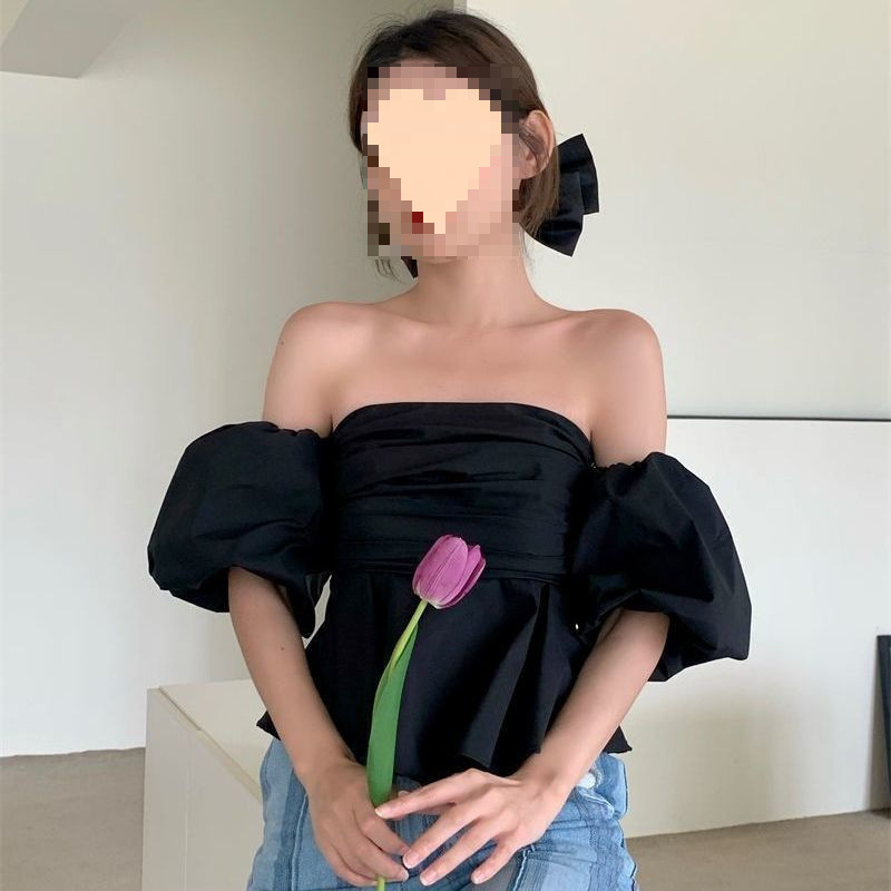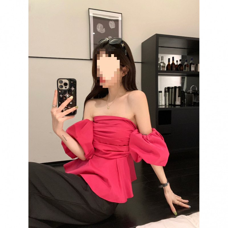 Летняя блузка с открытыми плечами и пышными рукавами в стиле французского ретро для женщин 2025 года, новый дизайн, утягивающий короткий топ с рюшами.