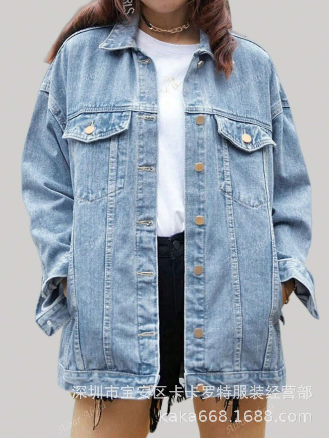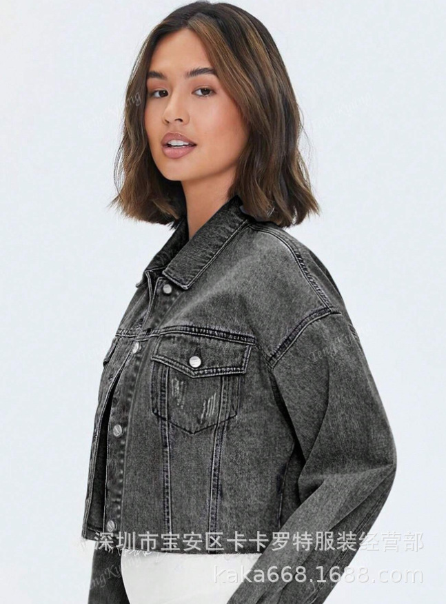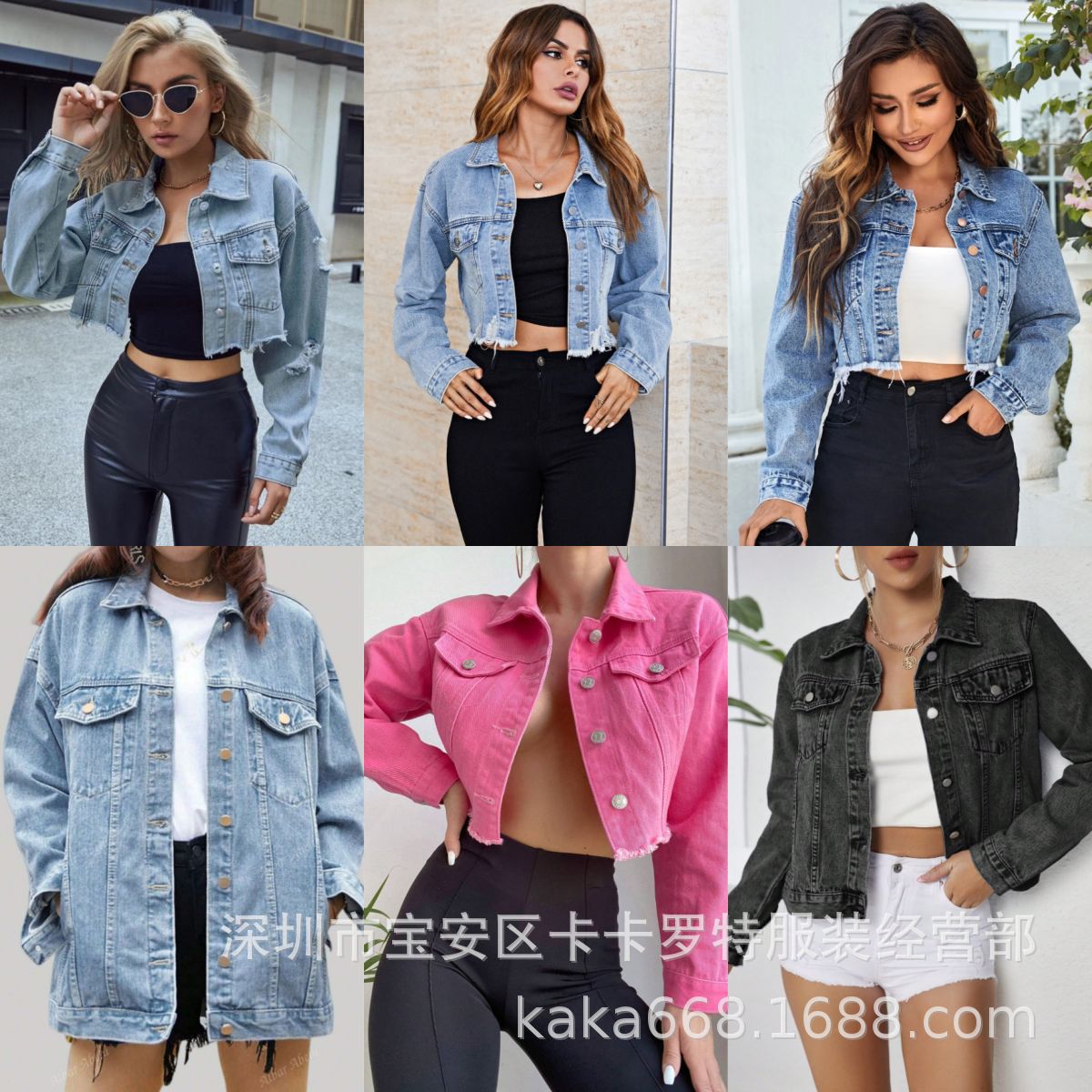 Трансграничная сексуальная джинсовая куртка женская свободная европейская и американская повседневная куртка топ Amazon женская внешняя торговля Jacket