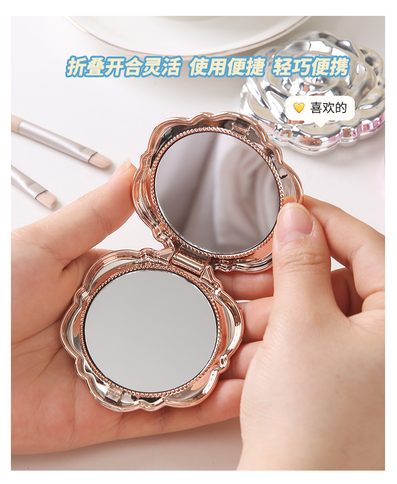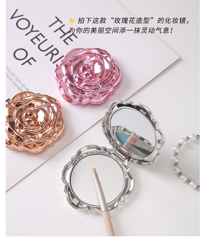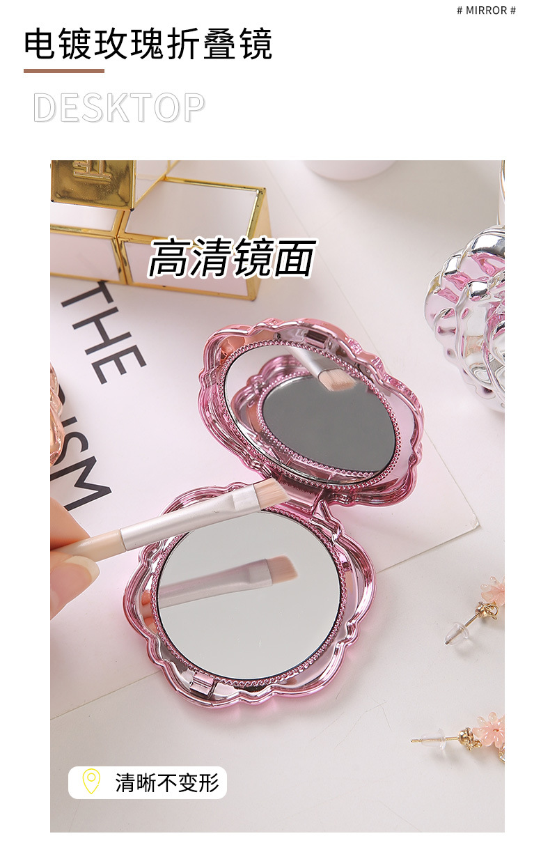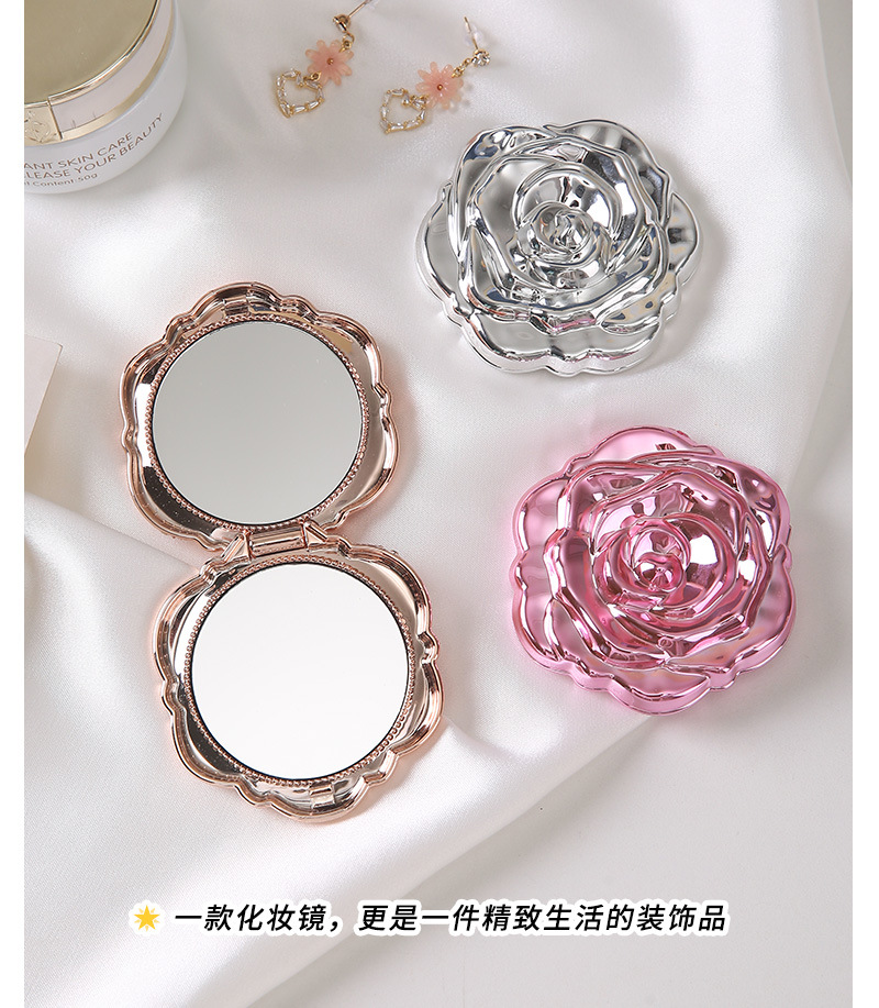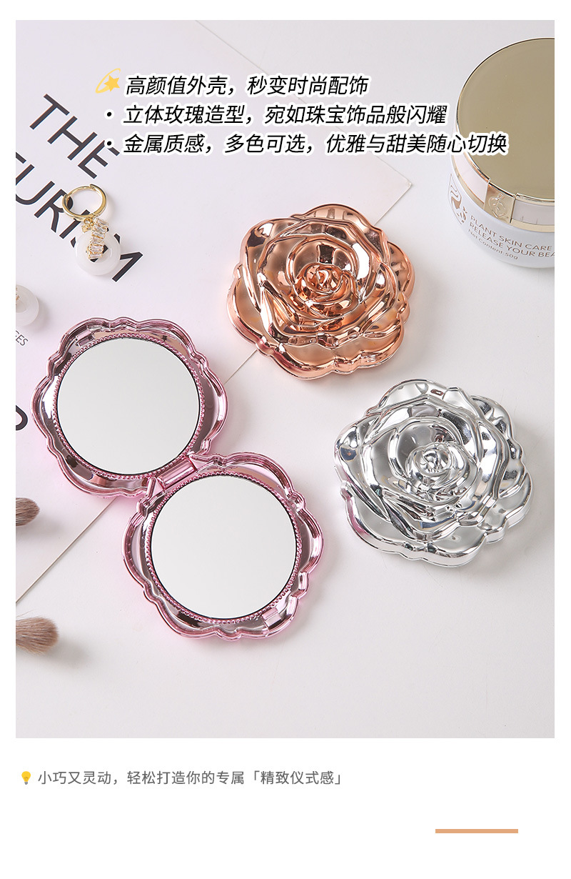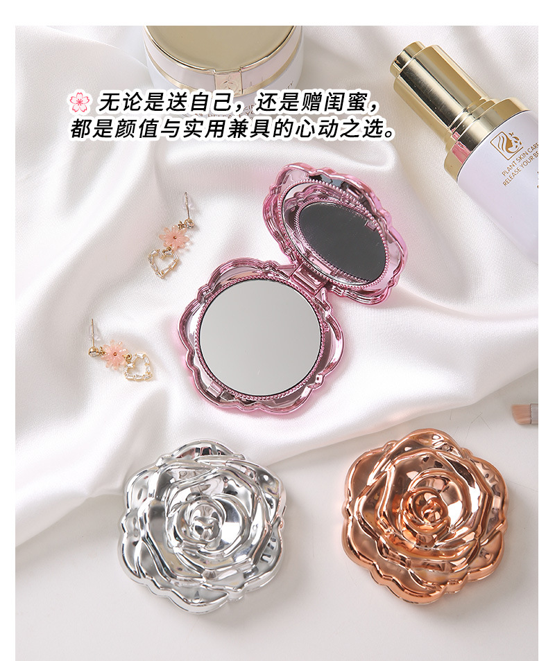 Новое складное круглое зеркало в форме розы, оптовая продажа, ручное одностороннее зеркало для макияжа, настольное портативное туалетное зеркало