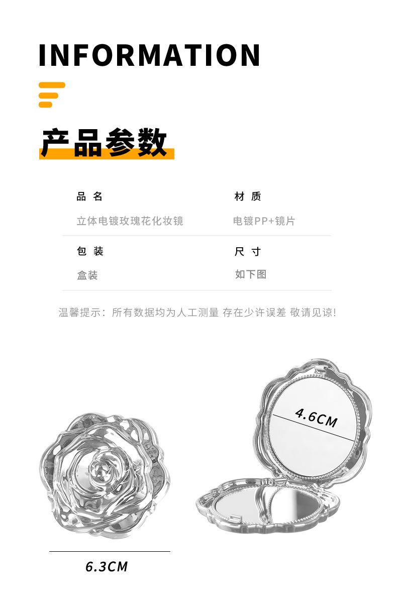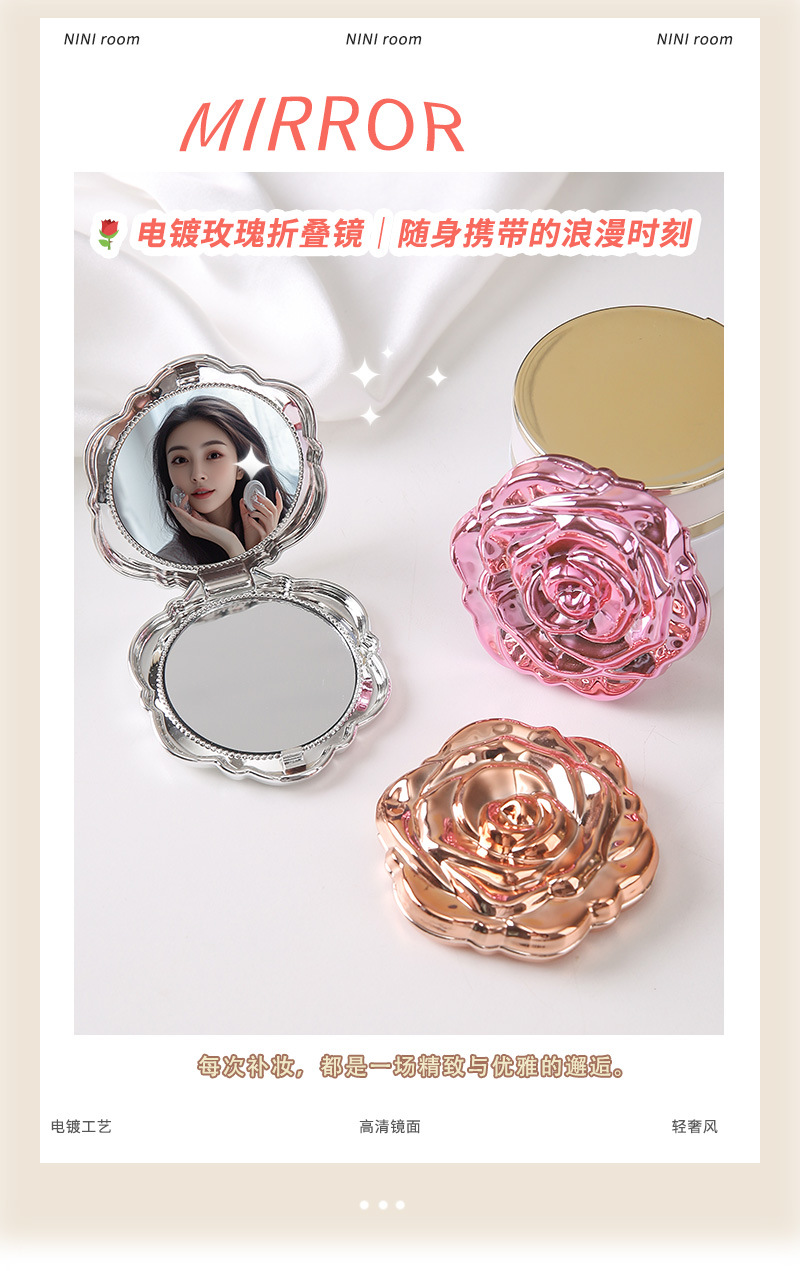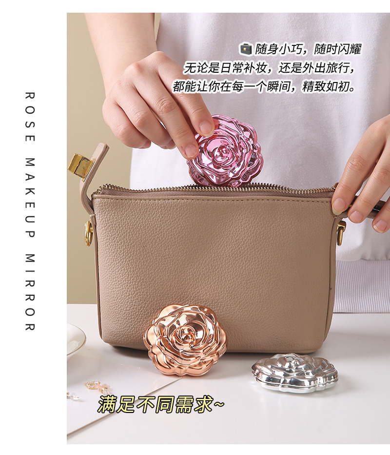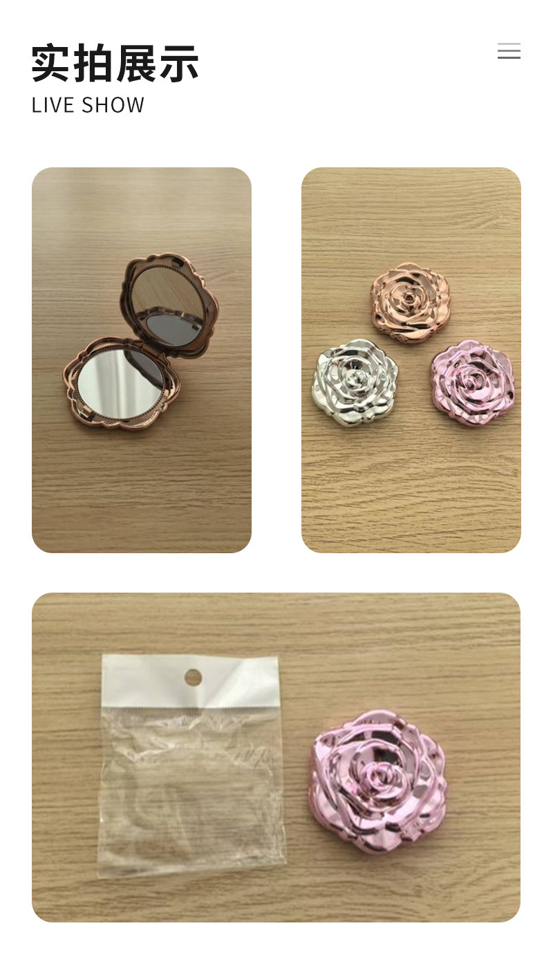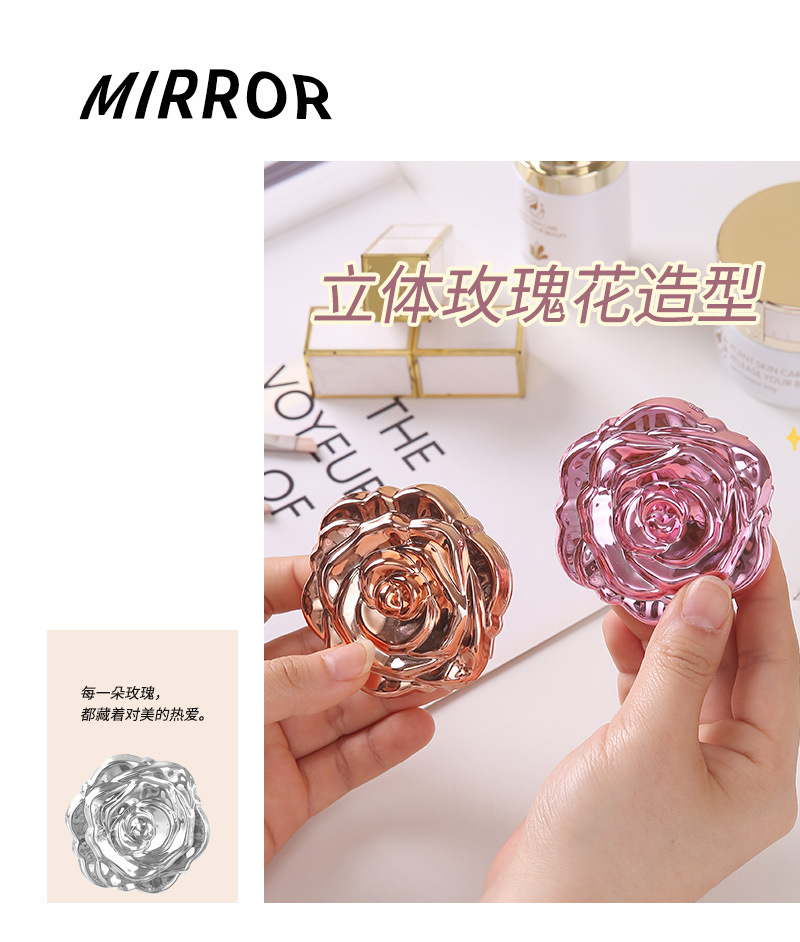 Новое складное круглое зеркало в форме розы, оптовая продажа, ручное одностороннее зеркало для макияжа, настольное портативное туалетное зеркало