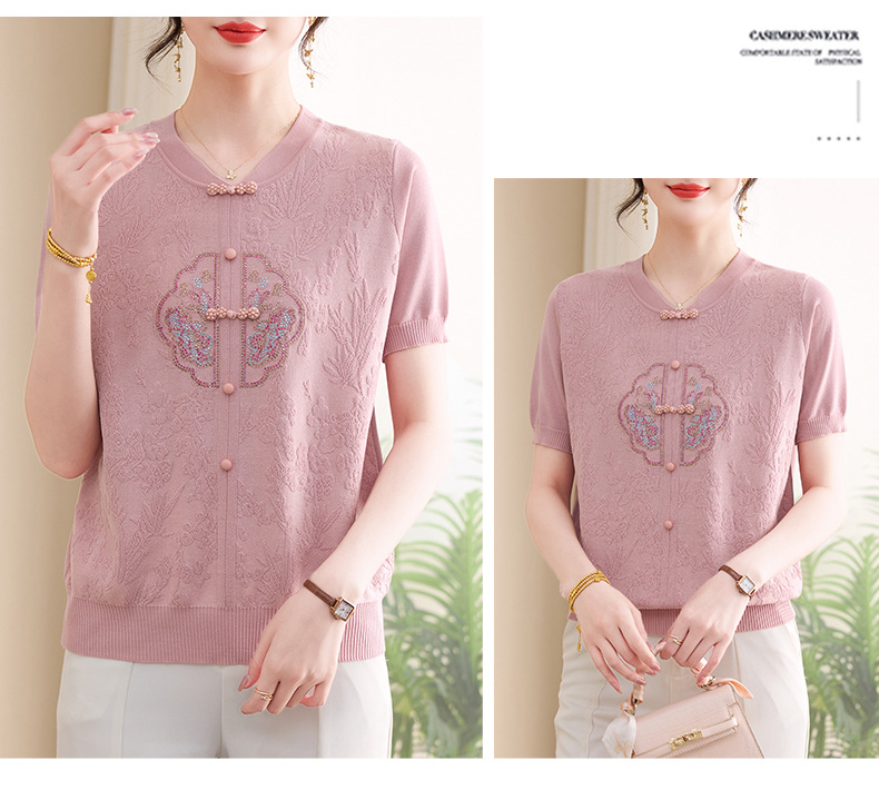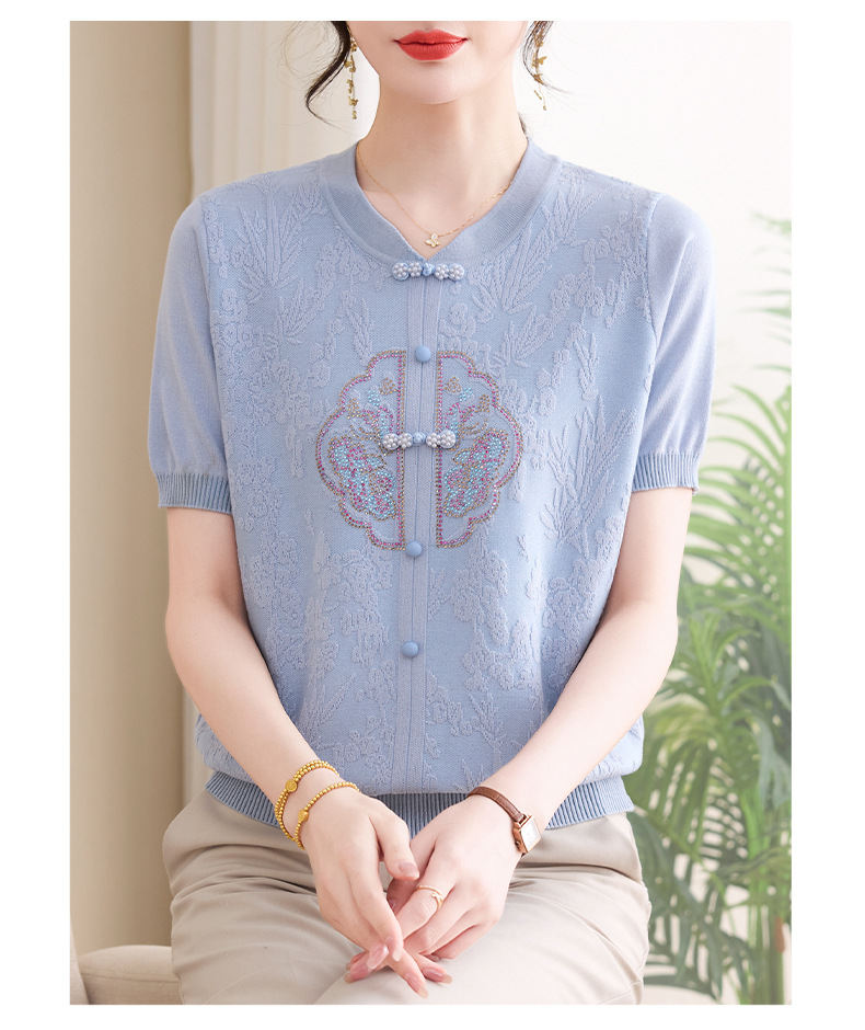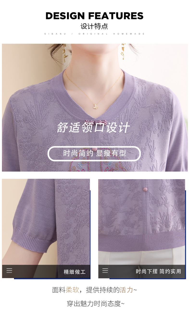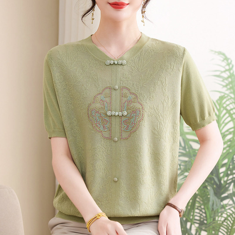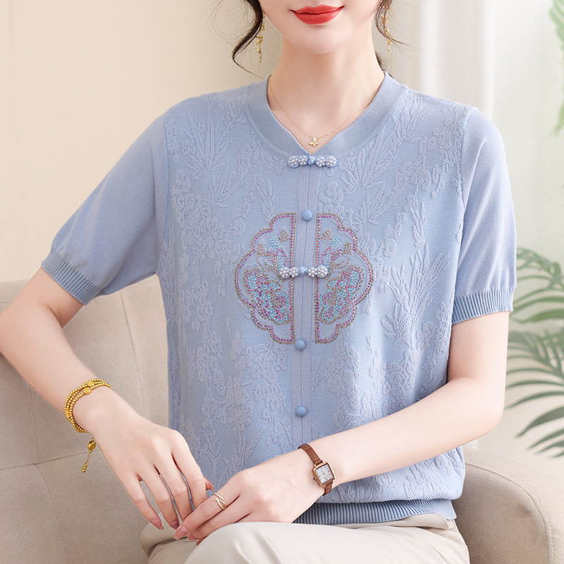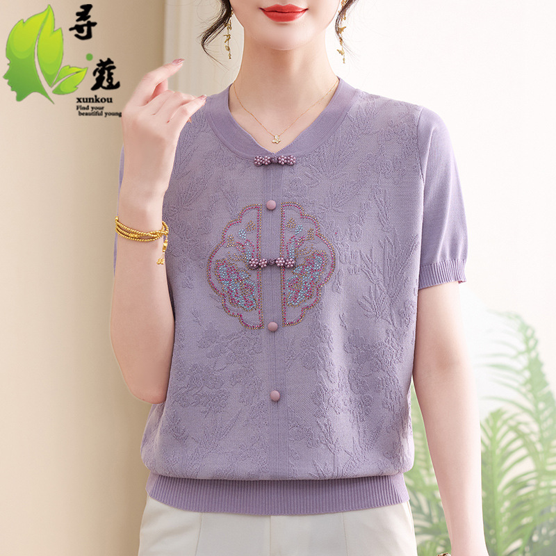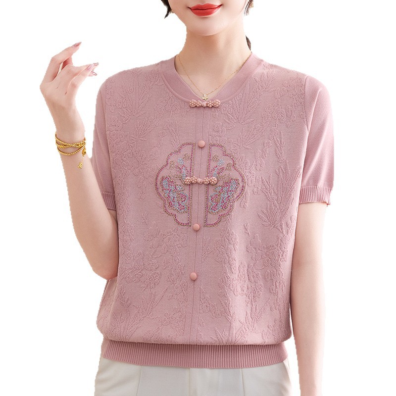 Новая мама летняя одежда мода среднего и пожилого возраста с короткими рукавами свитер темперамент тонкая рубашка 50 лет летом среднего возраста