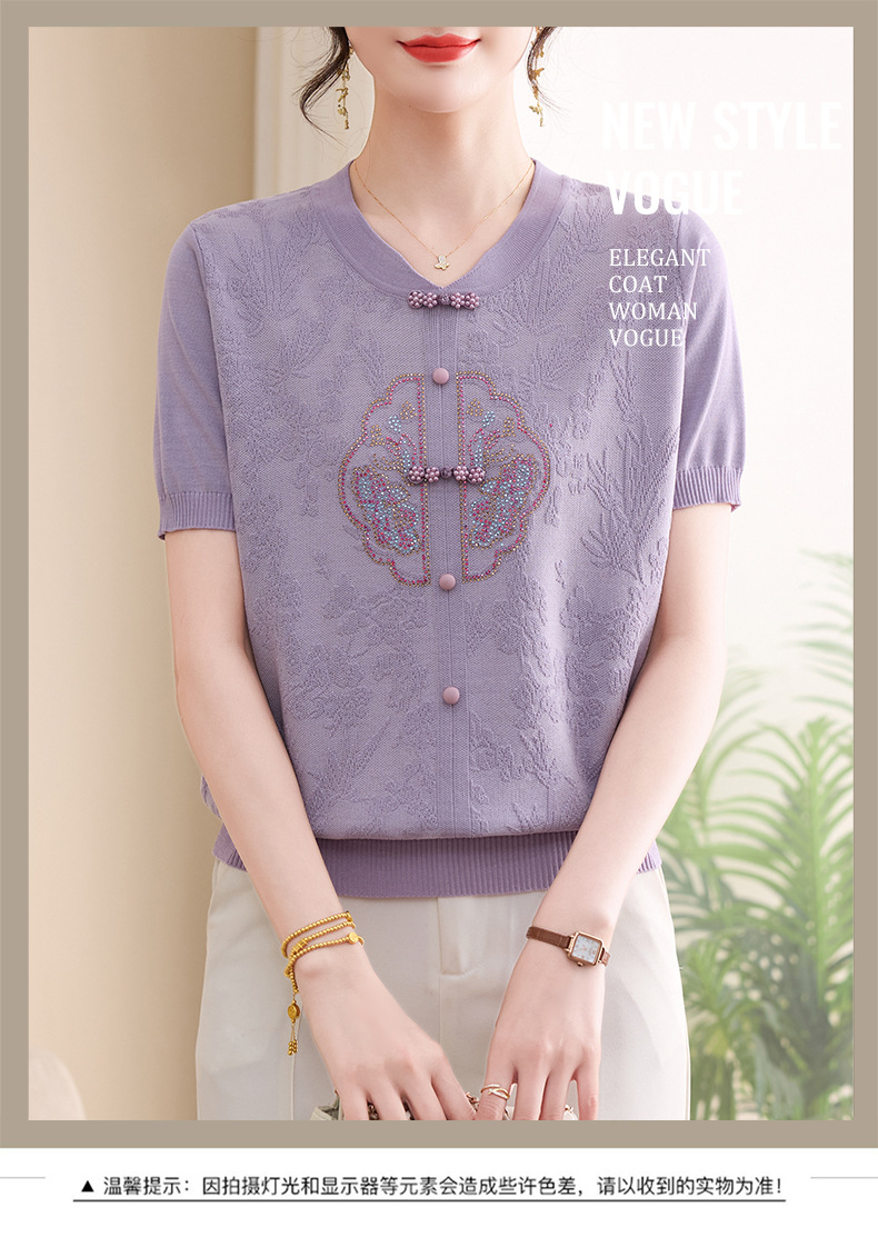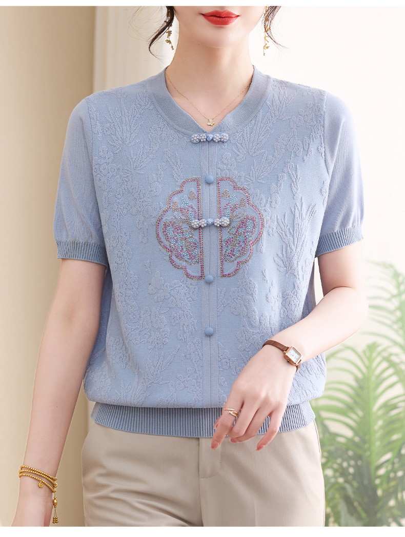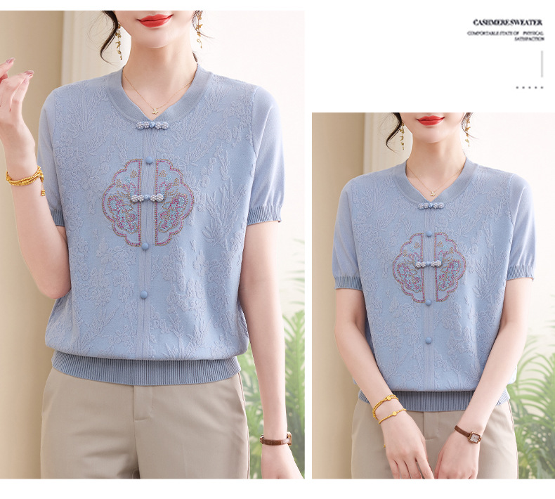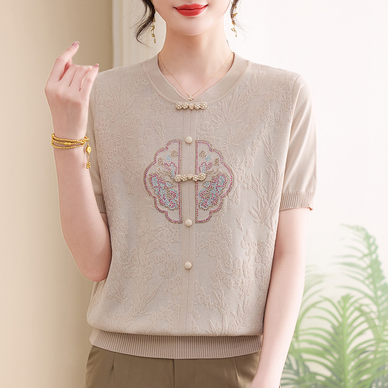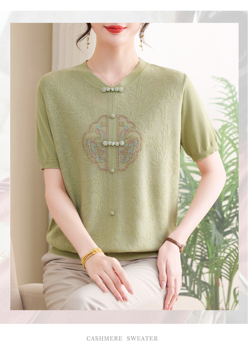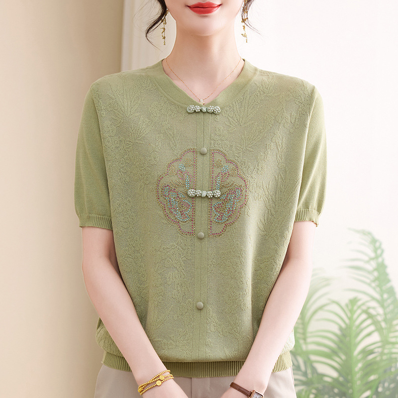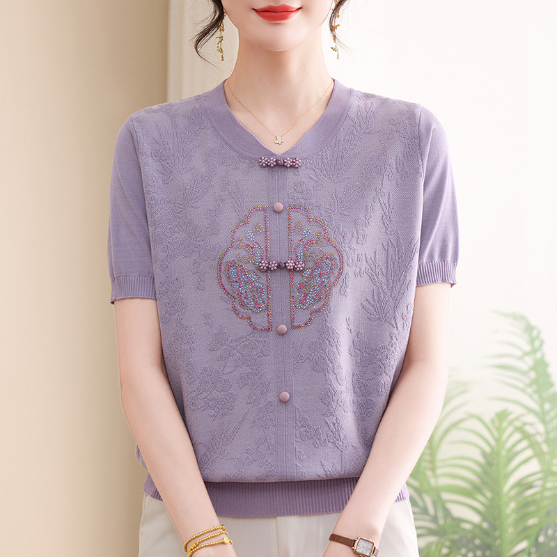 Новая мама летняя одежда мода среднего и пожилого возраста с короткими рукавами свитер темперамент тонкая рубашка 50 лет летом среднего возраста