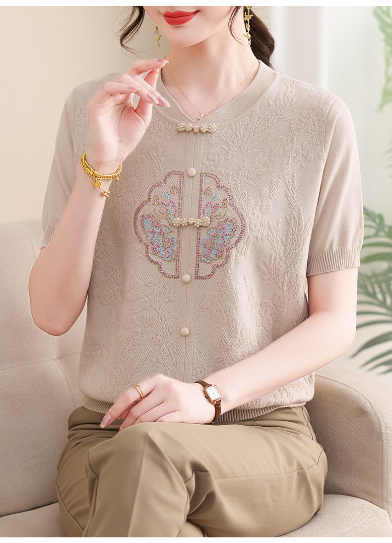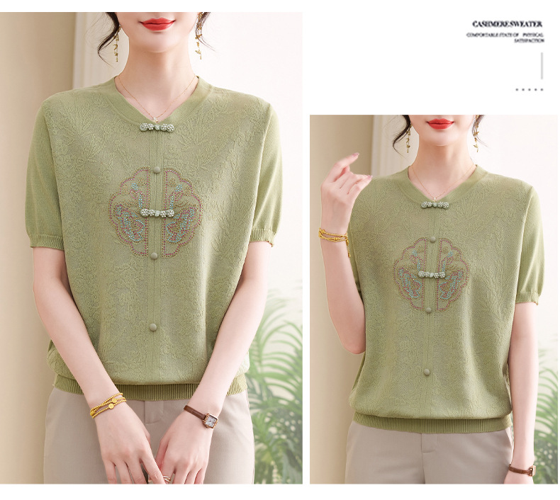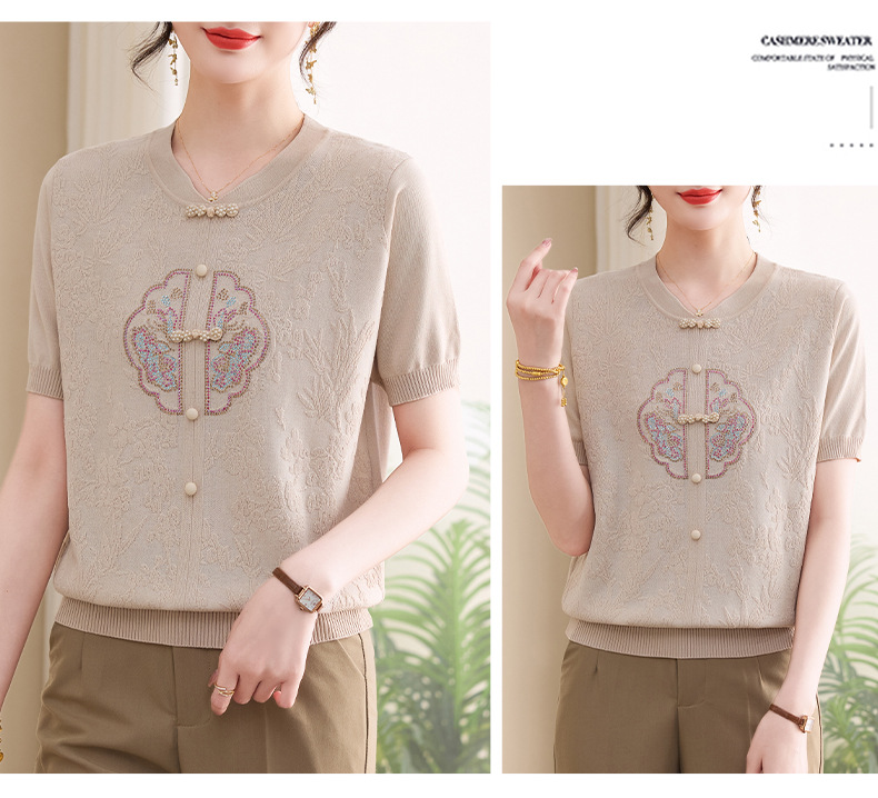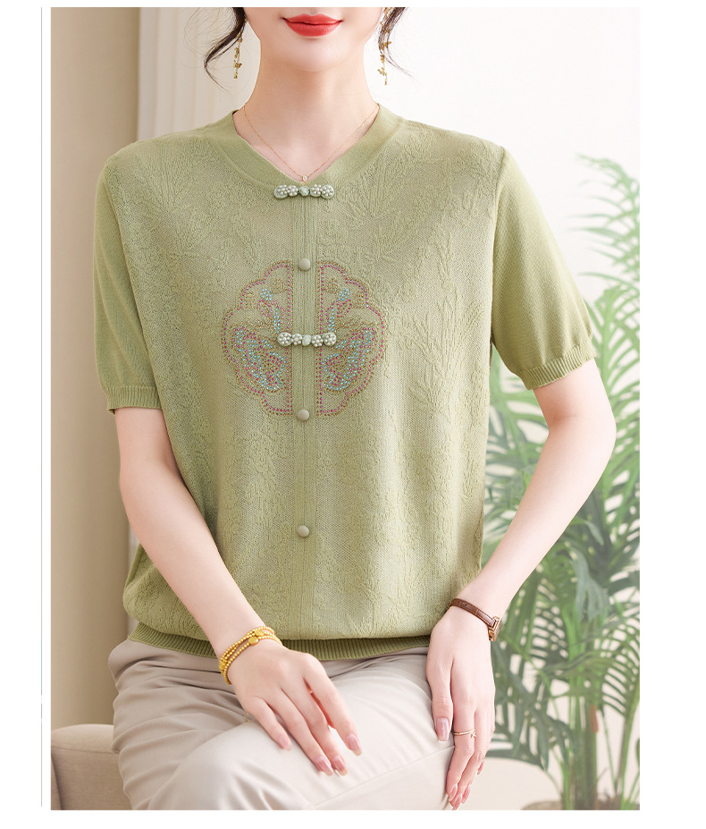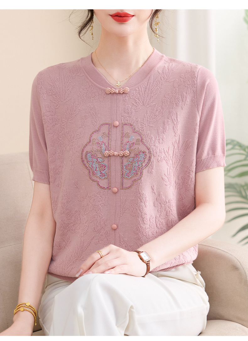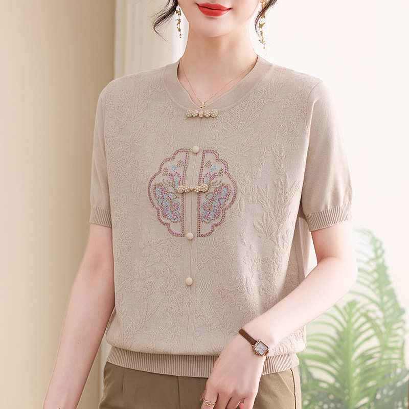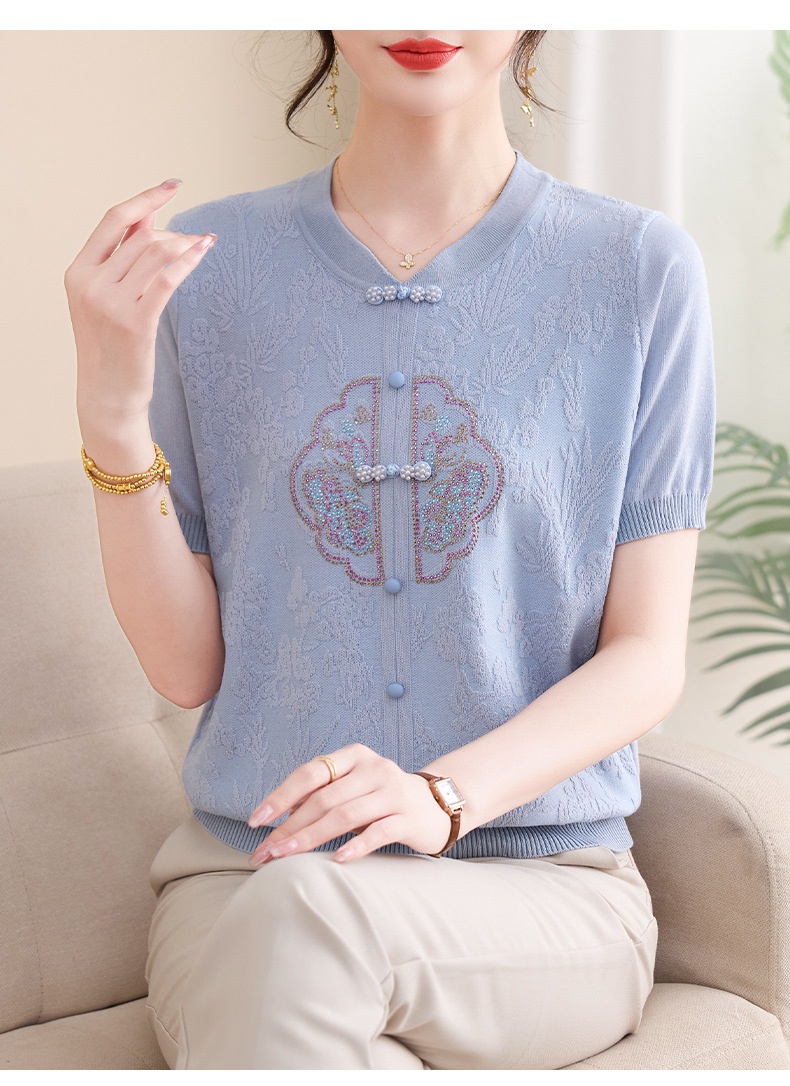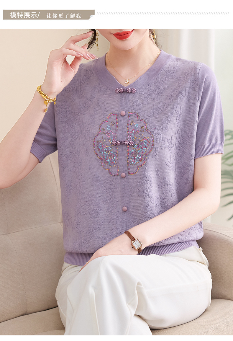 Новая мама летняя одежда мода среднего и пожилого возраста с короткими рукавами свитер темперамент тонкая рубашка 50 лет летом среднего возраста