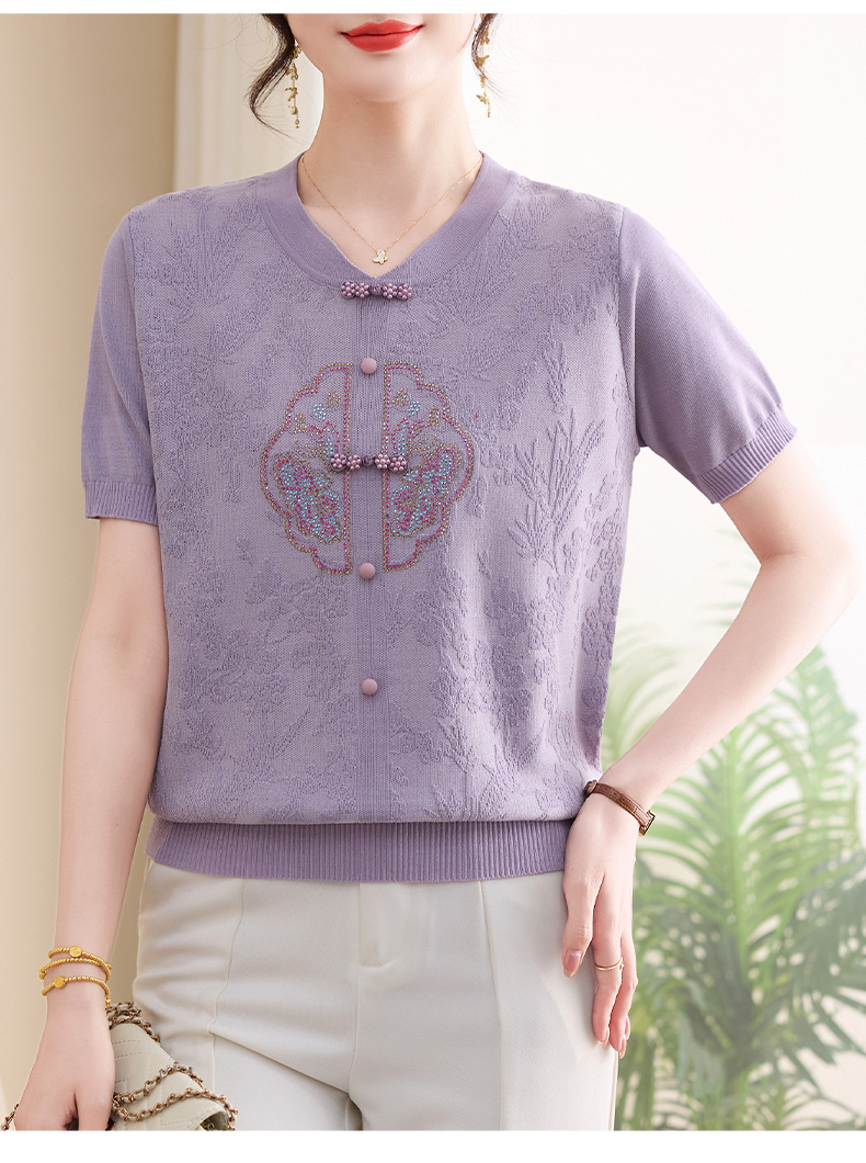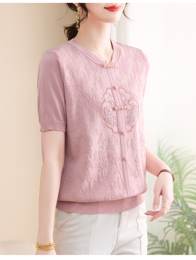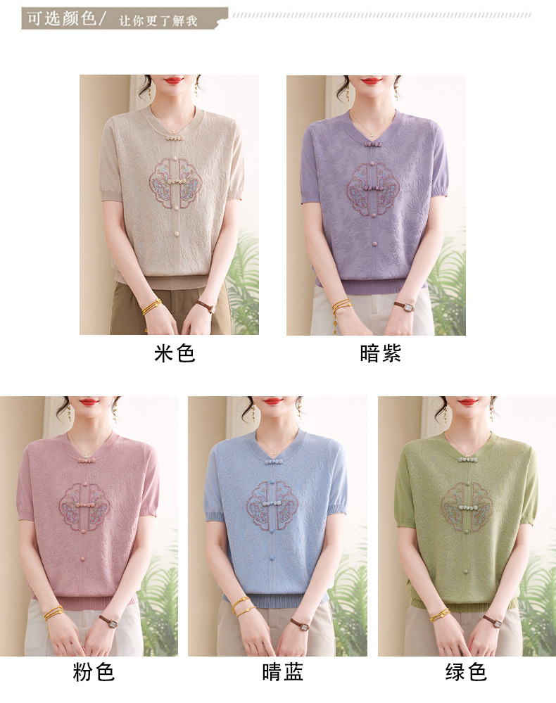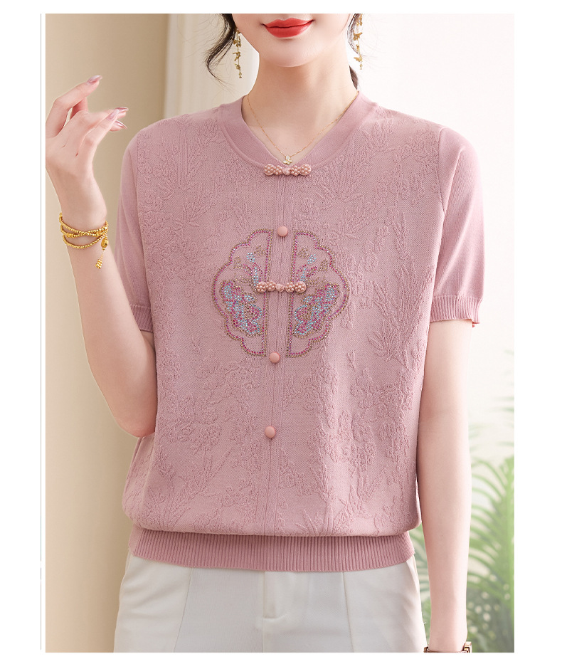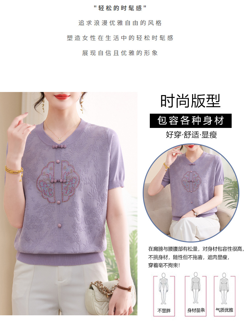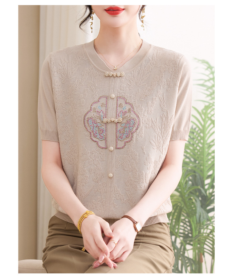 Новая мама летняя одежда мода среднего и пожилого возраста с короткими рукавами свитер темперамент тонкая рубашка 50 лет летом среднего возраста