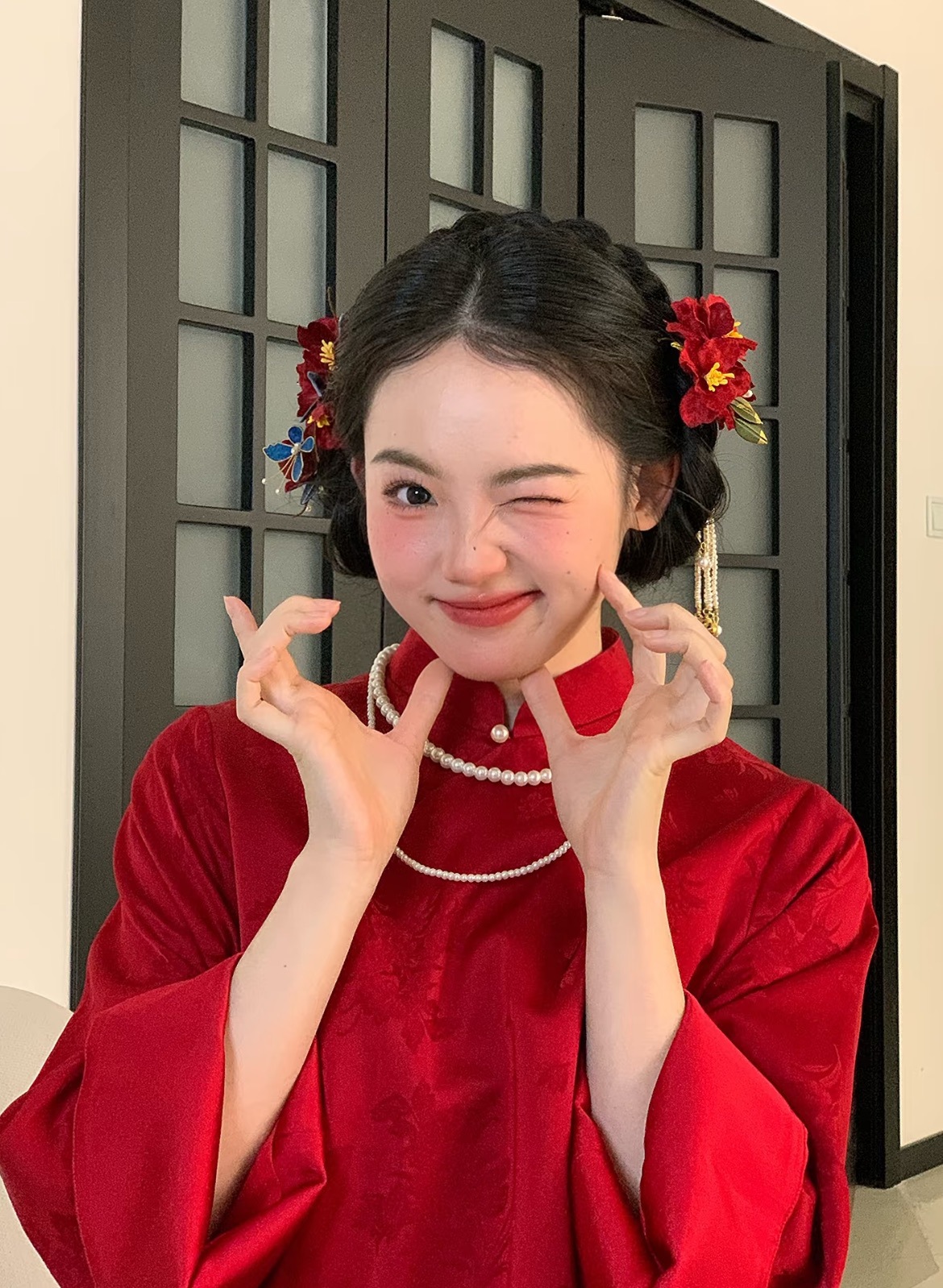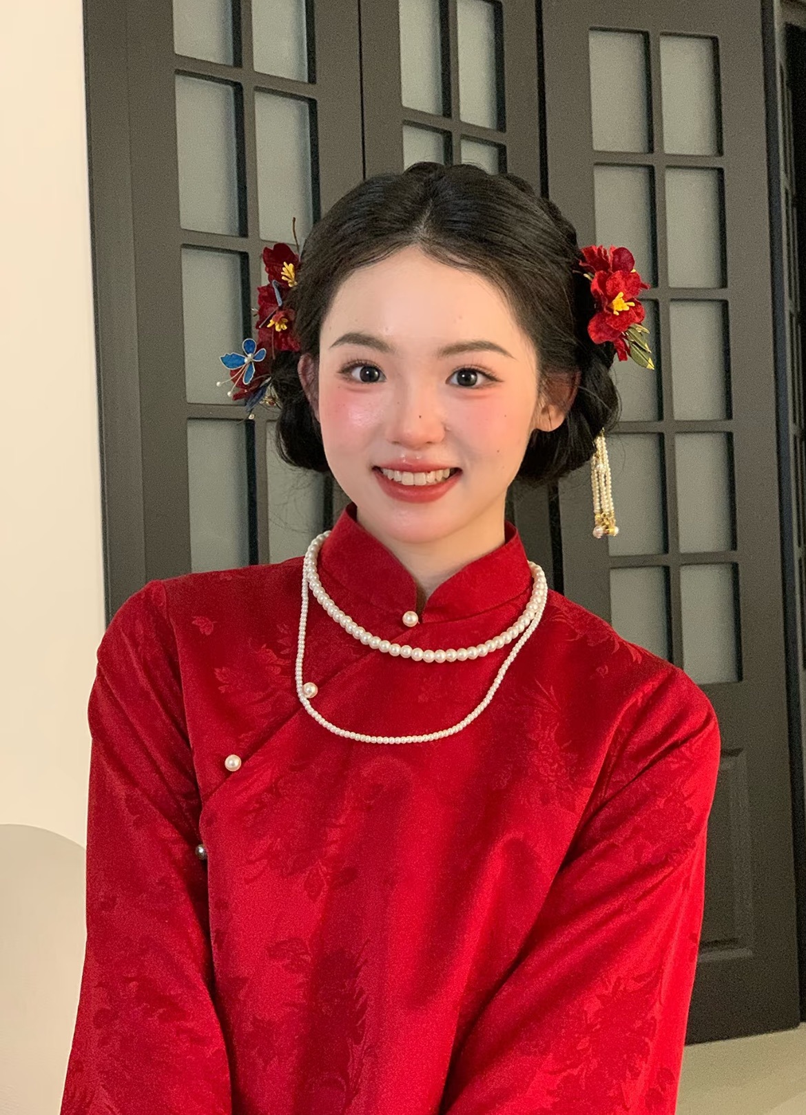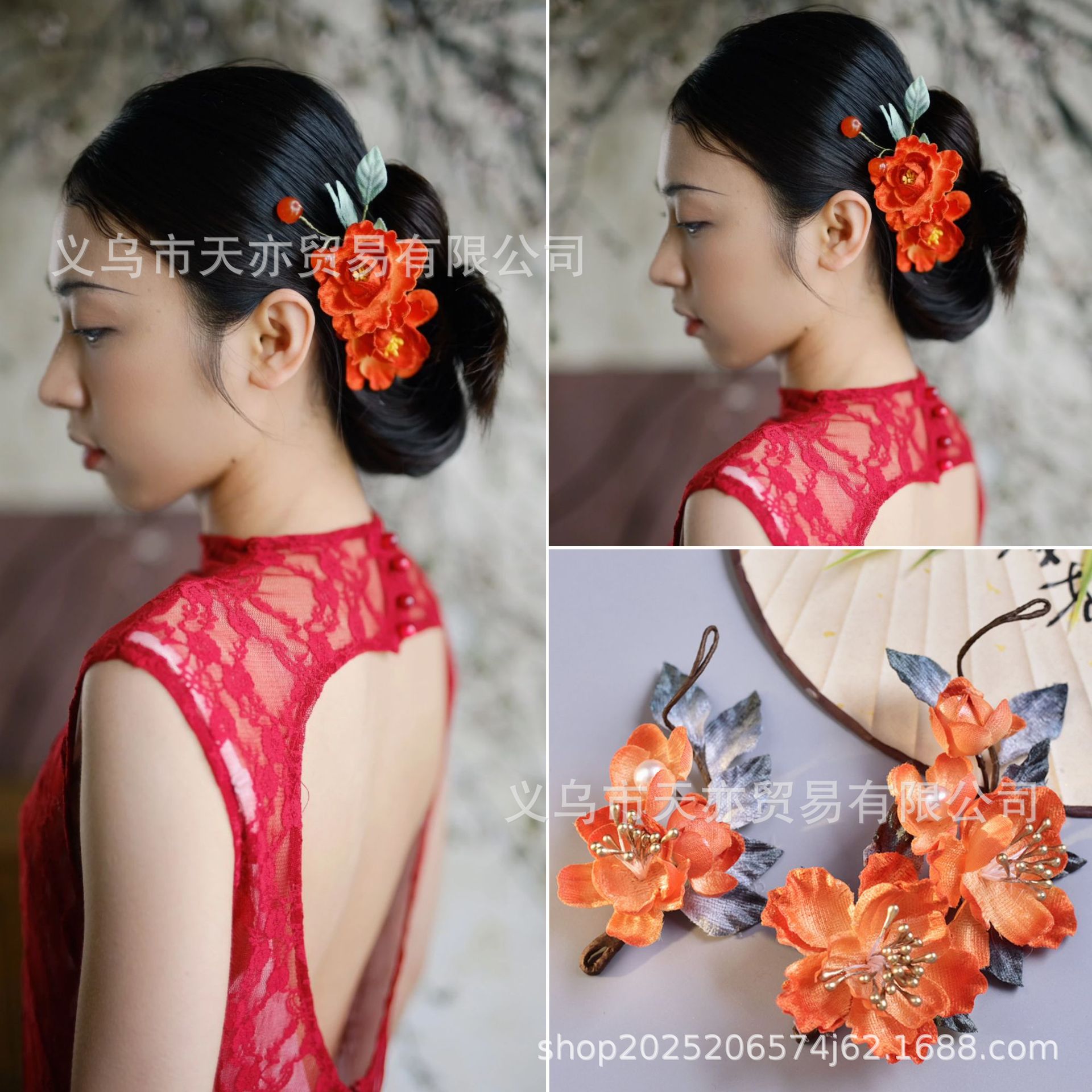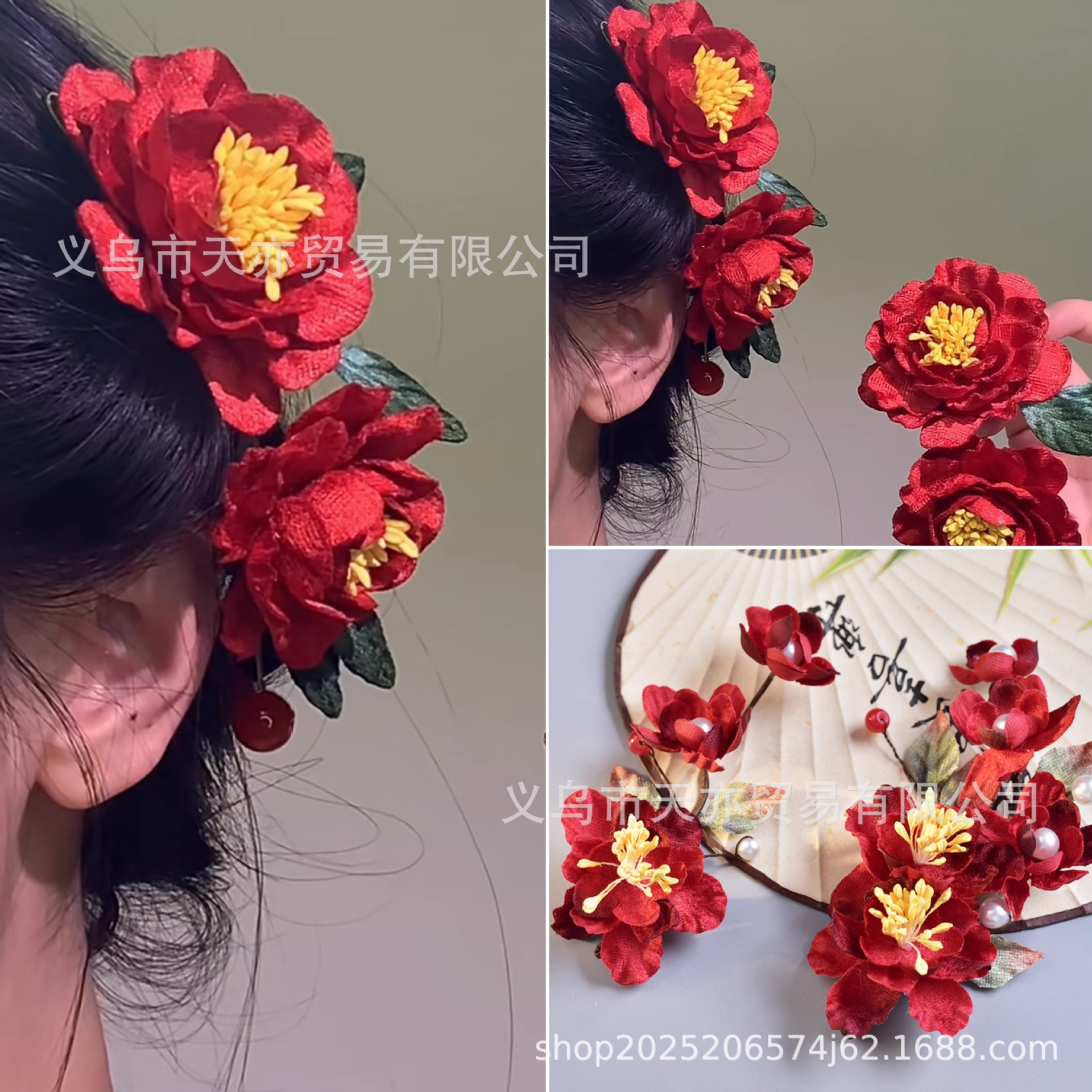 Свадебный головной убор, аксессуары для волос в китайском стиле с красными цветами ручной работы, аксессуары для макияжа и волос Xiuhe, набор аксессуаров для волос Hanfu