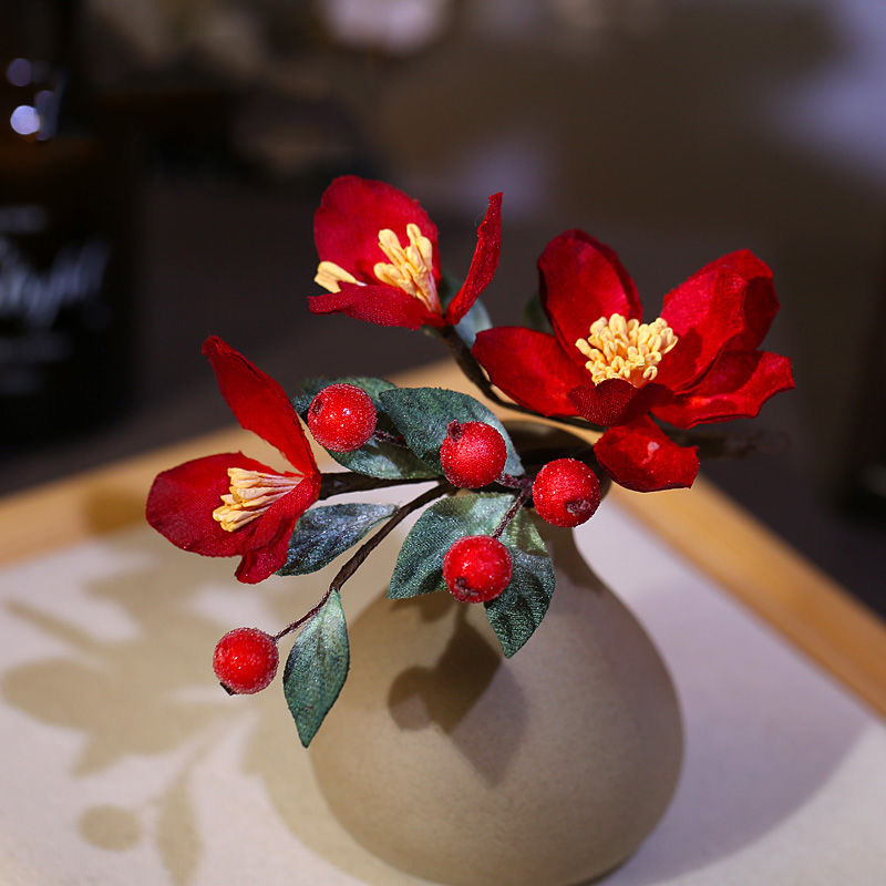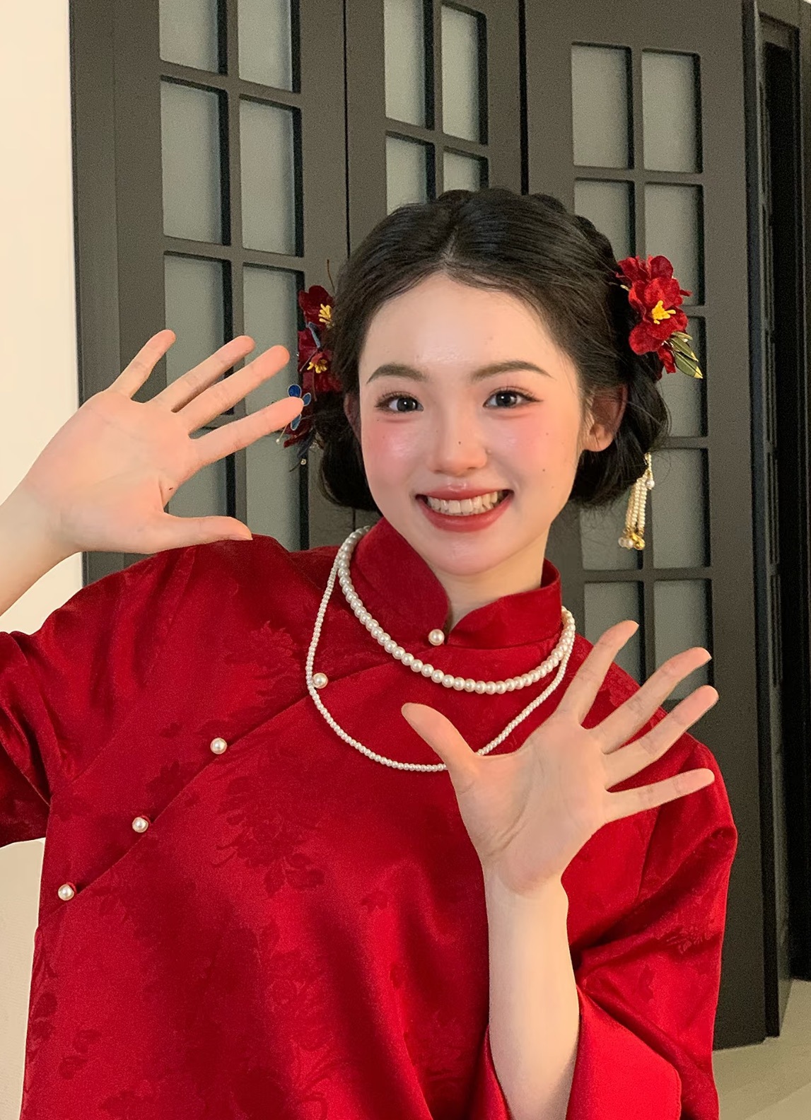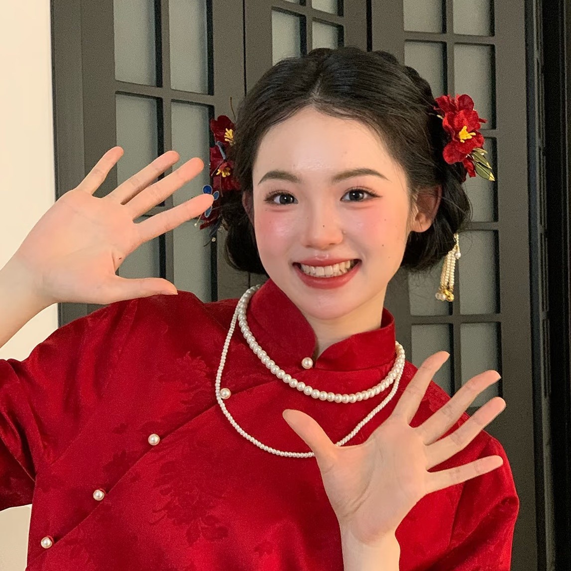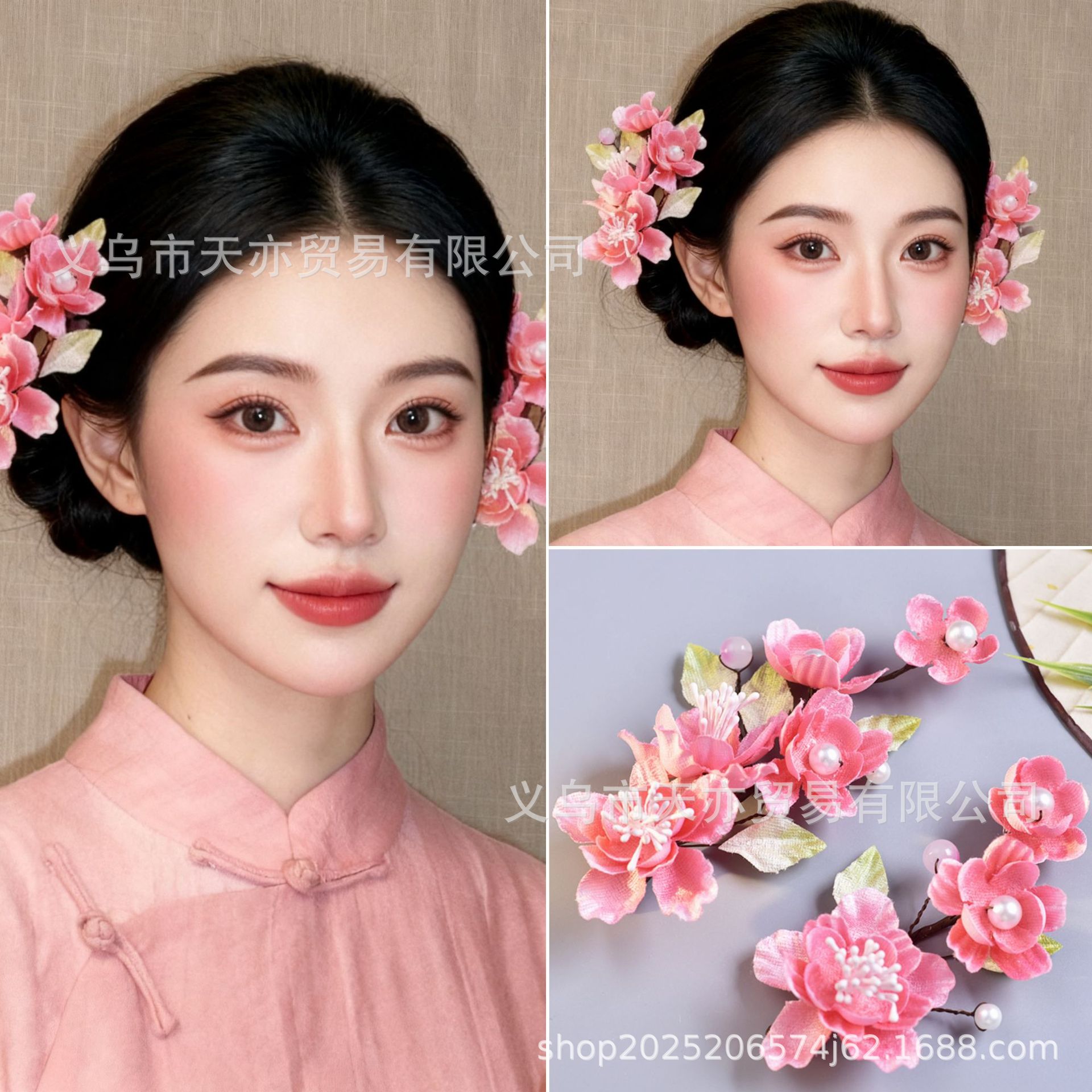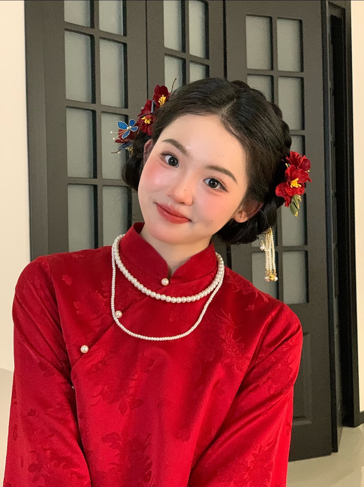 Свадебный головной убор, аксессуары для волос в китайском стиле с красными цветами ручной работы, аксессуары для макияжа и волос Xiuhe, набор аксессуаров для волос Hanfu