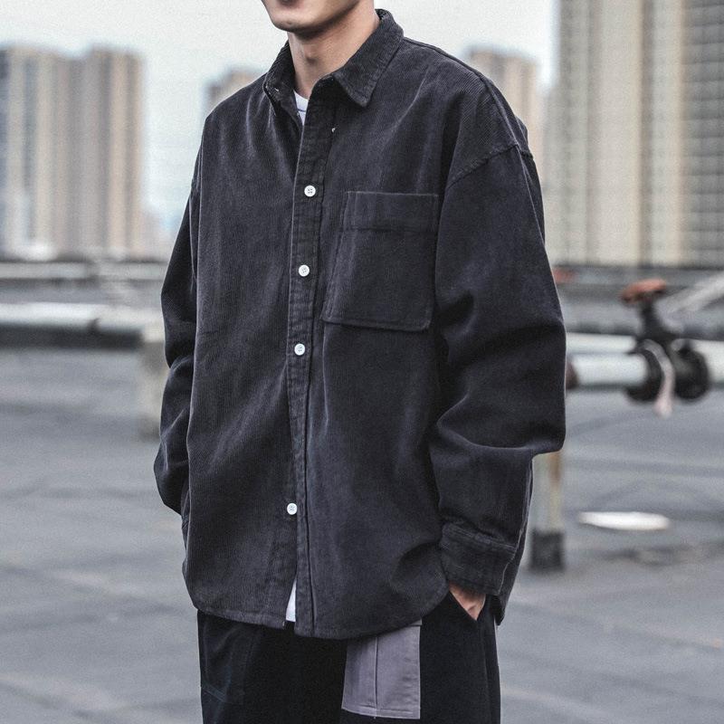 Вельветовая рубашка мужская с длинными рукавами, осенняя японская модная повседневная свободная мужская осенне-зимняя толстая рубашка, мужская куртка