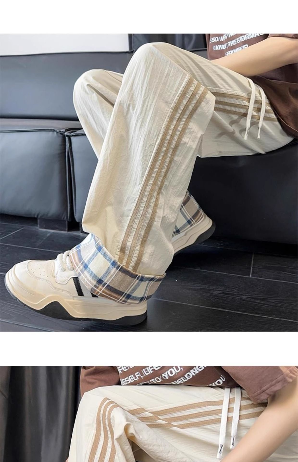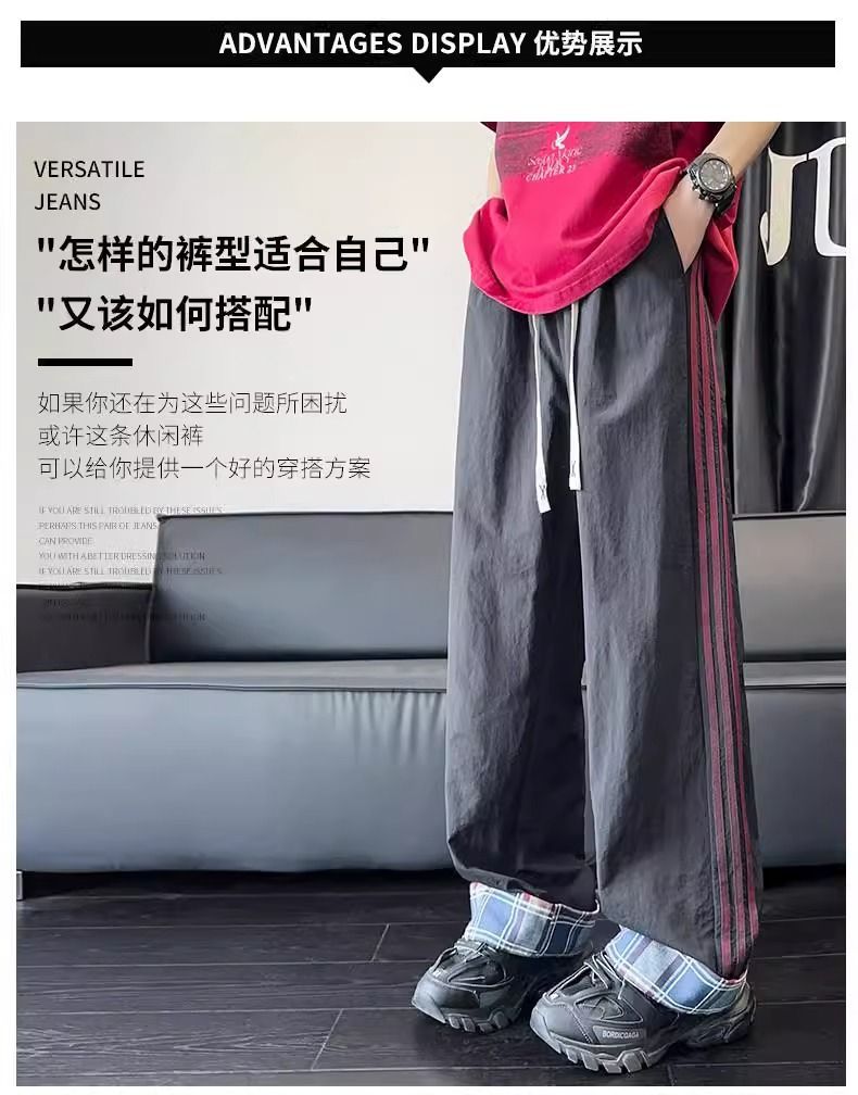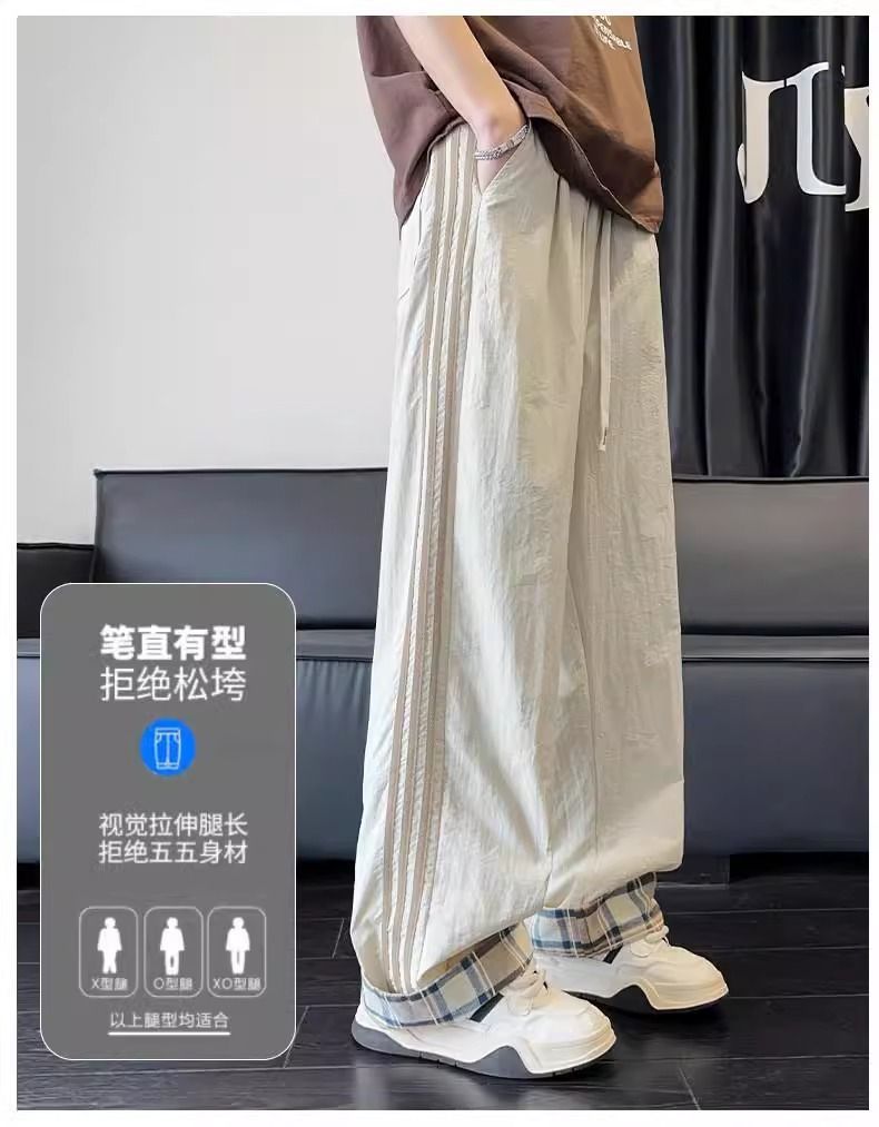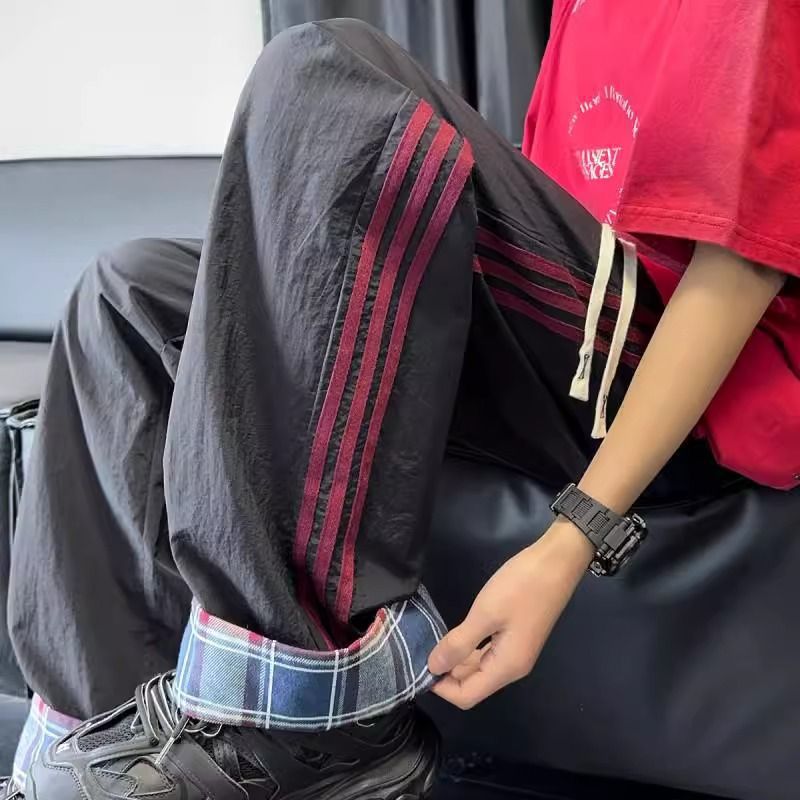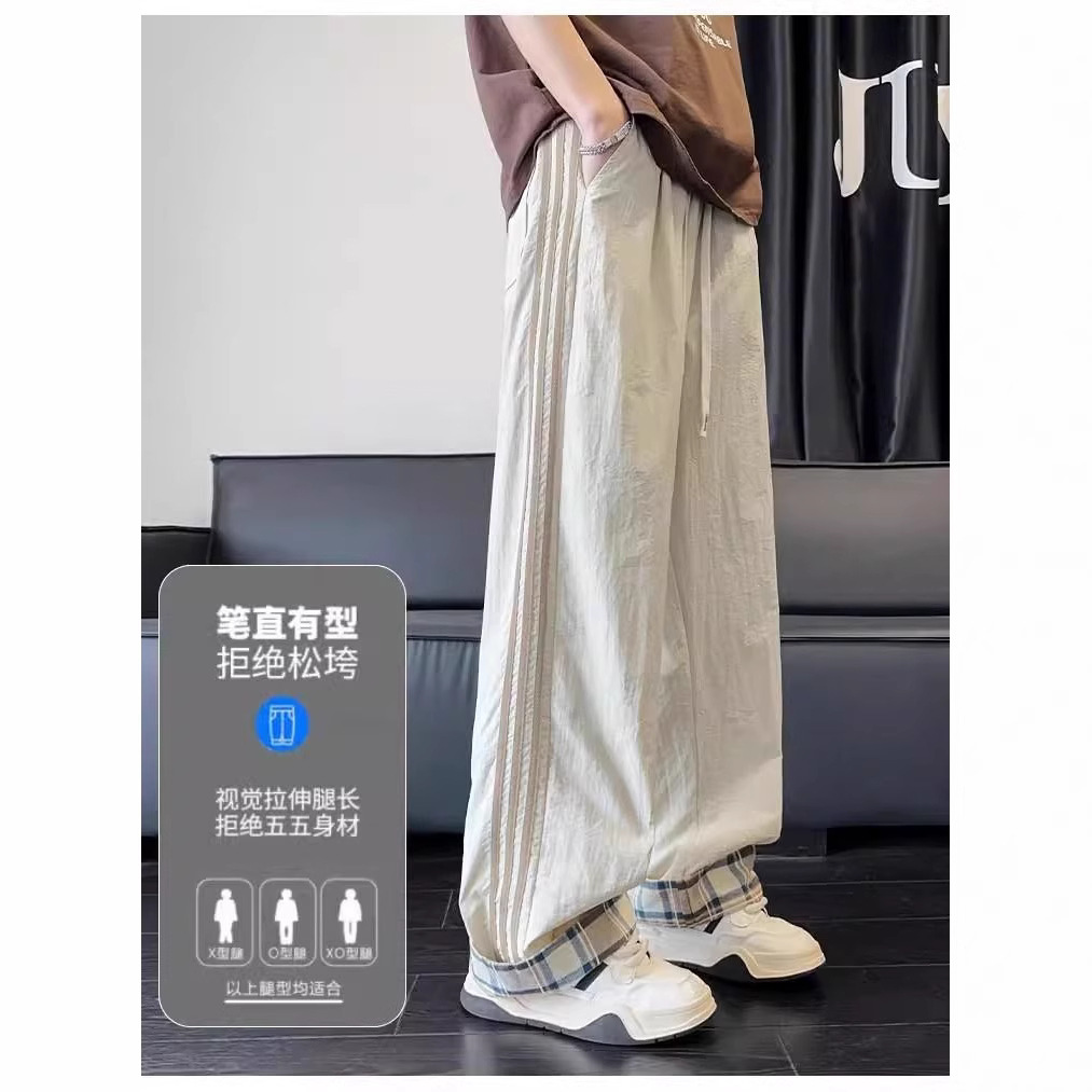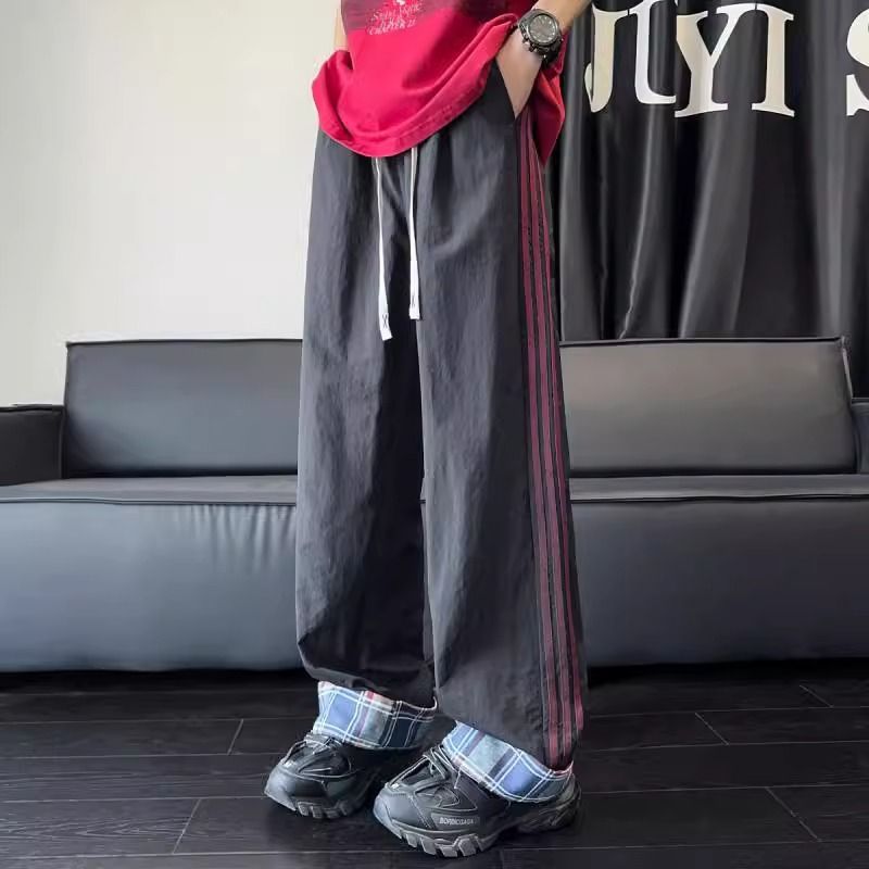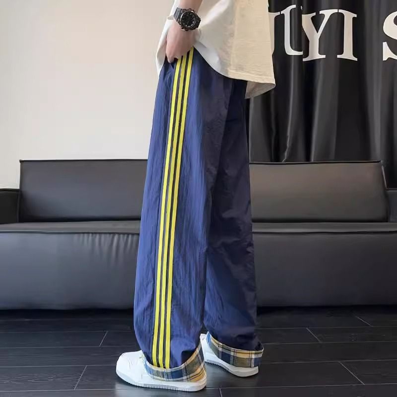Мужские быстросохнущие спортивные брюки в полоску с закругленными краями в американском стиле, весенние модные американские повседневные свободные прямые широкие брюки.