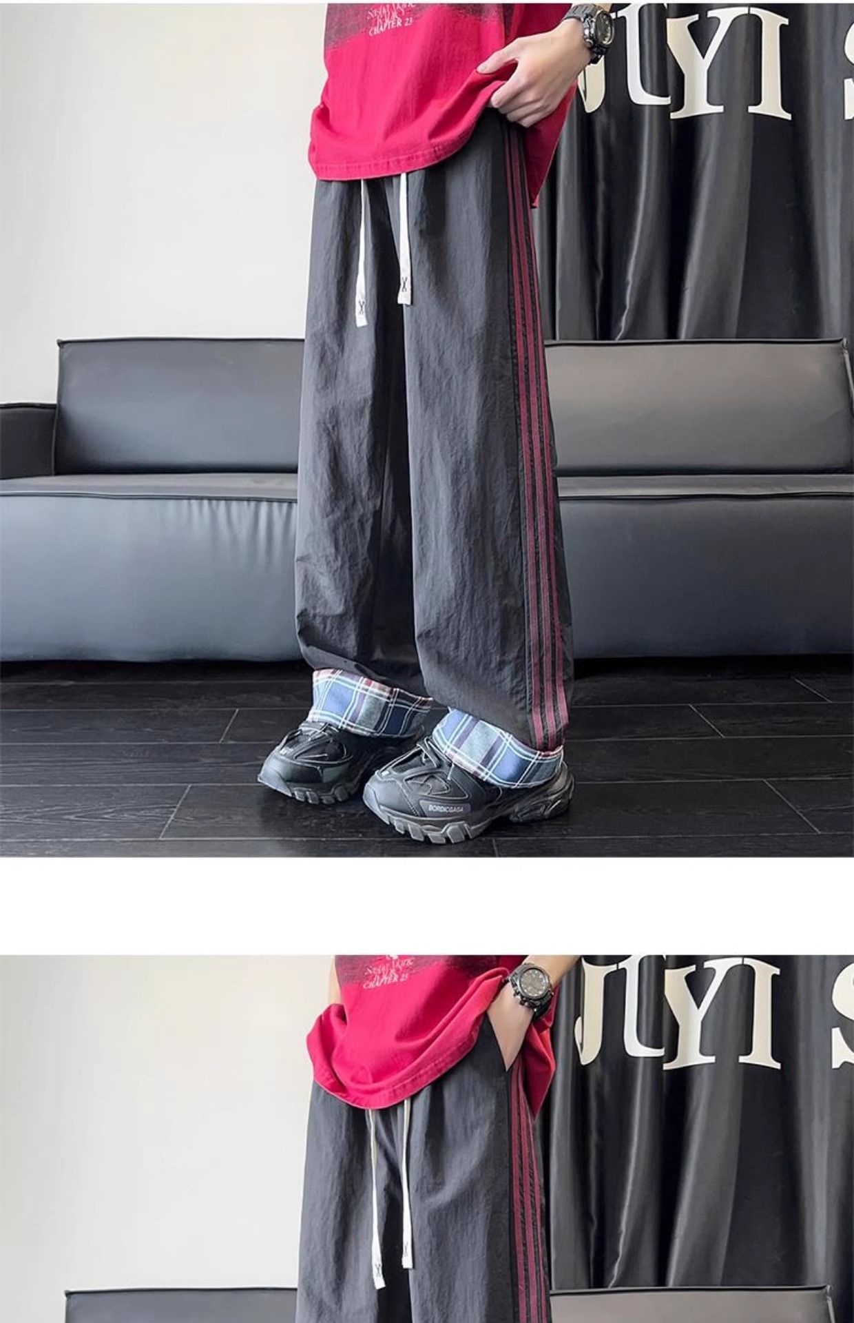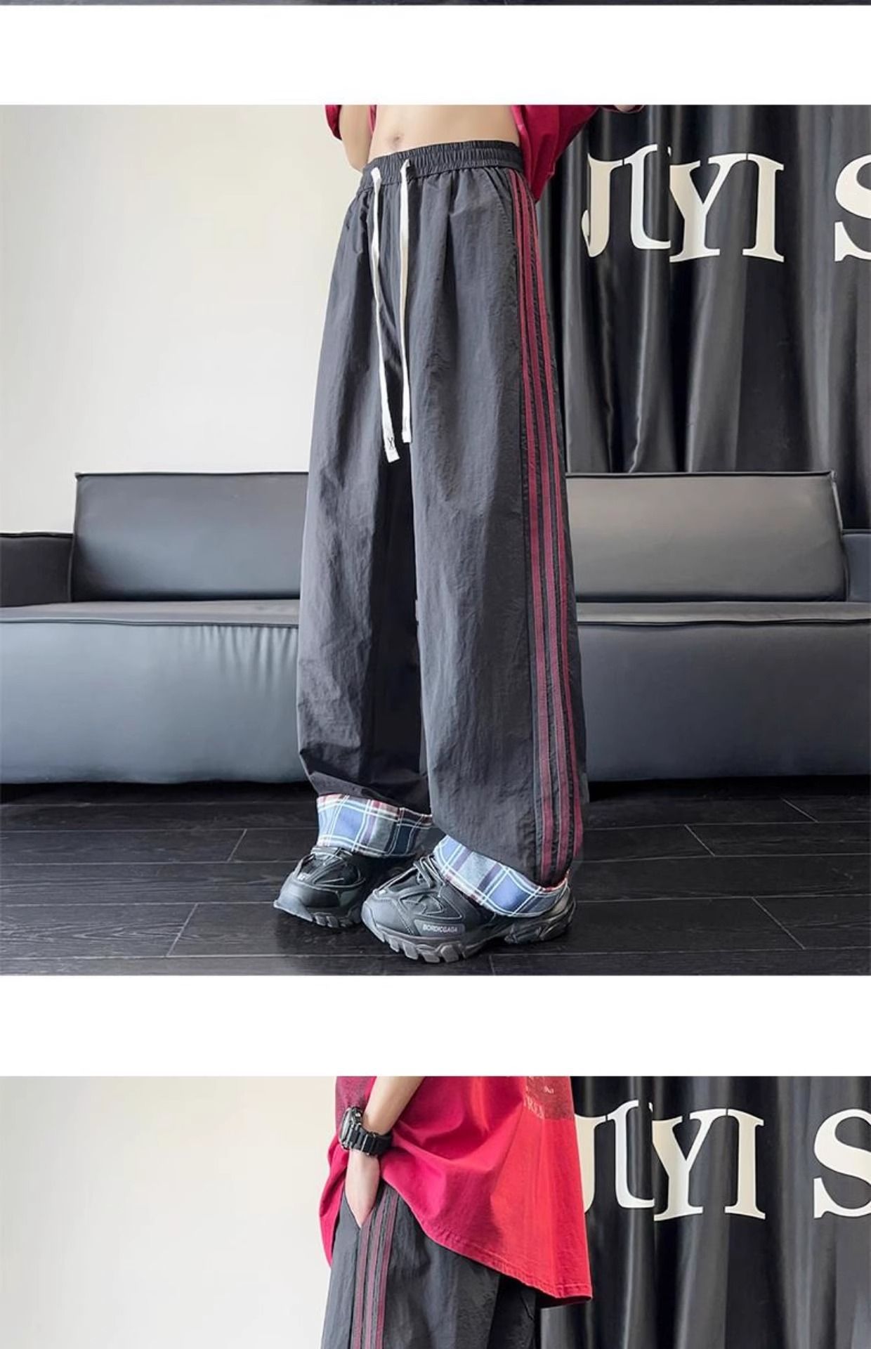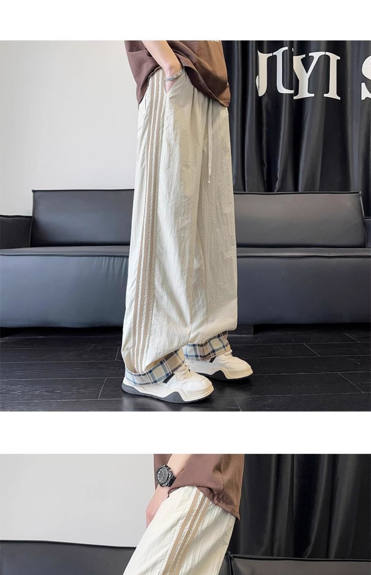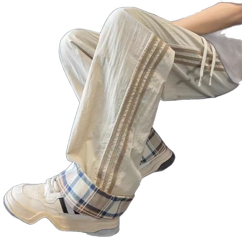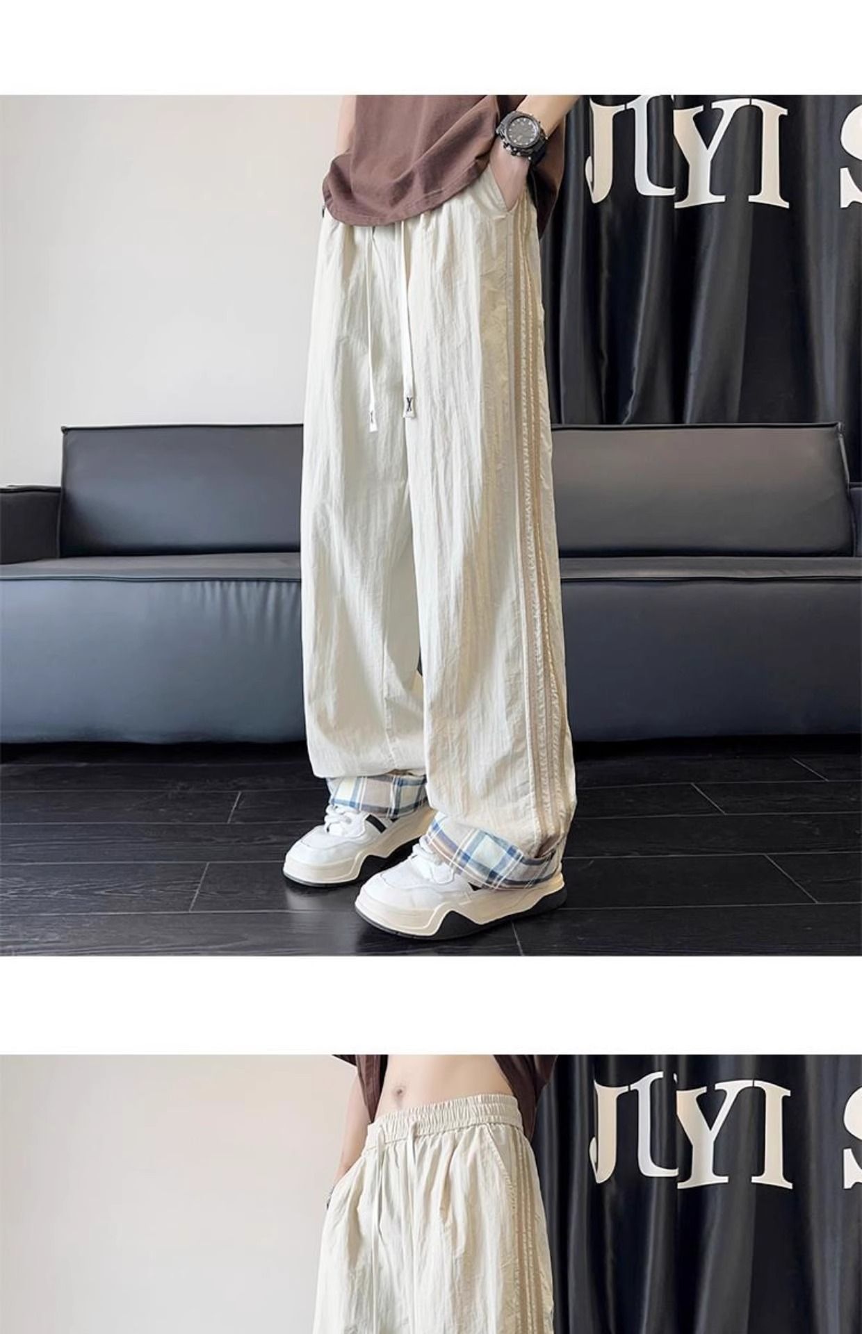 Мужские быстросохнущие спортивные брюки в полоску с закругленными краями в американском стиле, весенние модные американские повседневные свободные прямые широкие брюки.