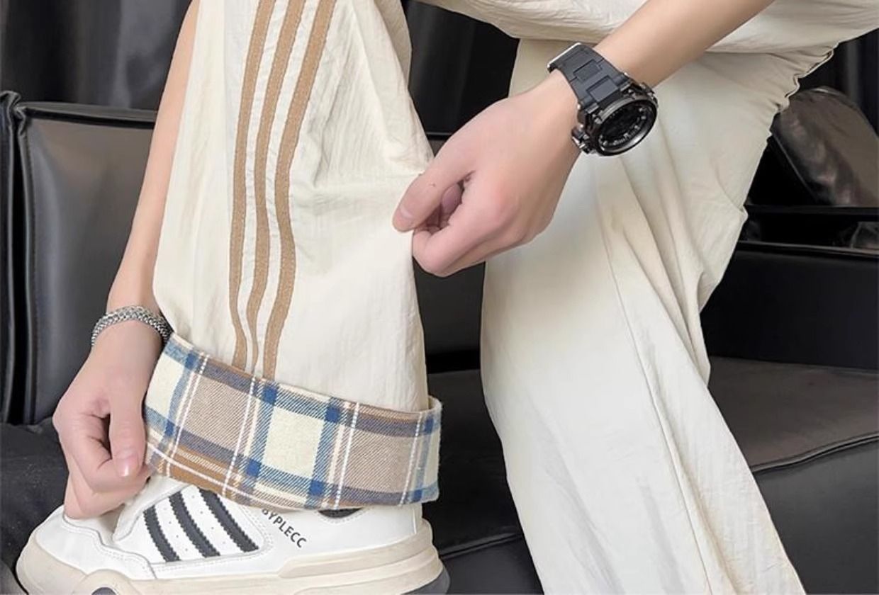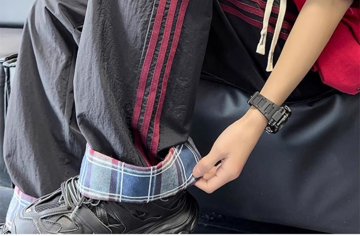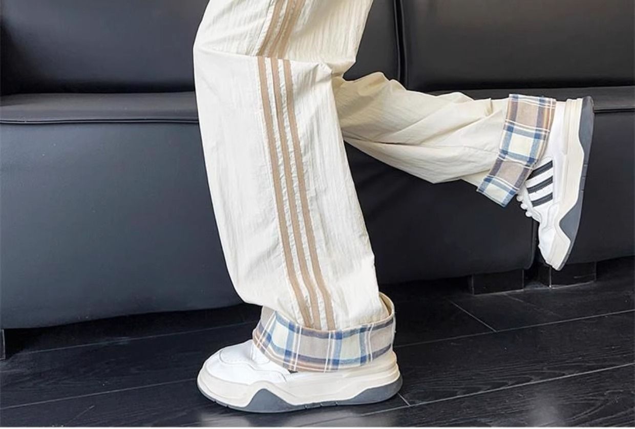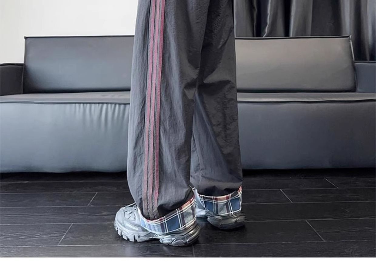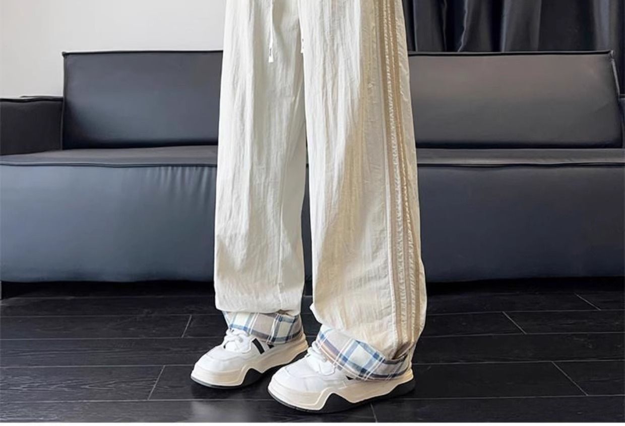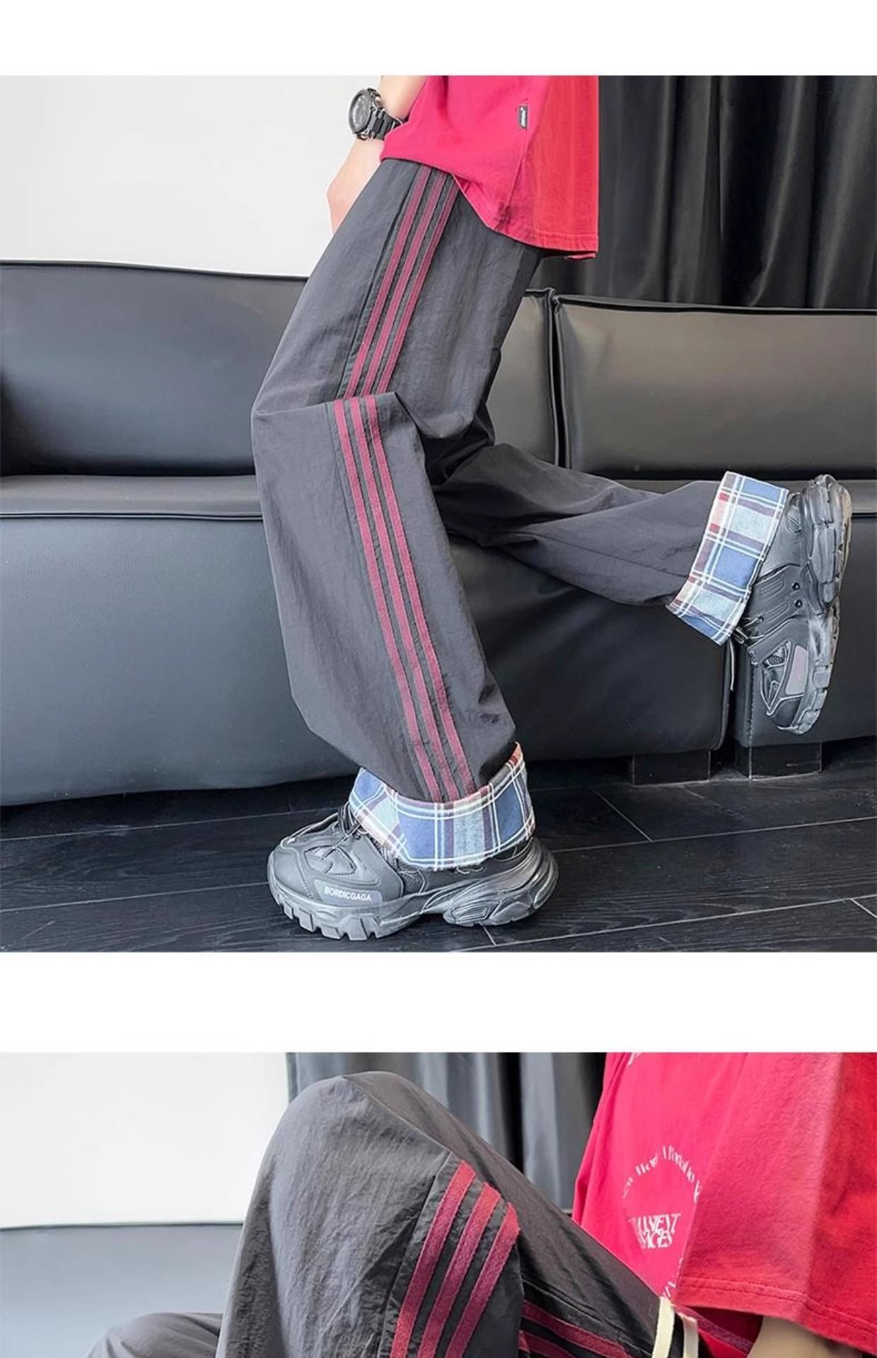 Мужские быстросохнущие спортивные брюки в полоску с закругленными краями в американском стиле, весенние модные американские повседневные свободные прямые широкие брюки.