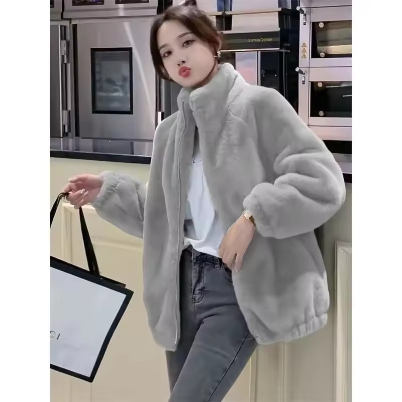 Женская куртка из кораллового флиса с высоким воротником на молнии, теплая двусторонняя бархатная толстовка, кардиган, большие размеры, повседневный уличный стиль