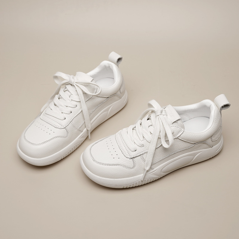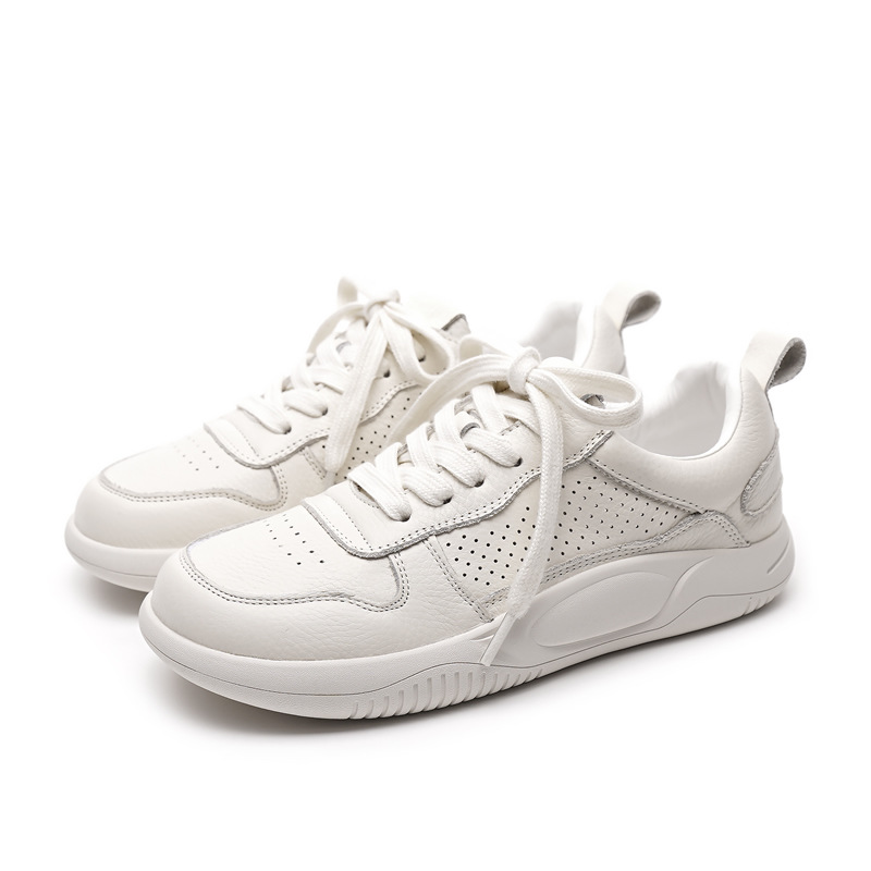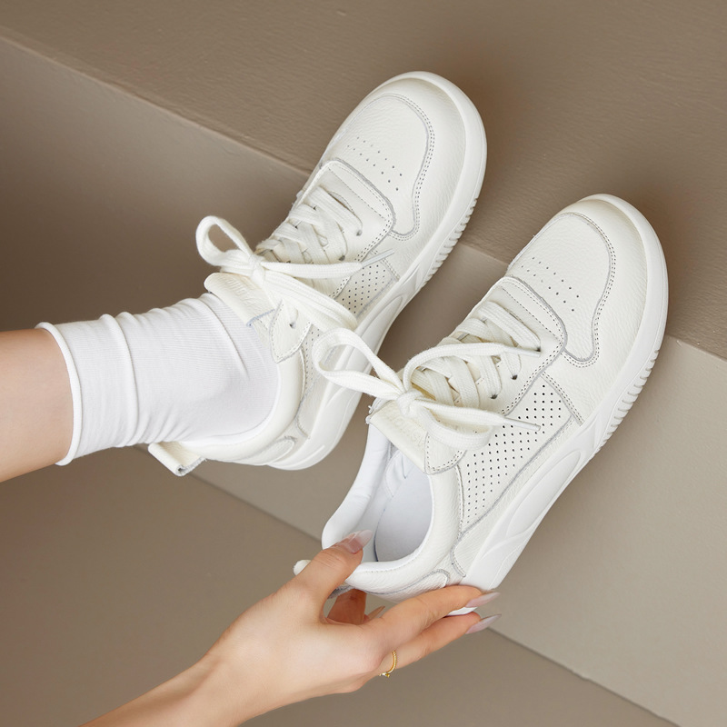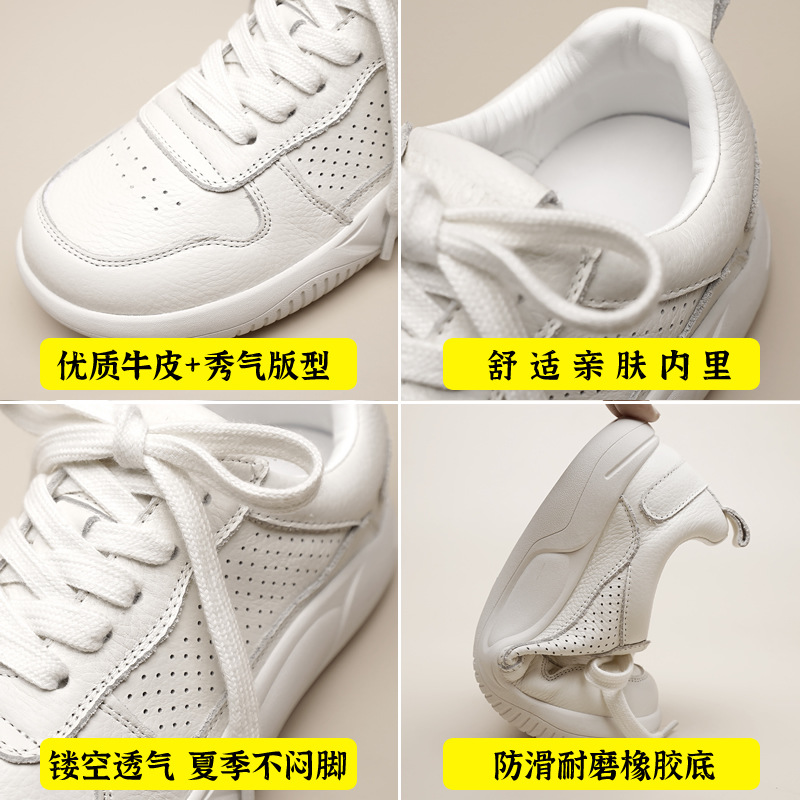 Женские белые кроссовки из натуральной кожи с сеткой, новинка весна-лето 2025, на толстой подошве, дышащие, спортивные, универсальные, популярные, с мягкой подошвой
