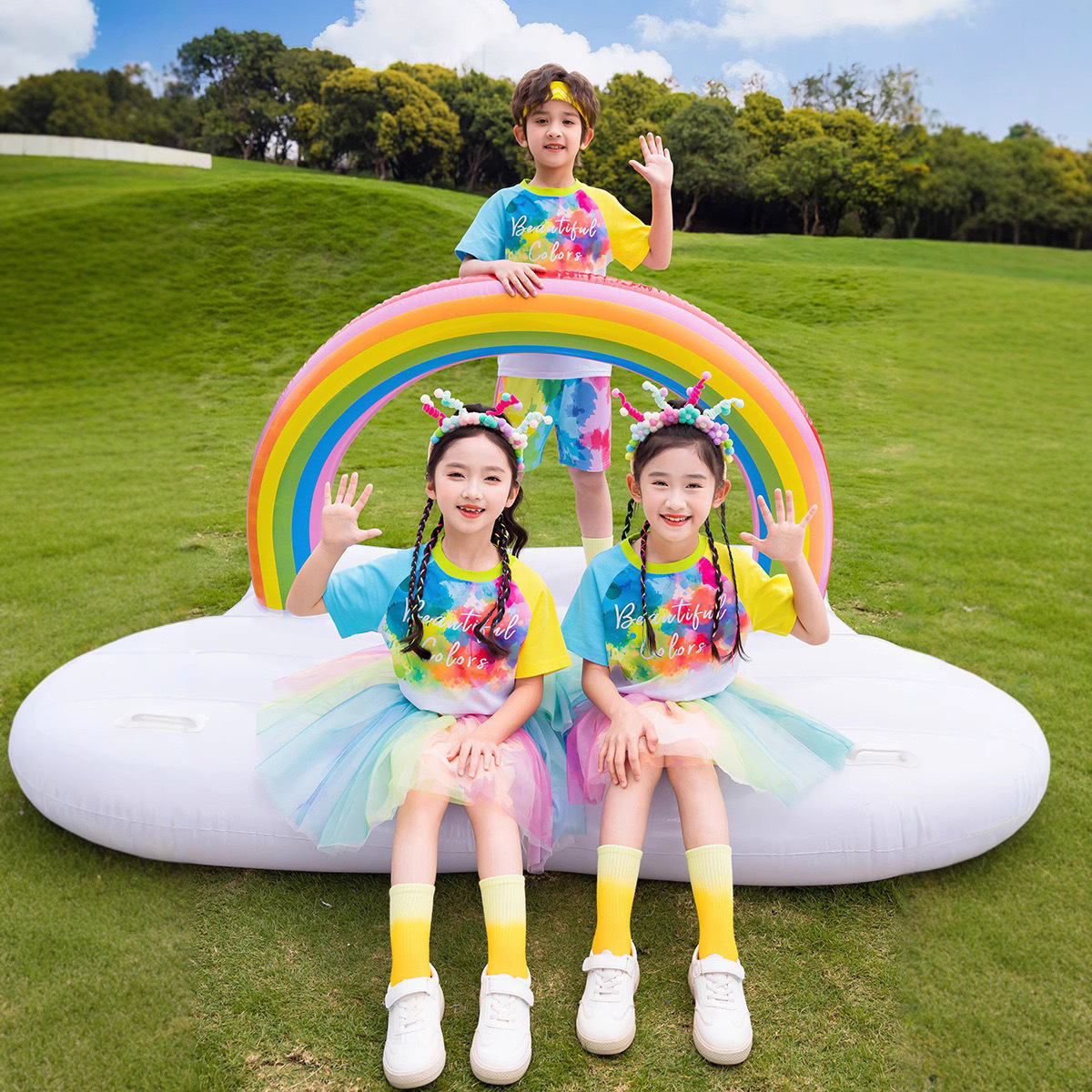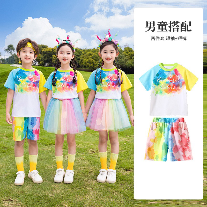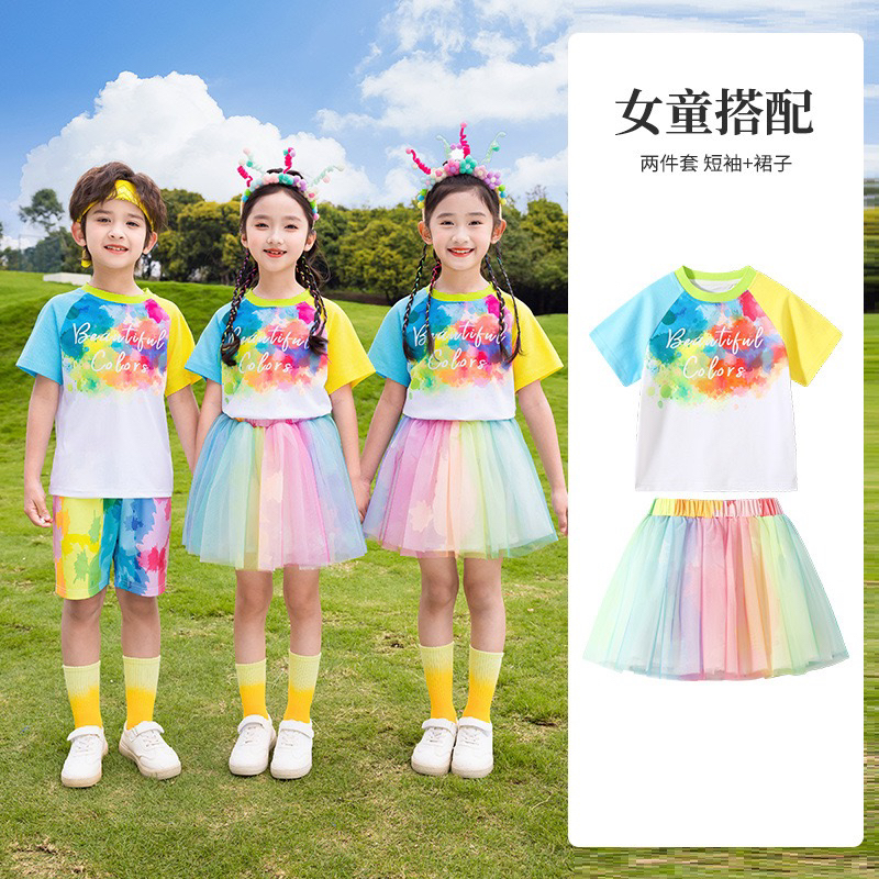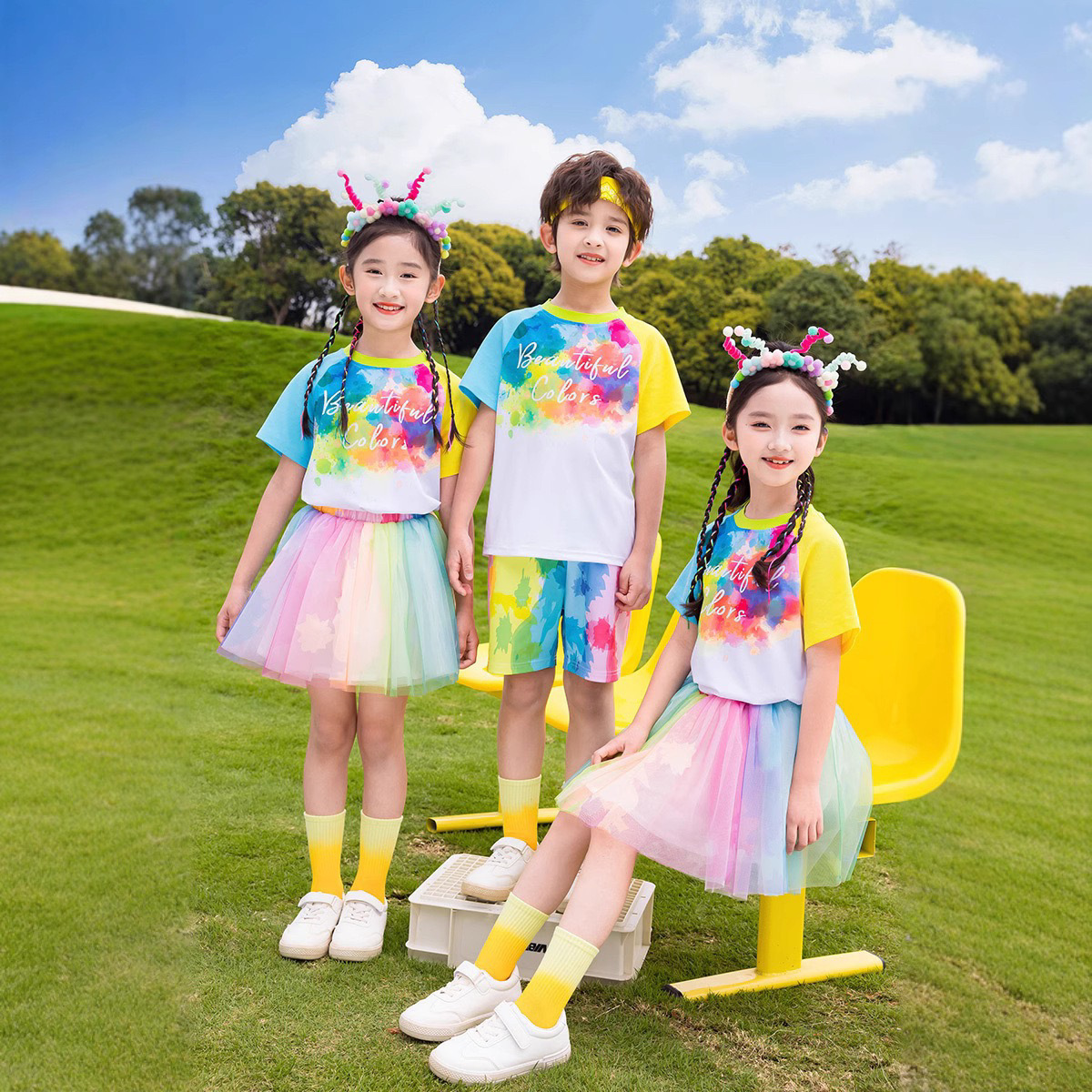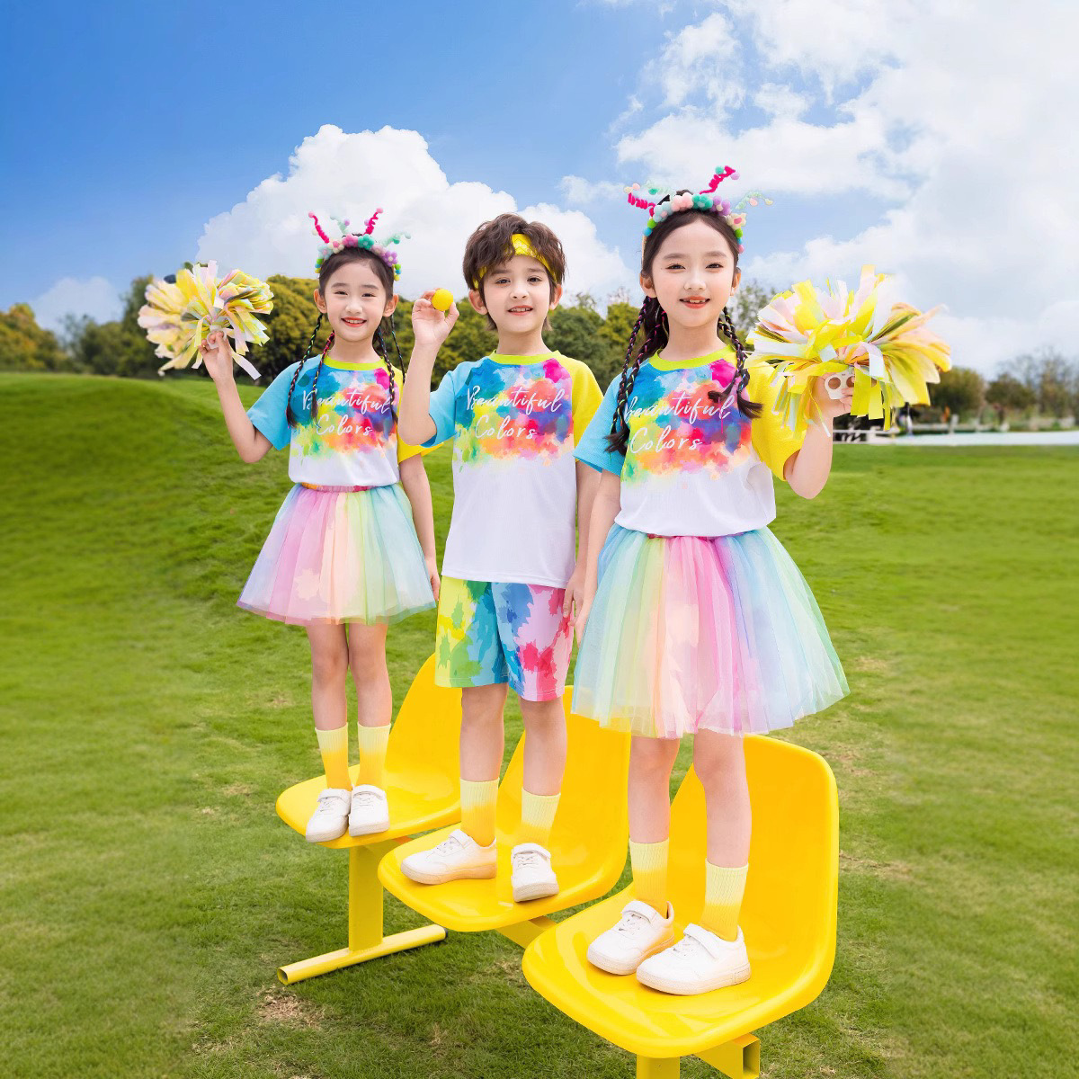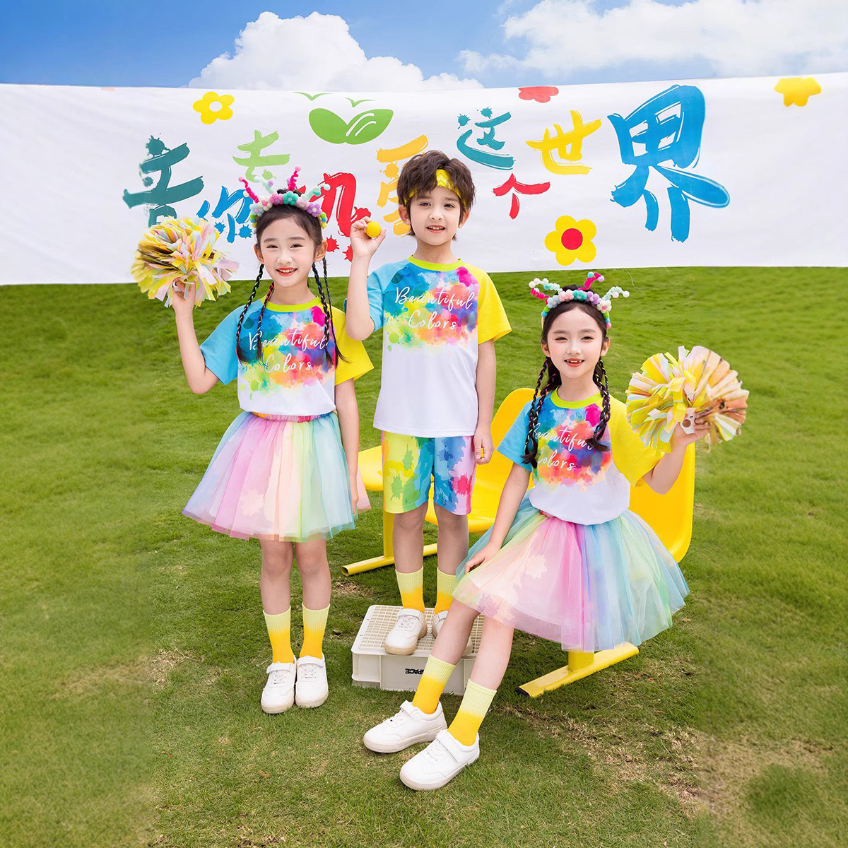 Летние костюмы для выступлений в детском саду, черлидинг, 1 июня, хор, спортивные встречи, костюмы для выступлений ярких цветов, униформа для пляжных занятий