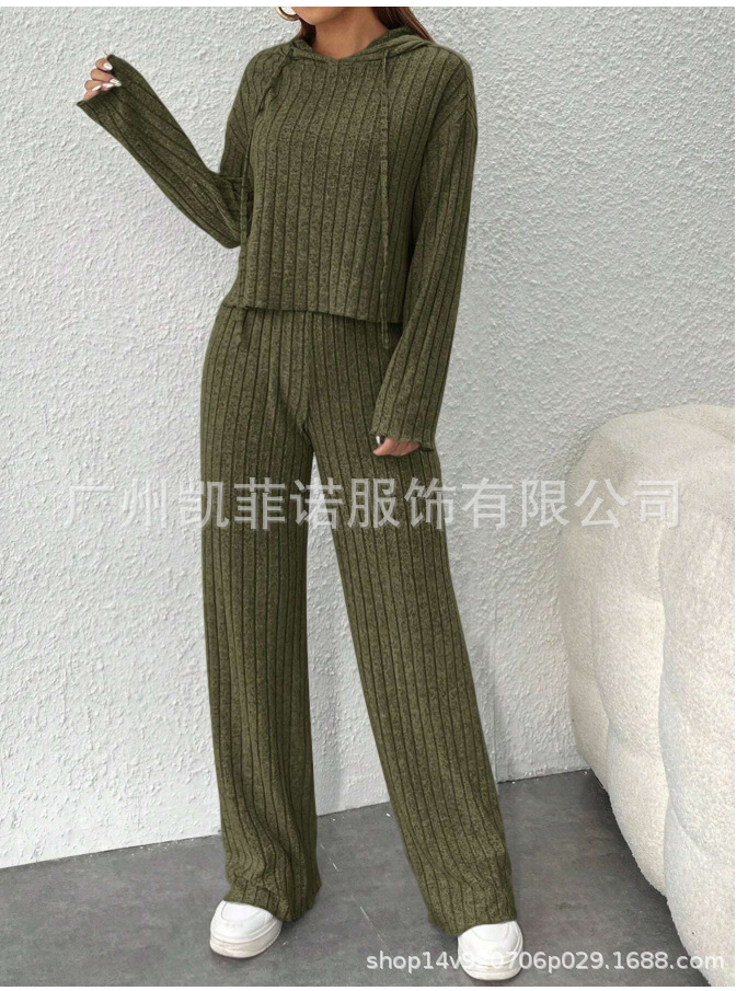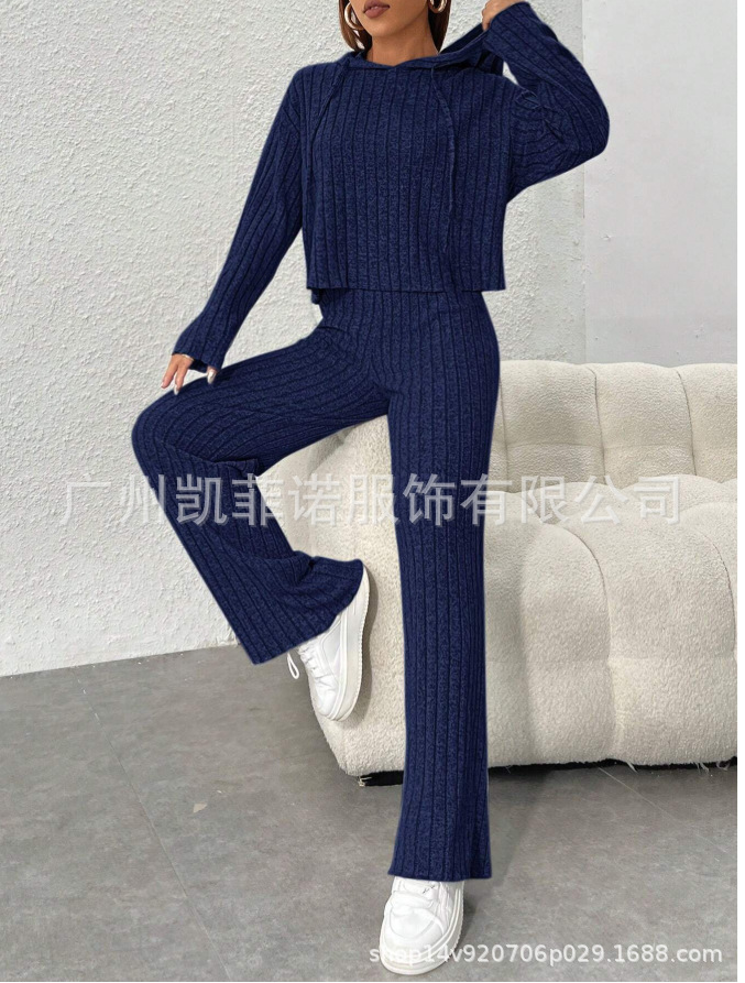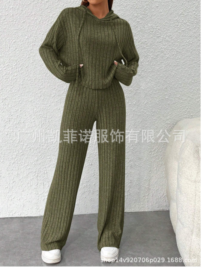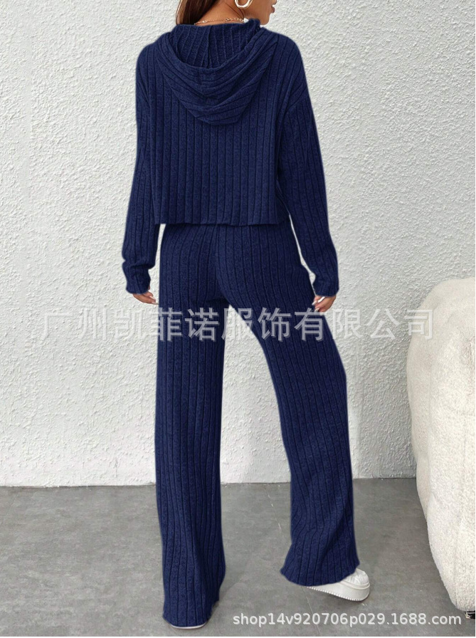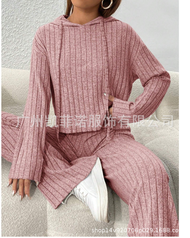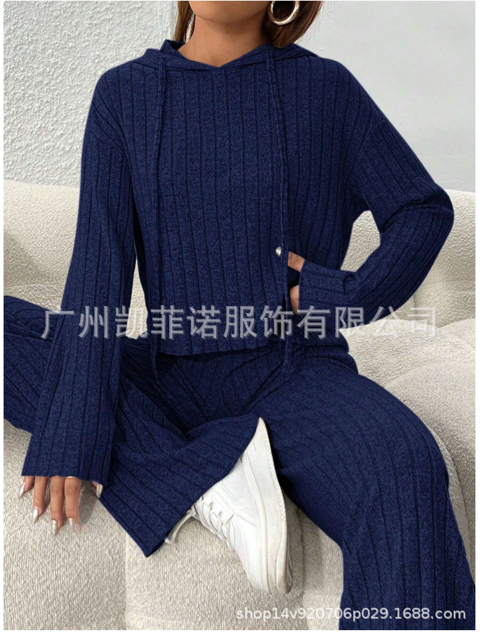 Европейская и американская осень и зима 2023, трансграничный повседневный вязаный костюм с длинными рукавами, женская экспортная толстовка с капюшоном, свободные брюки, комплект из двух предметов