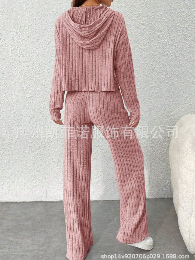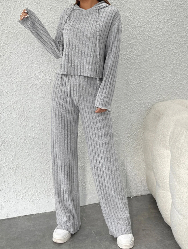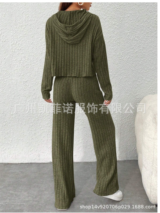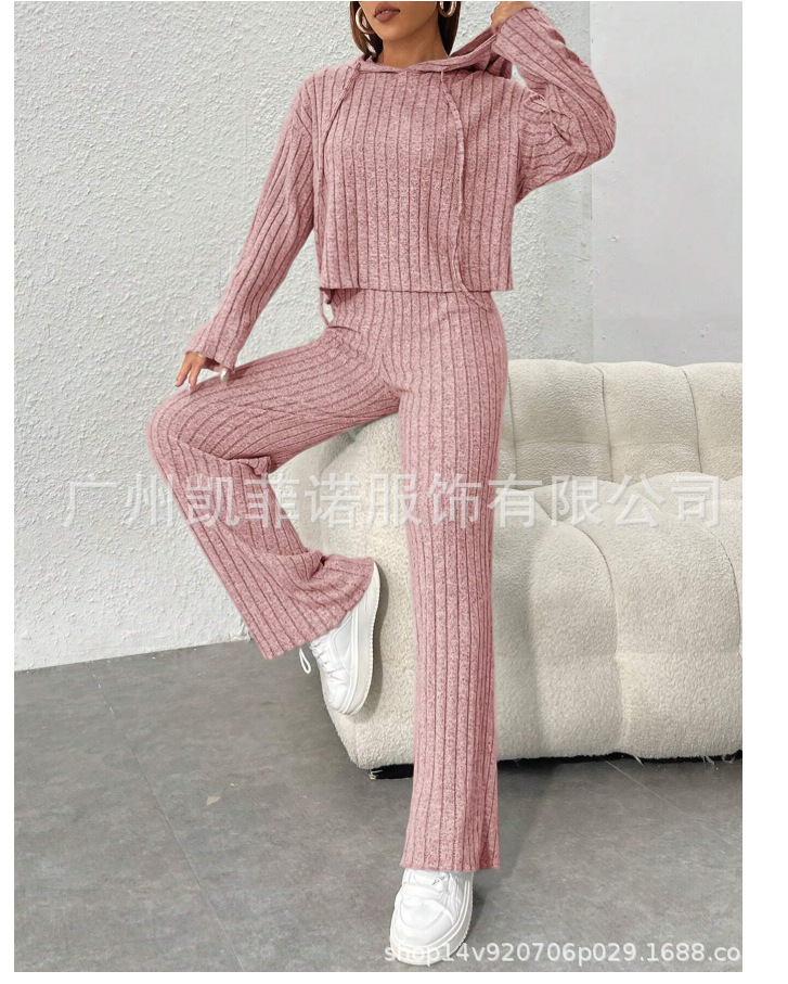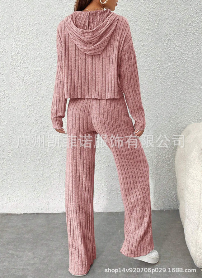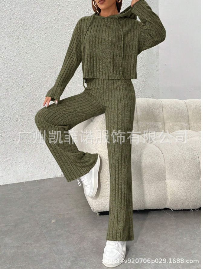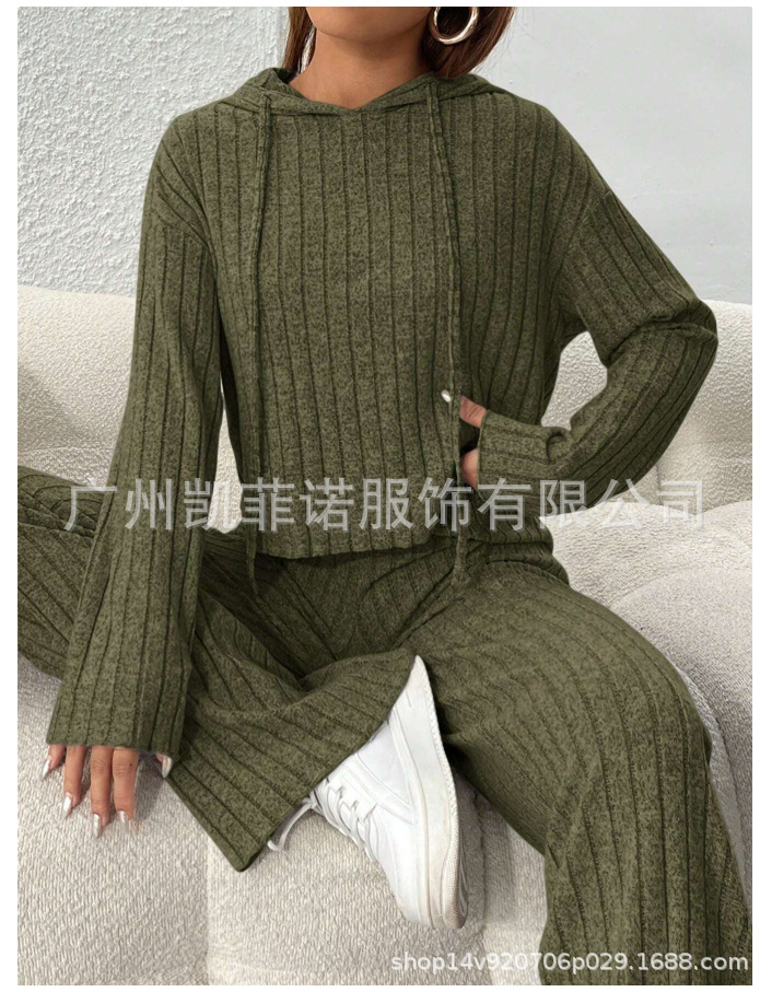Европейская и американская осень и зима 2023, трансграничный повседневный вязаный костюм с длинными рукавами, женская экспортная толстовка с капюшоном, свободные брюки, комплект из двух предметов