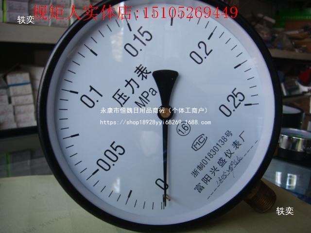 Y 普通压力表 型号规格Y150 表盘直径:150MM 接口大小:M20*1.5 2.5级(非标螺纹可) 压力表是用于测量对和合金不起腐蚀作用的气体、液体介质的正负压力,测量无爆炸、不结晶、不凝固及对合金无腐蚀. 使用环境条件:-40~70℃,相对湿度不大于85%温度影响:使用温度偏离20±5℃,不大于0.4%10℃
