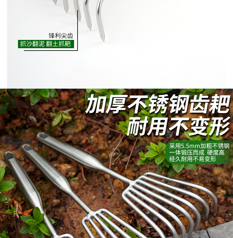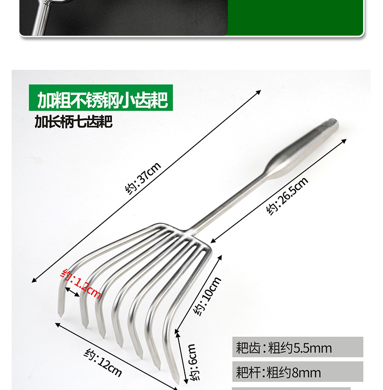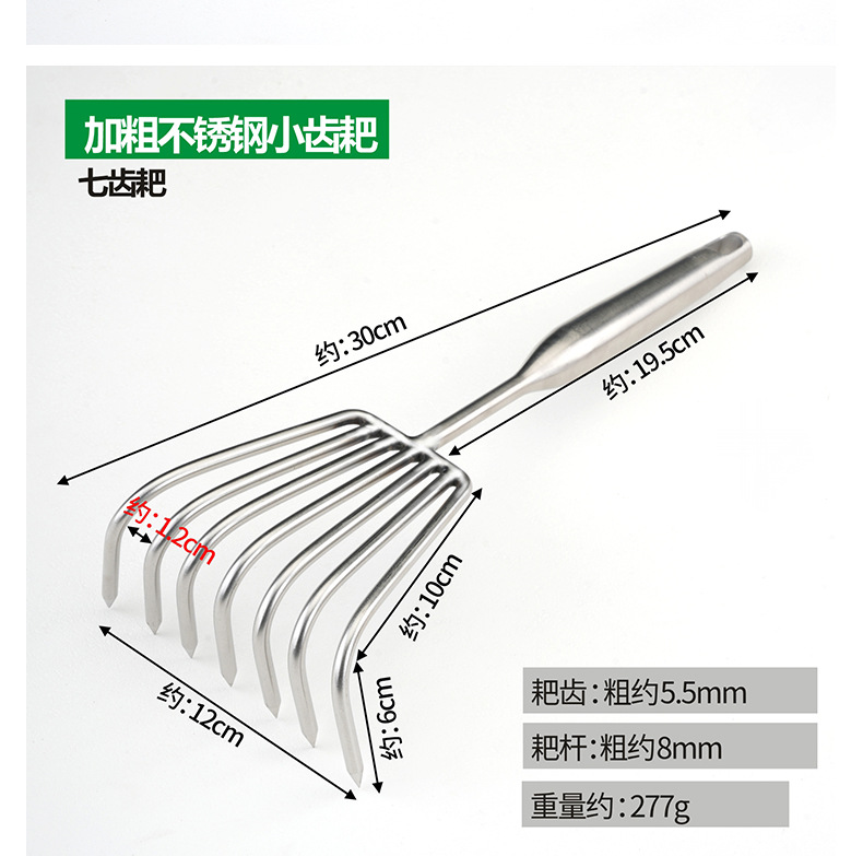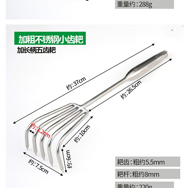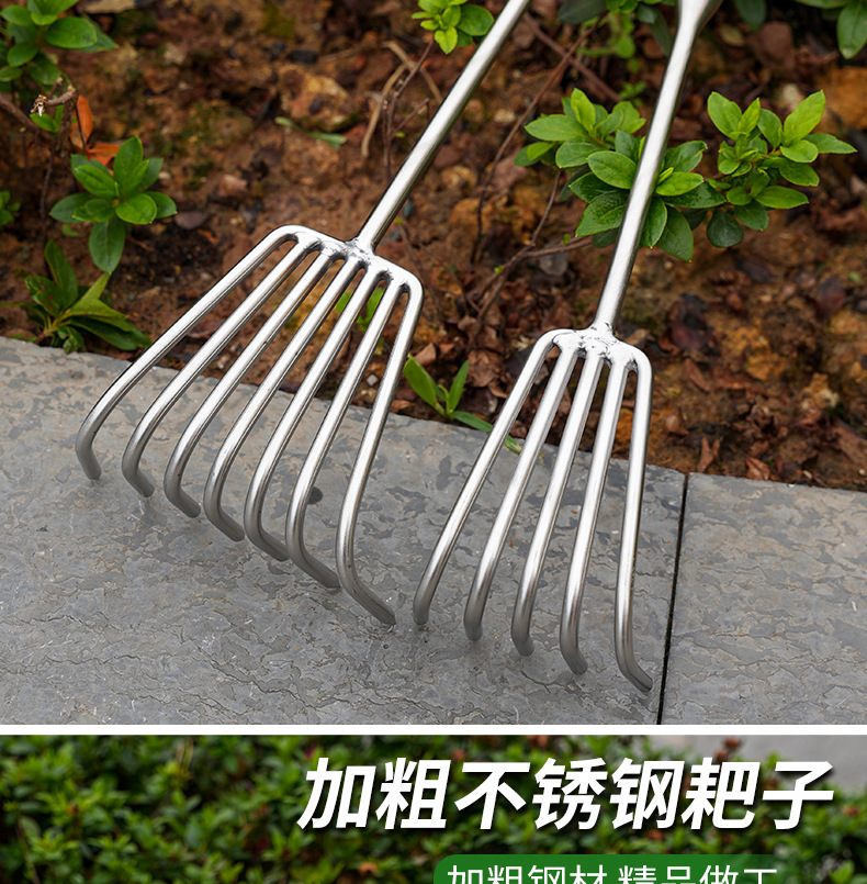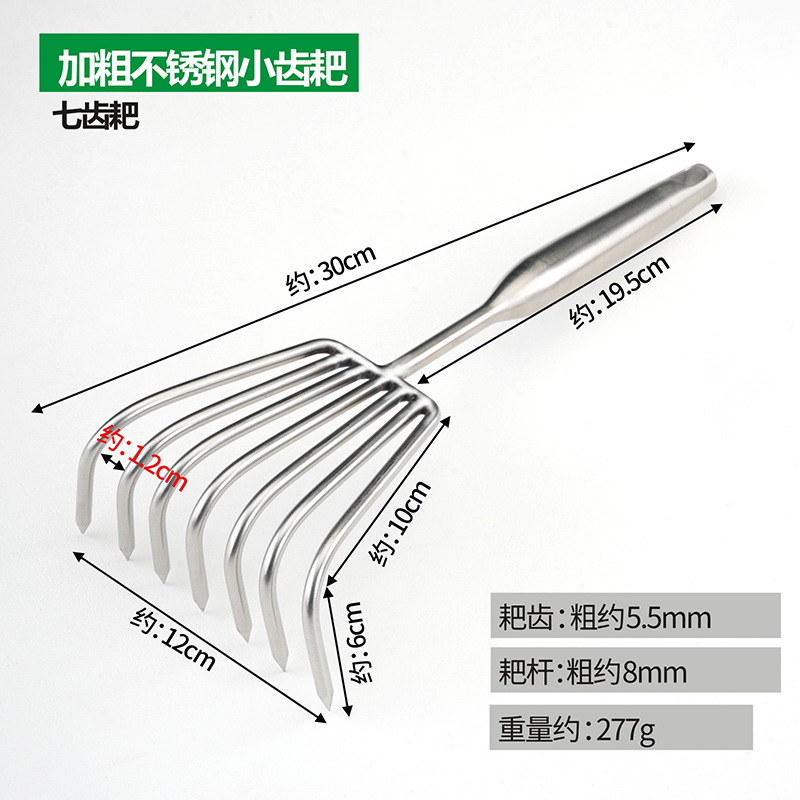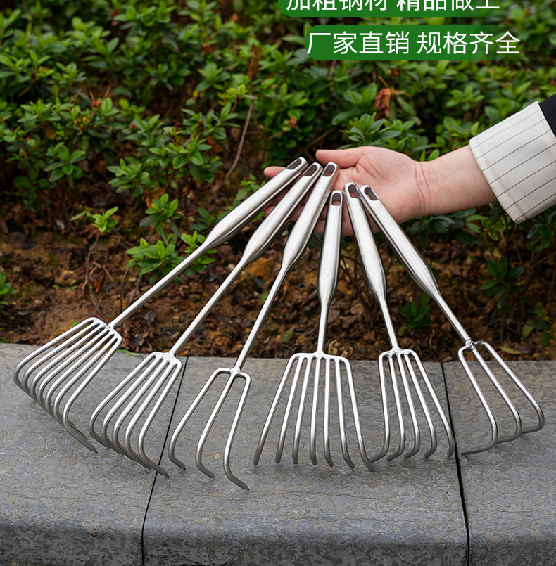 Рыхлитель с тремя зубьями из нержавеющей стали с утолщенной и удлиненной ручкой.; Рыхлитель с пятью зубьями из нержавеющей стали с утолщенной и удлиненной ручкой.; Смелые грабли из нержавеющей стали с семью зубьями и длинной ручкой.; Смелые грабли с тремя зубьями из нержавеющей стали.; Смелые грабли из нержавеющей стали с пятью зубьями.; Смелые грабли из нержавеющей стали с семью зубьями.