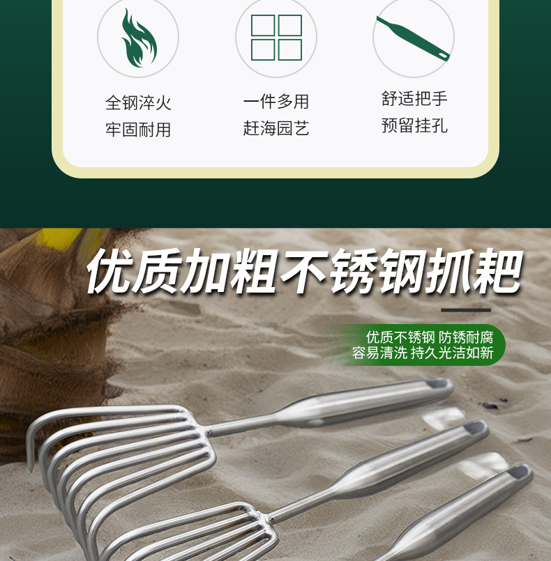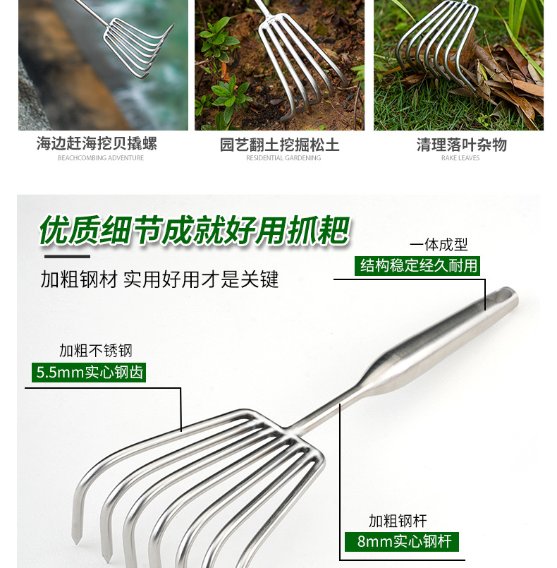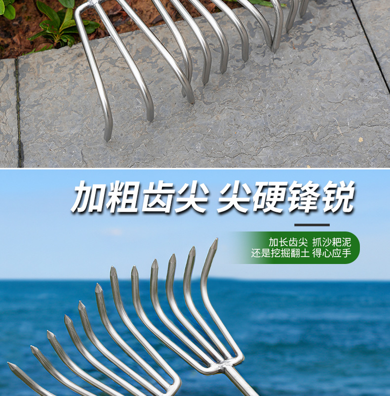 Оптовая продажа стальных граблей для пляжа, граблей для цветов, инструментов для копания раковин, устриц, крабов и раков для пляжного сбора.