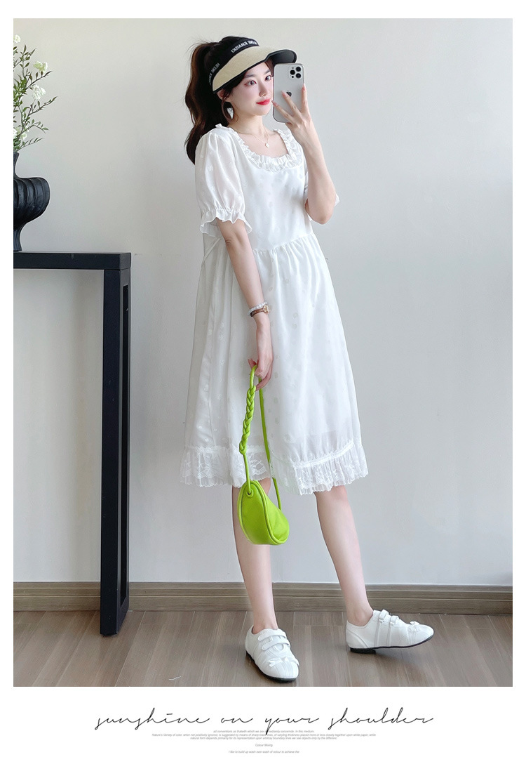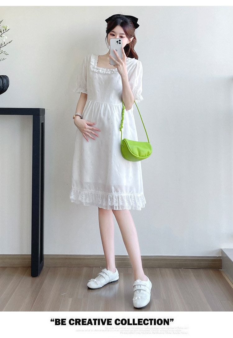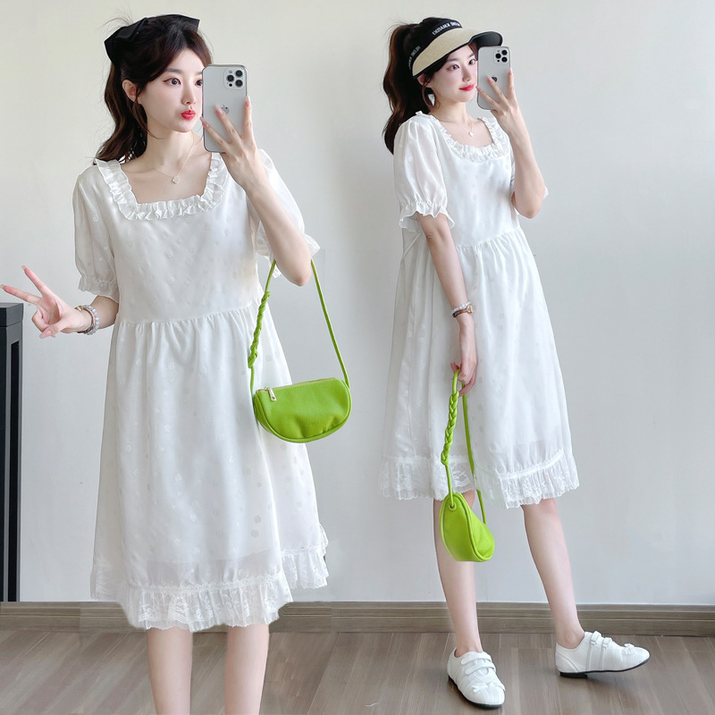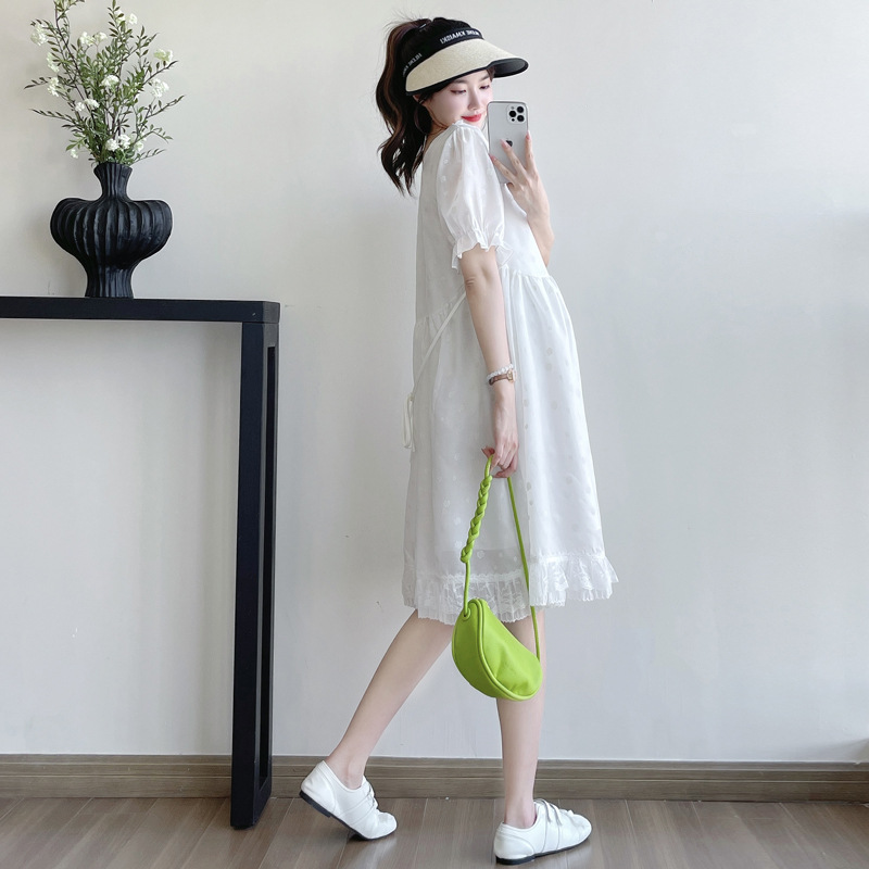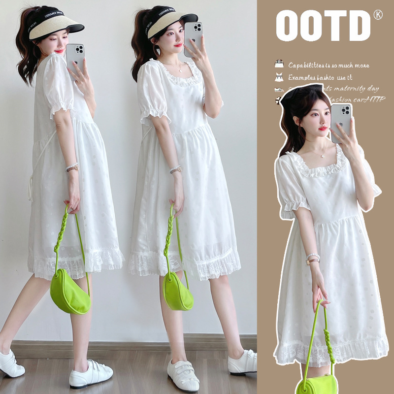 Одежда для беременных, летнее новое стильное маленькое свежее свободное модное платье для беременных, простое милое утягивающее платье для беременных в корейском стиле