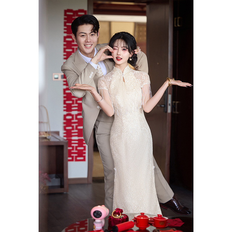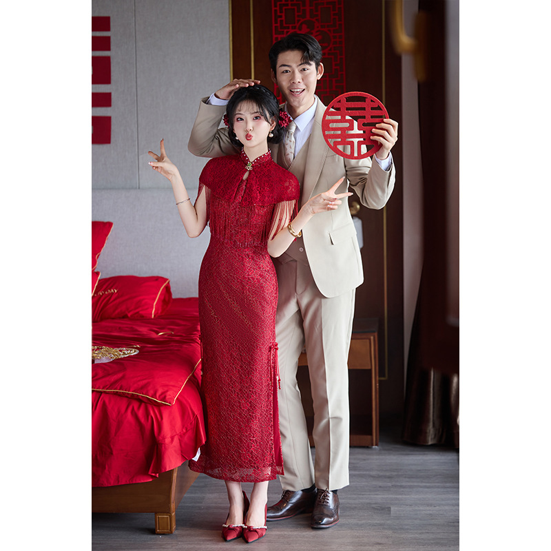 Бордовое элитное обручальное платье Cheongsam, новое платье для тостов в китайском стиле, домашняя повседневная одежда для невесты на День Благодарения