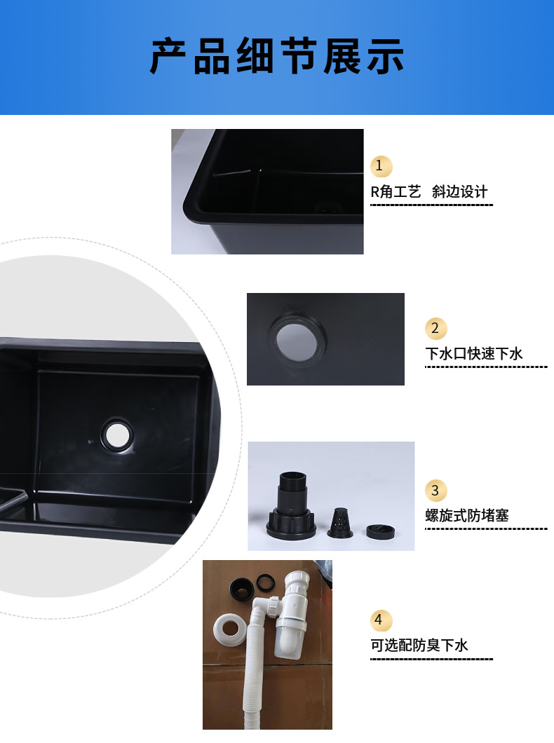 Лабораторная мойка из черного пластика с одним отверстием, для химической лаборатории, больницы, с защитой от перелива