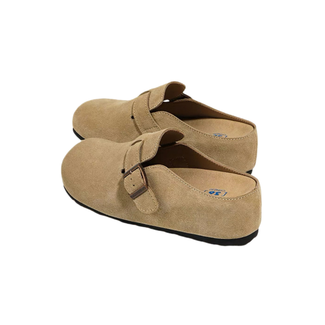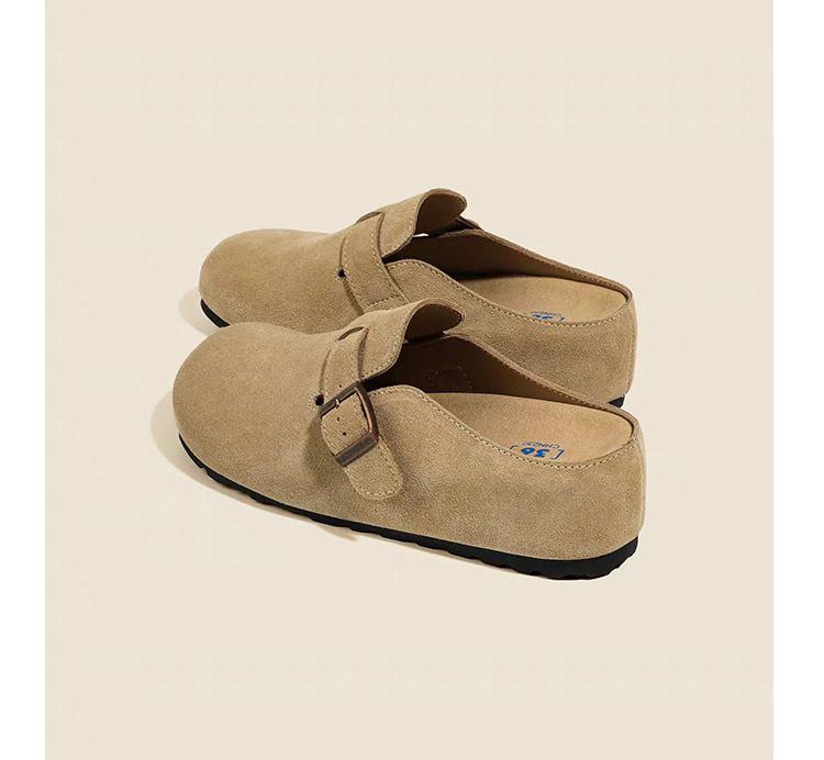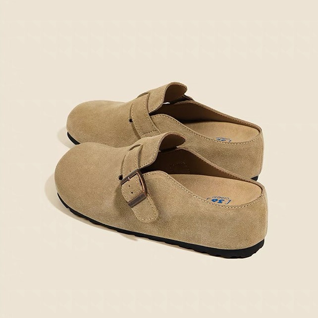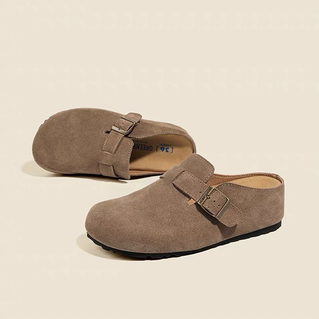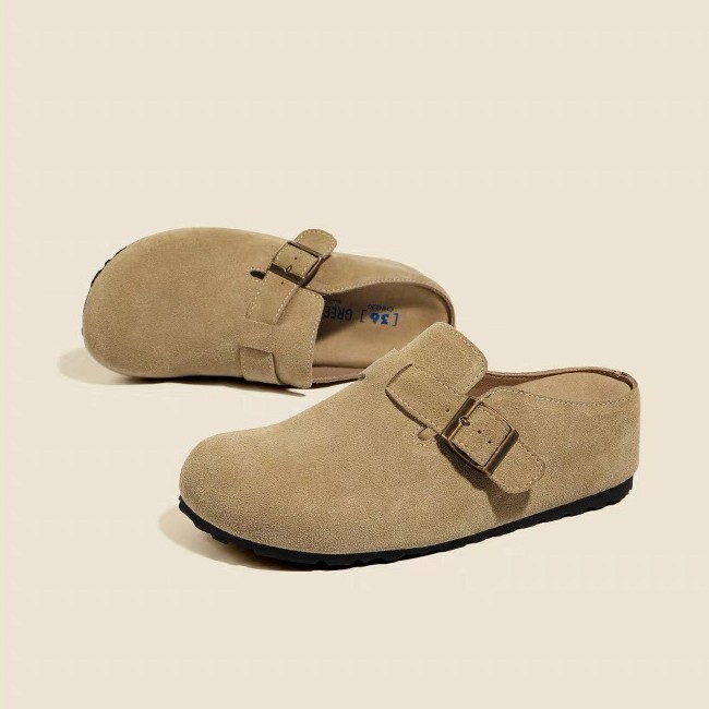 Натуральная кожа ~ женские туфли Birkenstock на толстой подошве с внутренней подкладкой, новинка 2025 года, универсальные полутапочки Birkenstock с носком для женщин, которые можно носить на улице