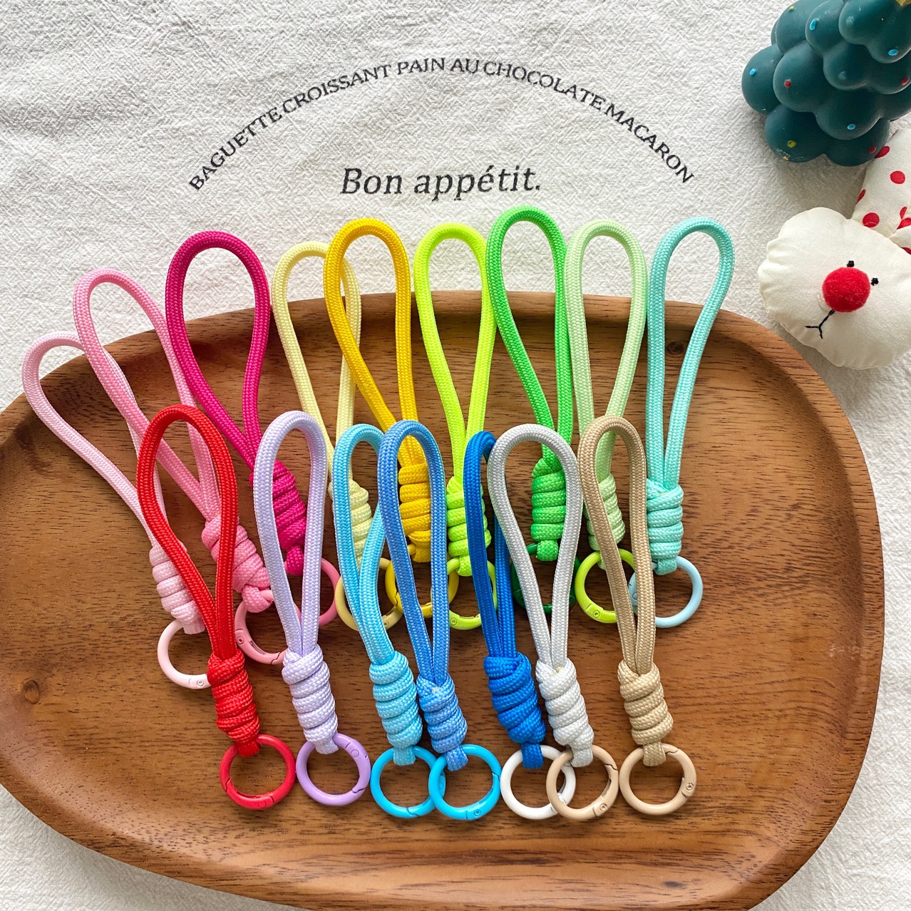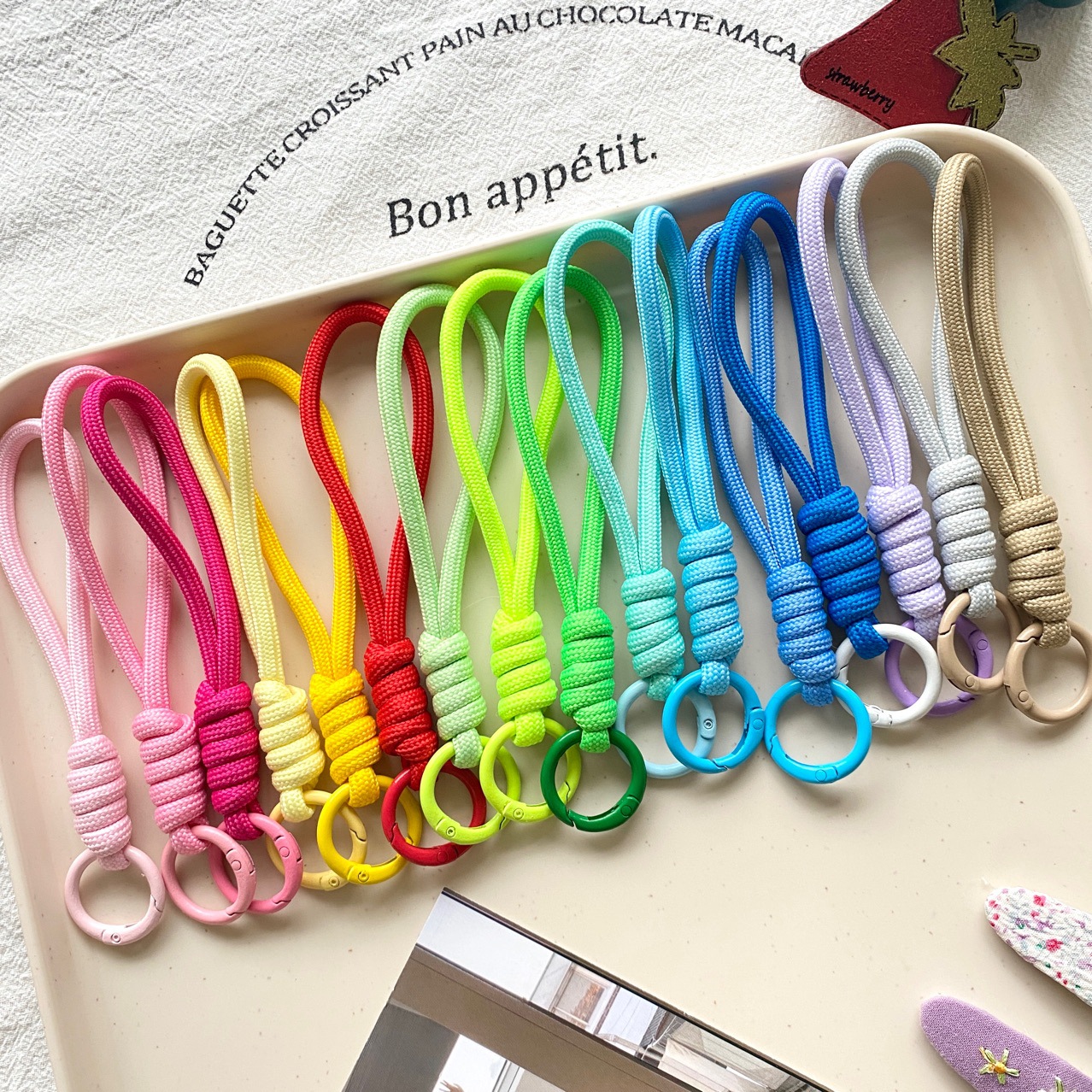 Красочный плетеный ремешок для мобильного телефона с узлами, креативный короткий ремешок на запястье, чехол для мобильного телефона, кольцо для ключей, съемный, анти-потерянный