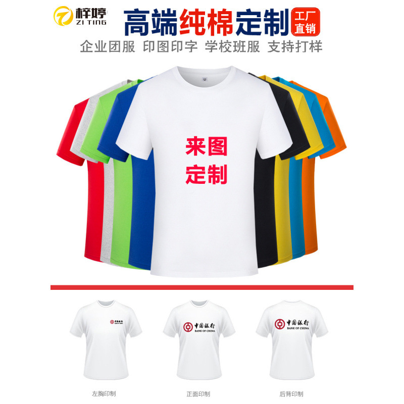 Рекламная рубашка, футболка из чистого хлопка, рабочая одежда на заказ, круглый вырез, с короткими рукавами, культурная рубашка, летняя классная форма, групповая форма с принтом логотипа