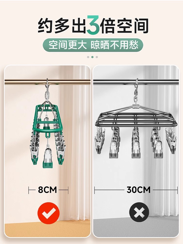 Сушилка для носков с несколькими зажимами, бытовой балконный бесшовный многофункциональный ветрозащитный зажим для нижнего белья из нержавеющей стали.