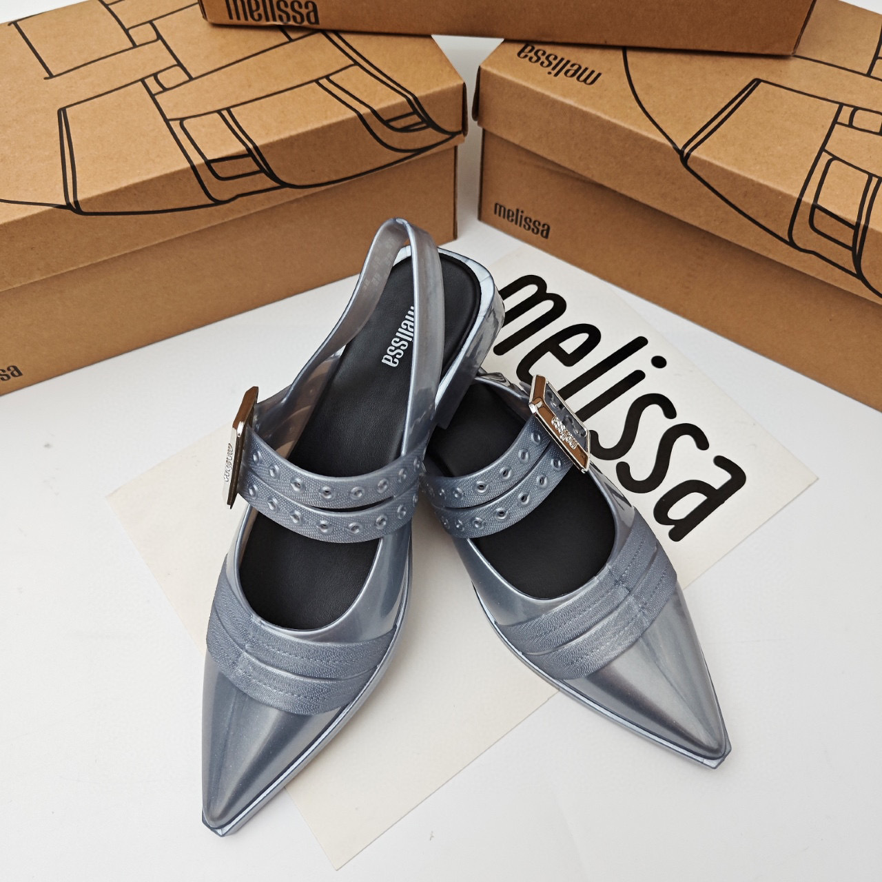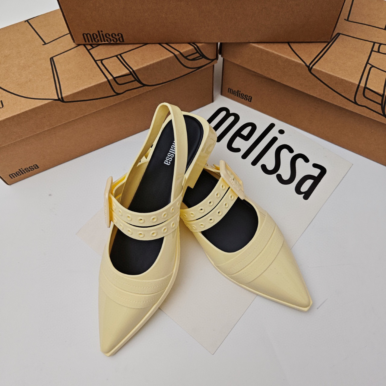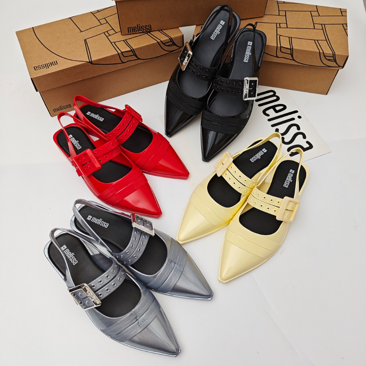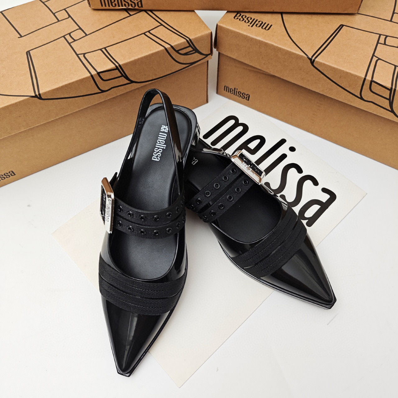 25 лет новинки Melissa, женская обувь, босоножки на среднем каблуке с острым носком, женская обувь Melissa с двойной пряжкой сзади, ароматная обувь