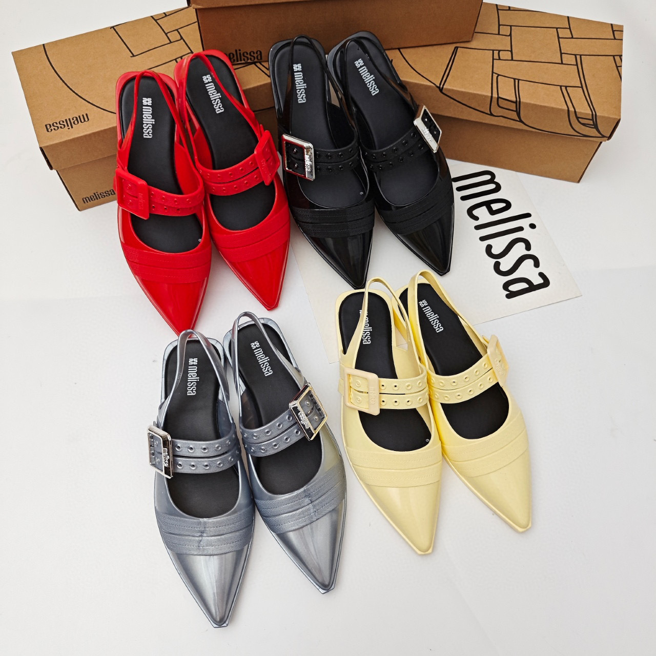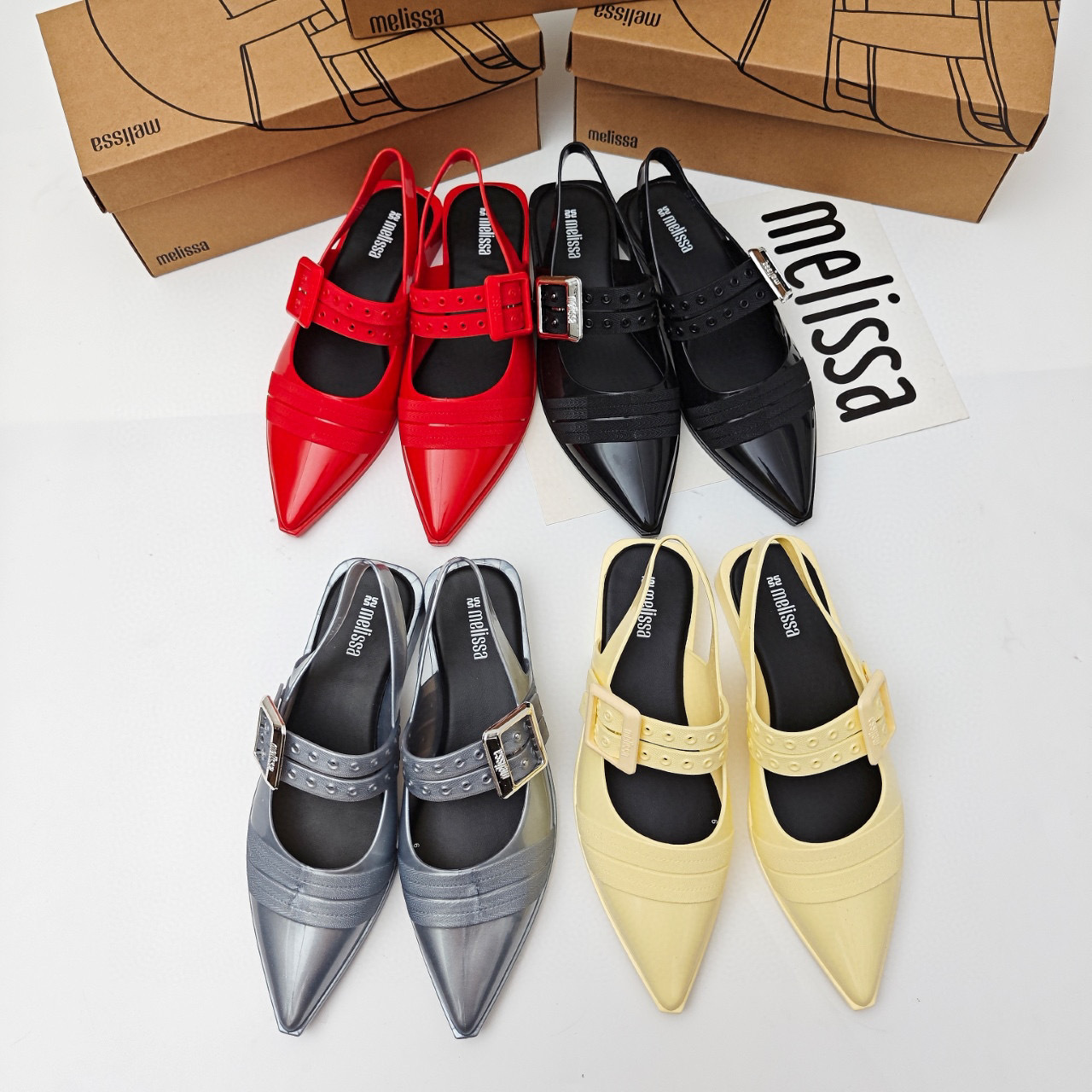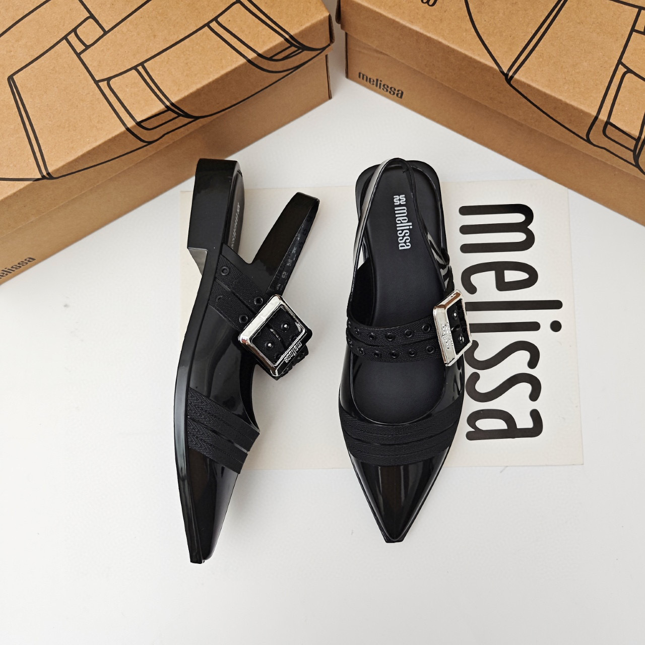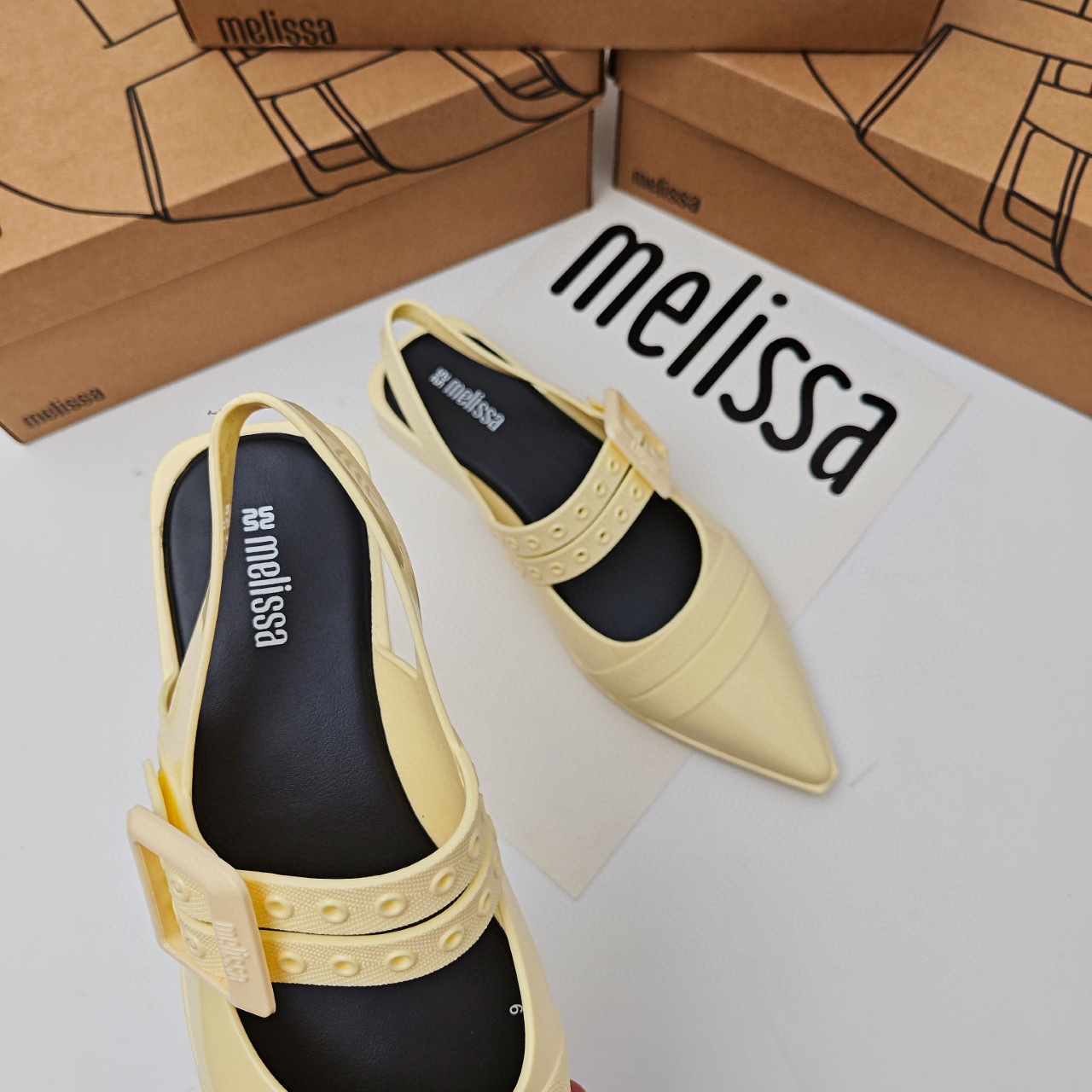 25 лет новинки Melissa, женская обувь, босоножки на среднем каблуке с острым носком, женская обувь Melissa с двойной пряжкой сзади, ароматная обувь