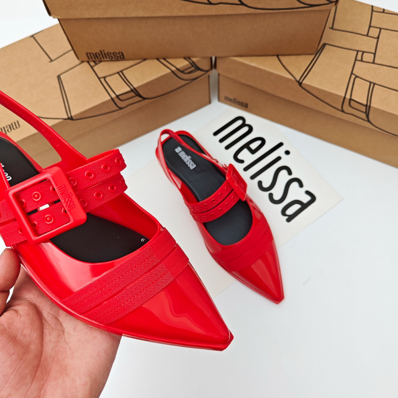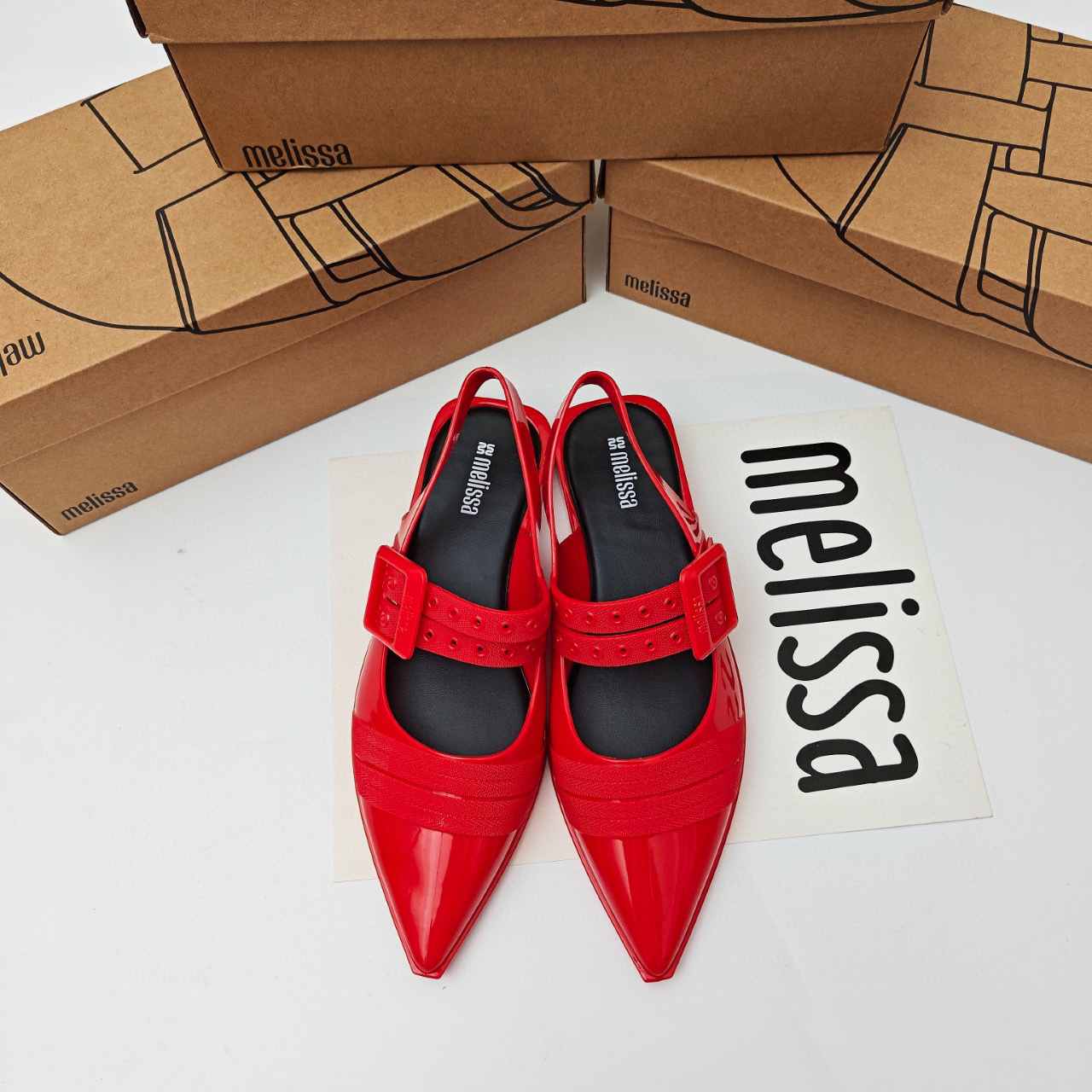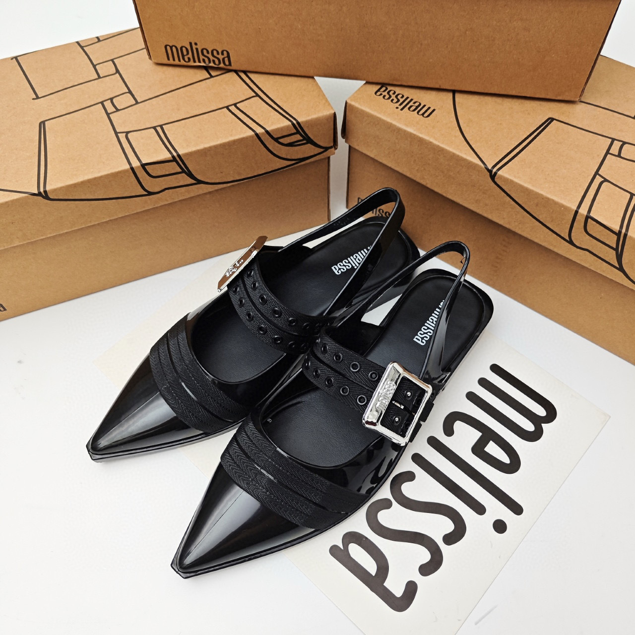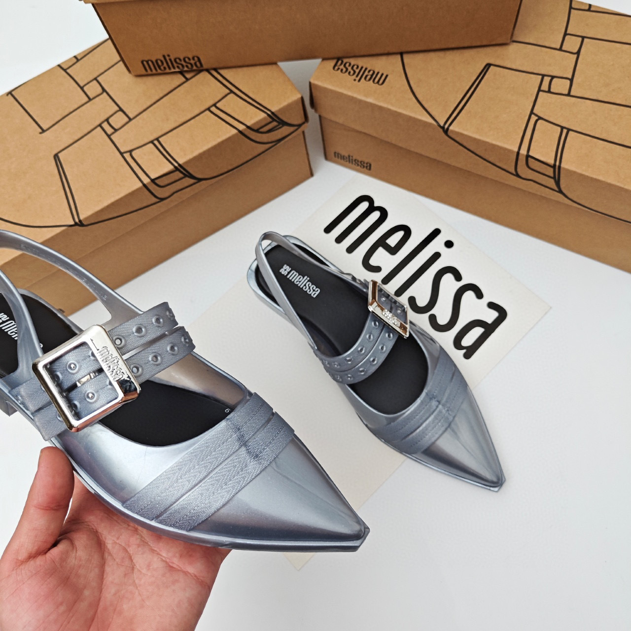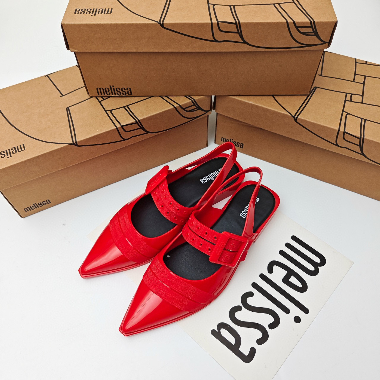 25 лет новинки Melissa, женская обувь, босоножки на среднем каблуке с острым носком, женская обувь Melissa с двойной пряжкой сзади, ароматная обувь