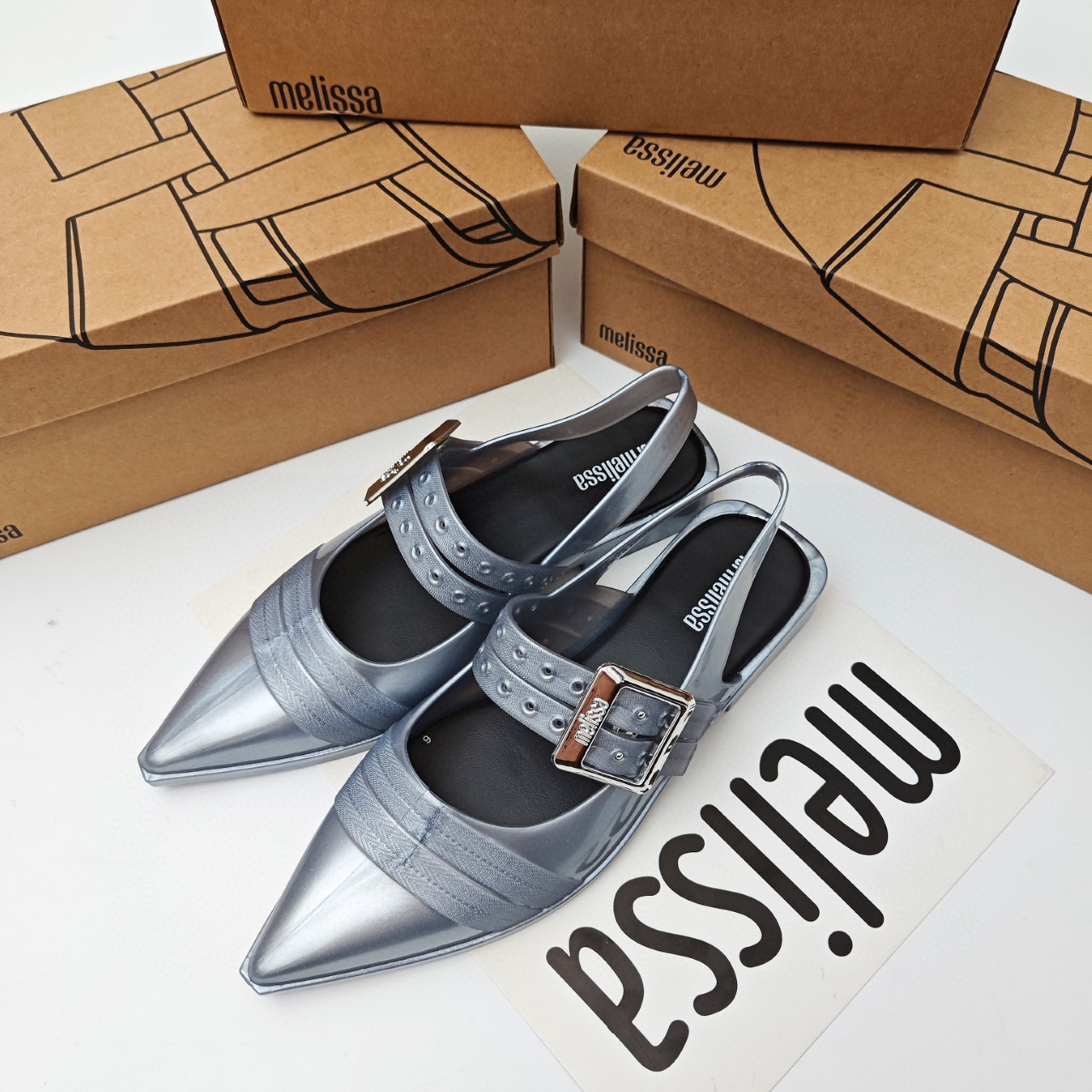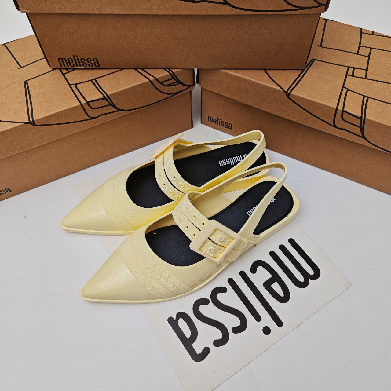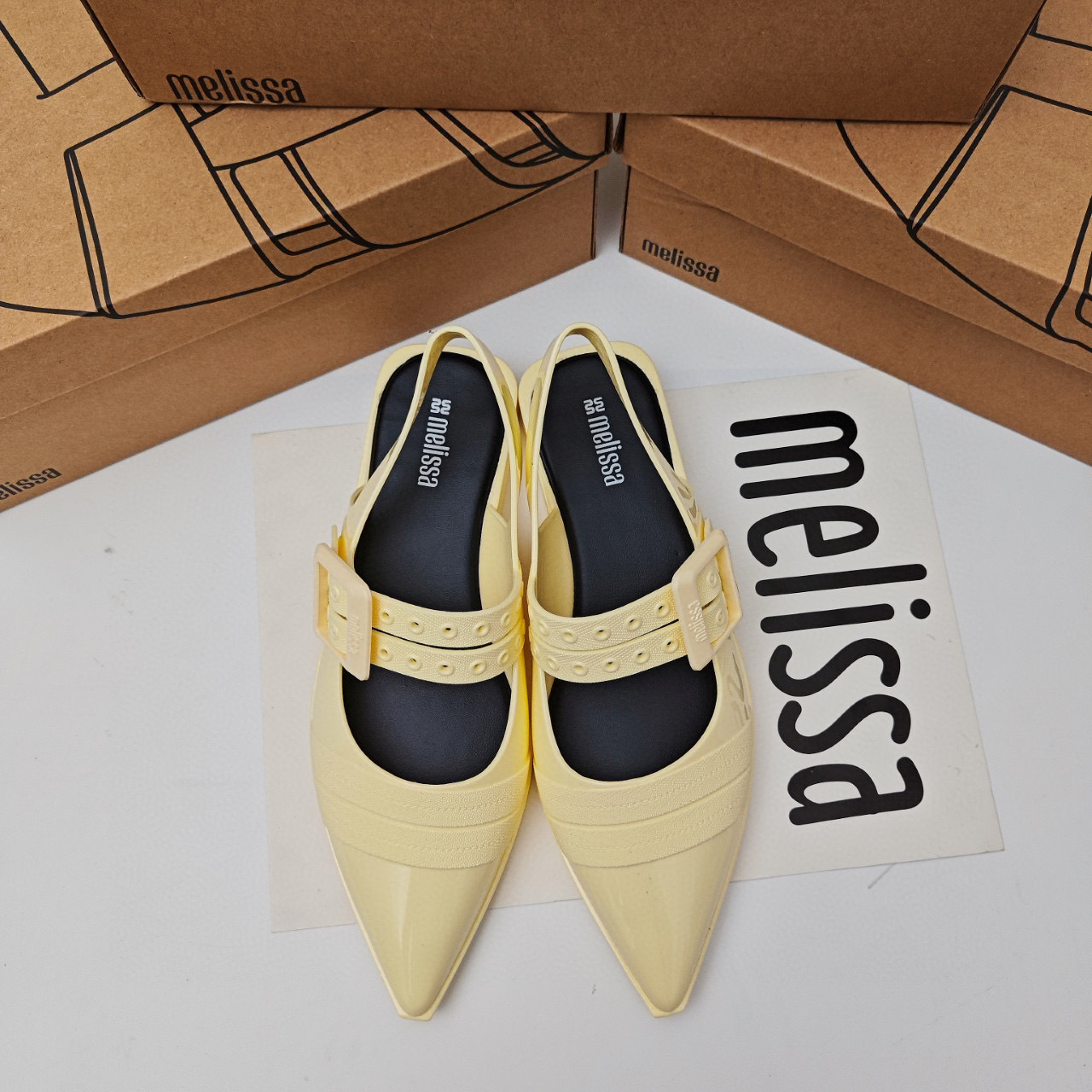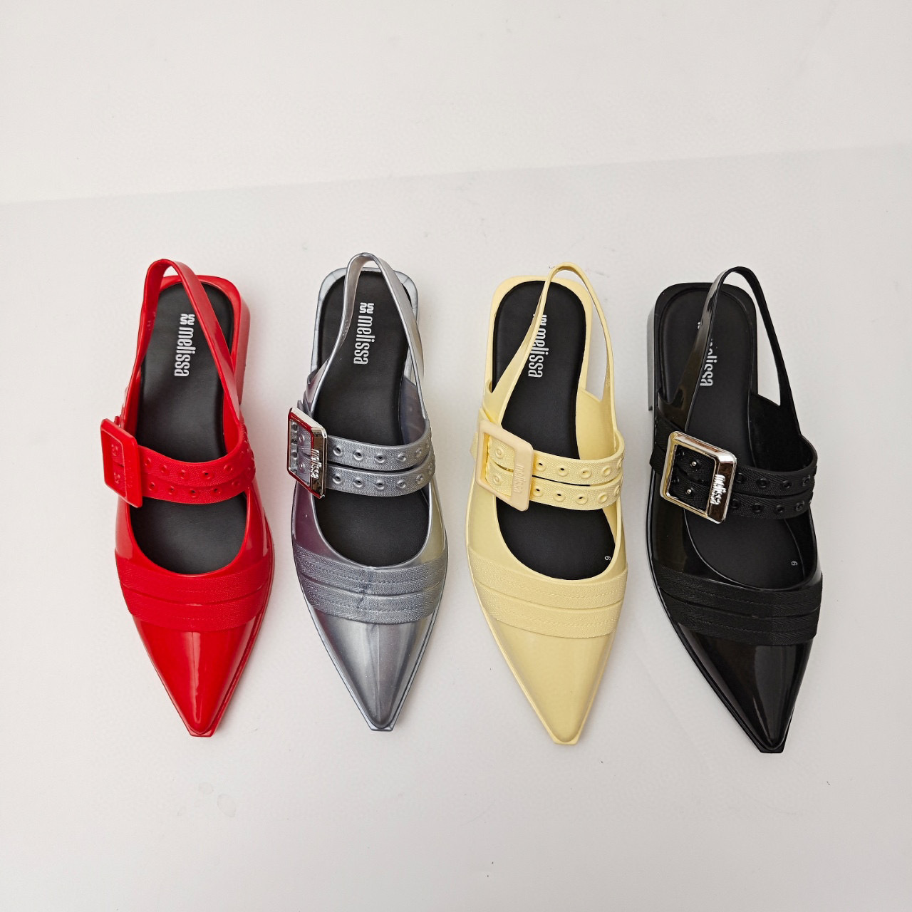 25 лет новинки Melissa, женская обувь, босоножки на среднем каблуке с острым носком, женская обувь Melissa с двойной пряжкой сзади, ароматная обувь