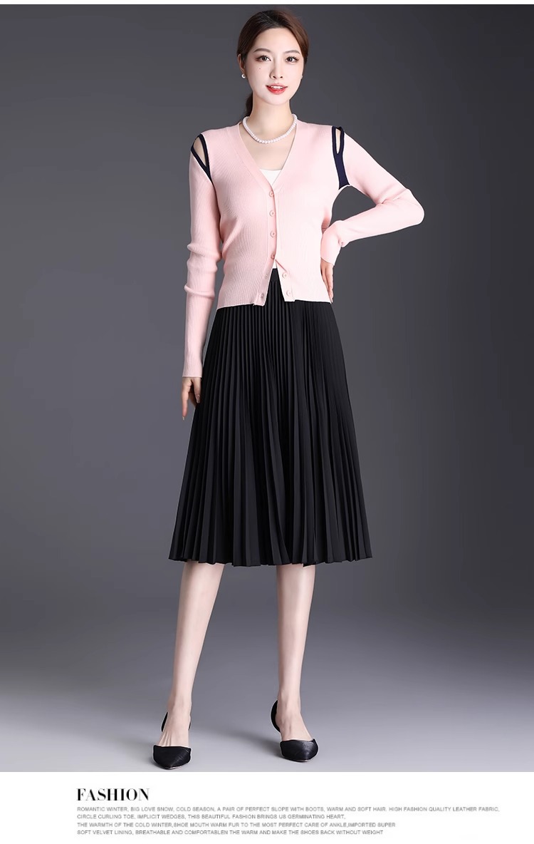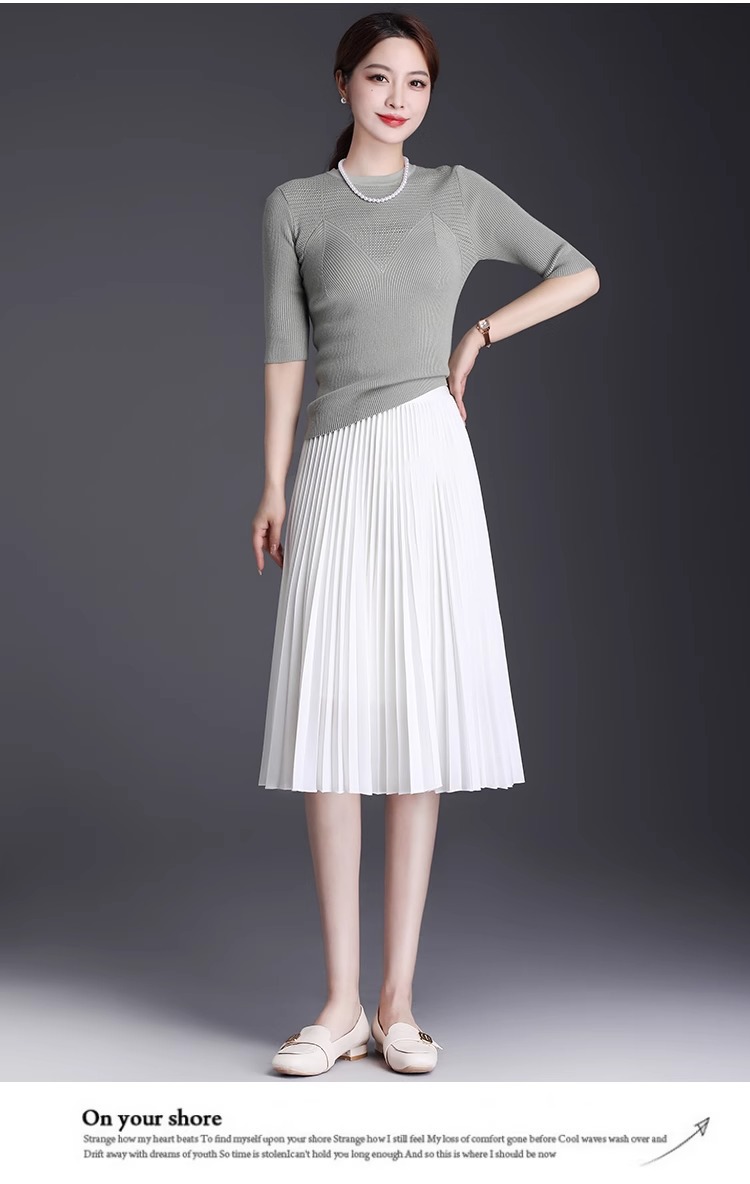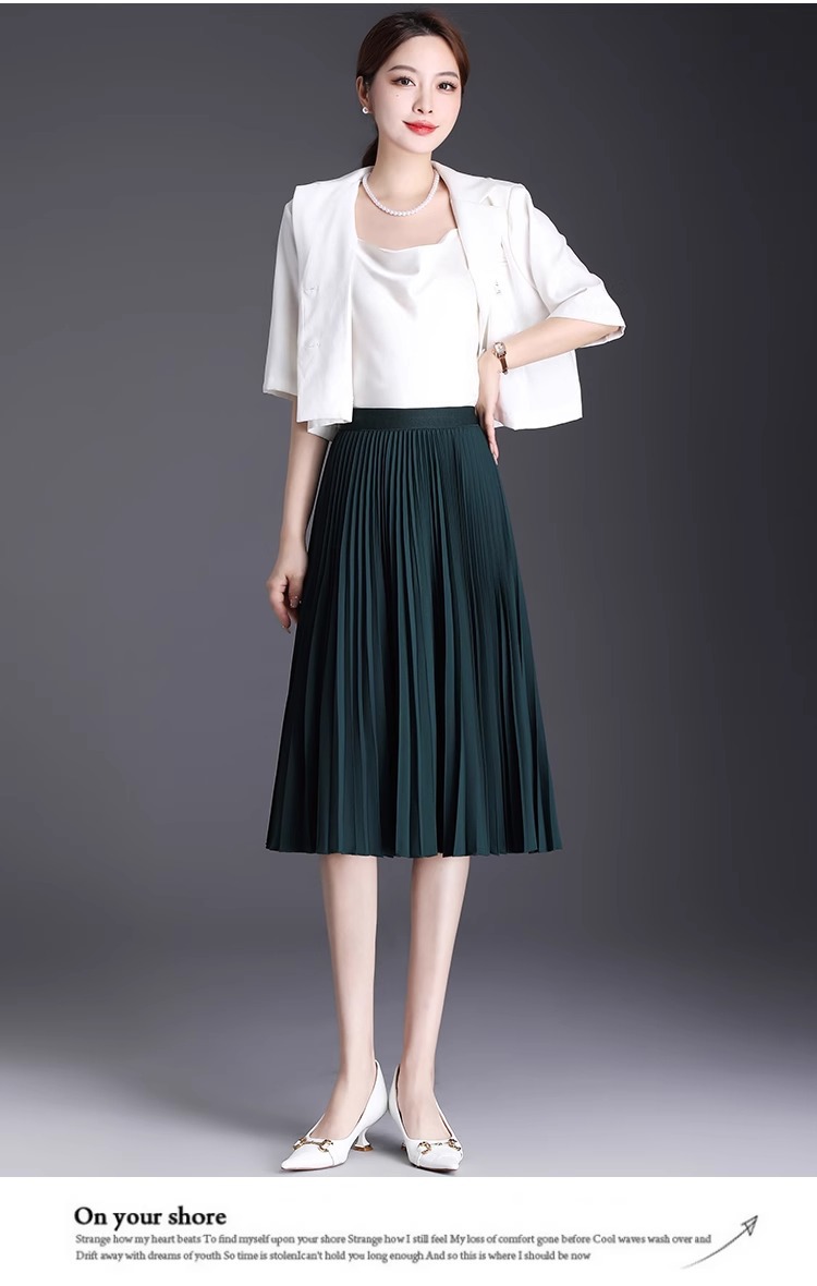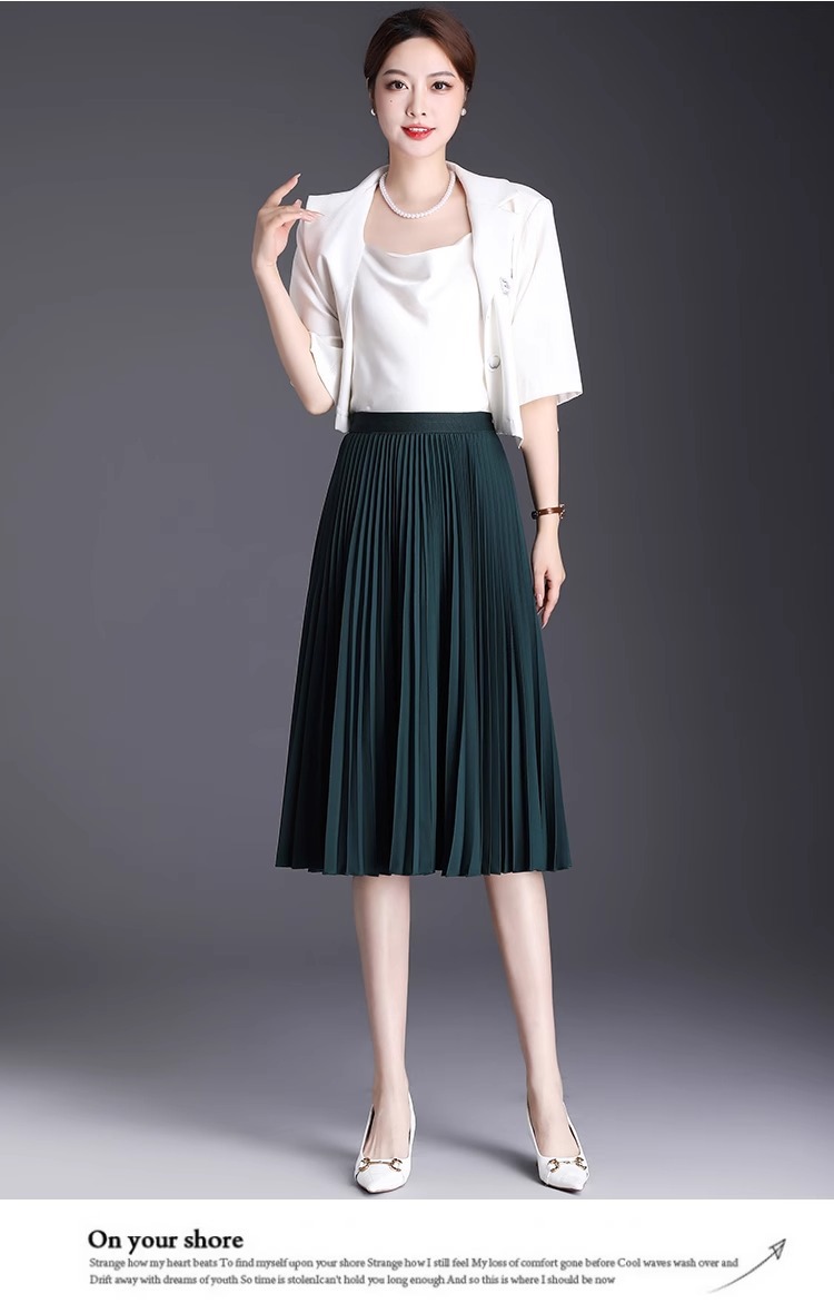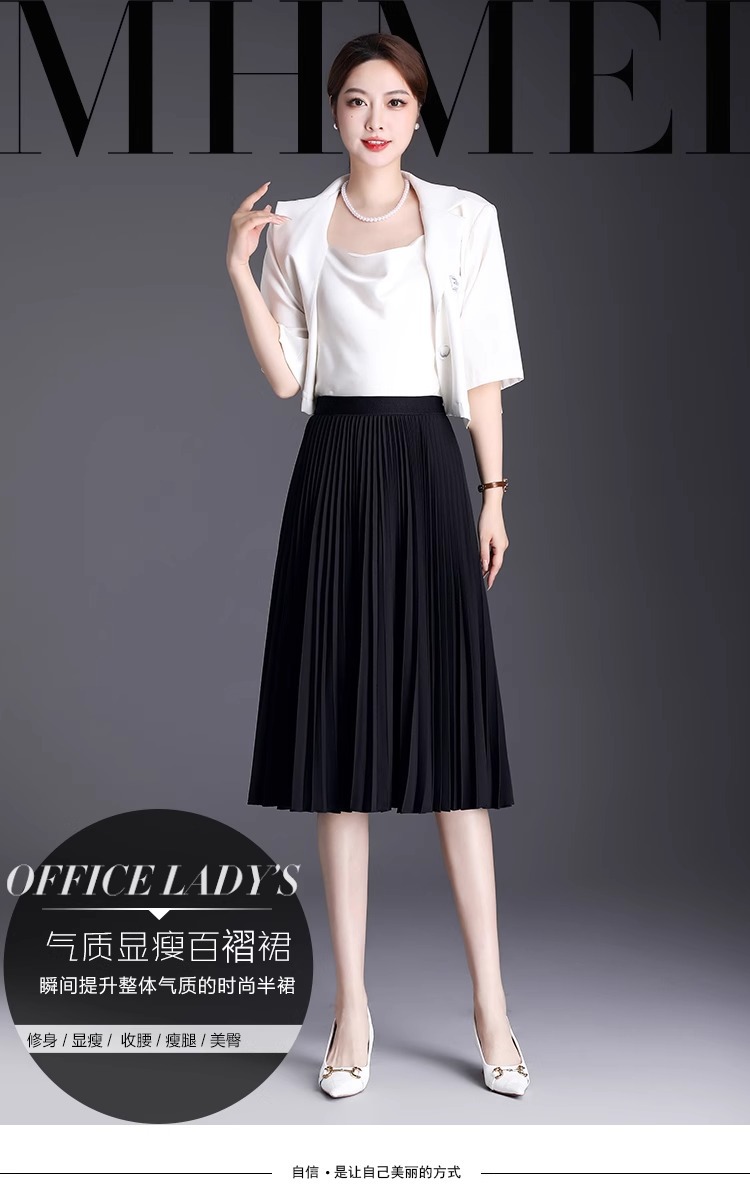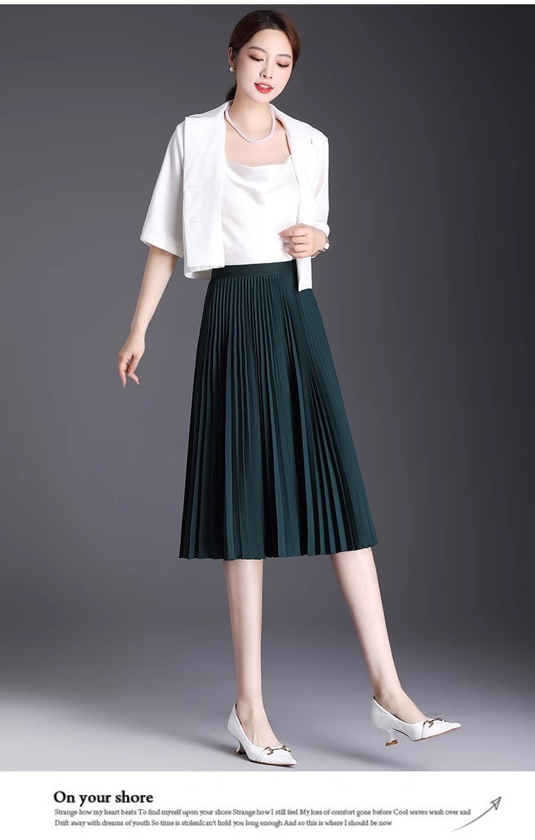 Плиссированная юбка средней и длинной длиной 2025 новая летняя юбка с бюстом женская фигура с высокой талией тонкая и дикая органная юбка